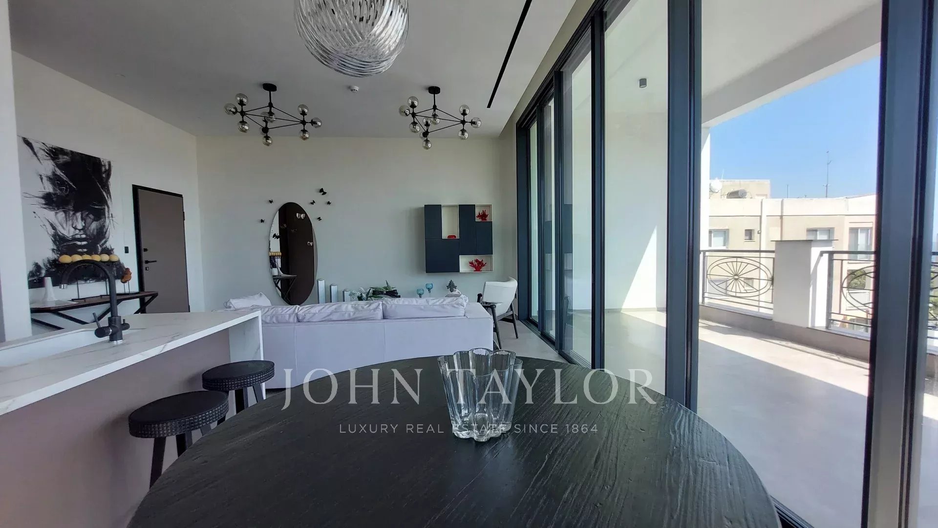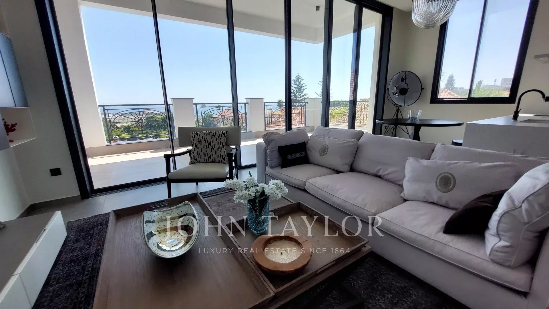 L'appartamento offre 97 metri quadrati di elegante spazio interno, completato da una veranda coperta di 26 metri quadrati e da un'ulteriore stanza per il personale di 15 metri quadrati con accesso privato. Le ampie aperture in vetro invitano alla luce naturale e si aprono su una serena vista dei giardini circostanti, mentre le finiture contemporanee e la disposizione ponderata creano un ambiente domestico caldo e accogliente.