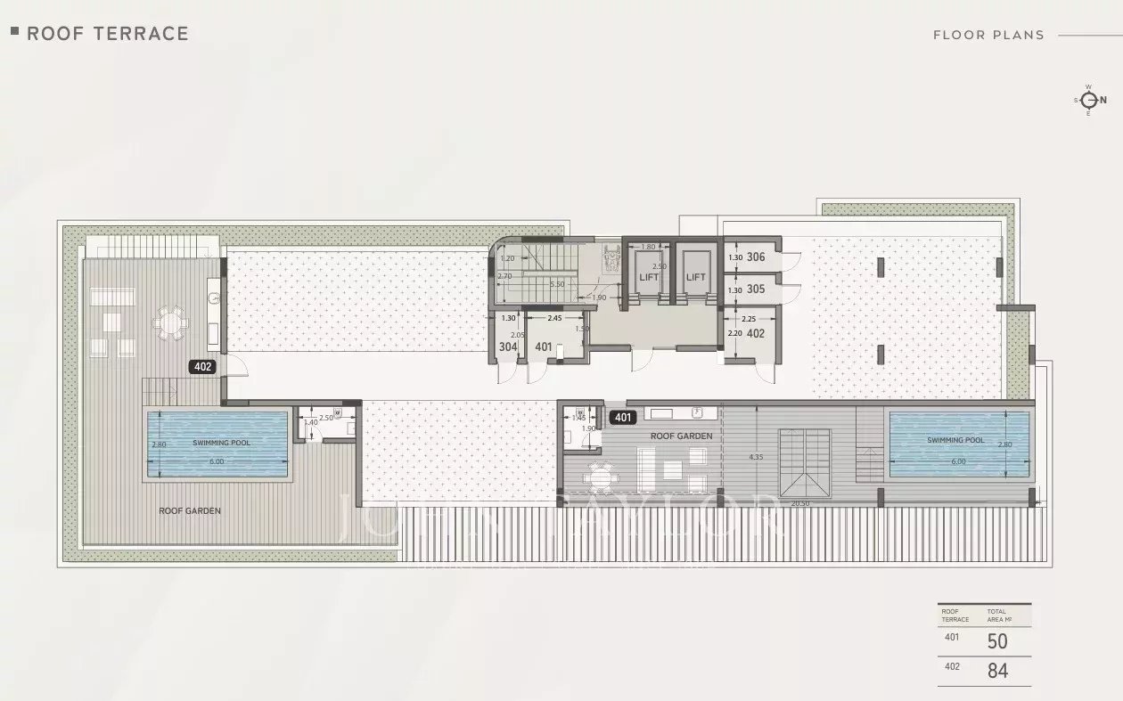 Costruito secondo standard elevati, l'edificio è dotato di riscaldamento a pavimento ad acqua, sistema di condizionamento VRV, isolamento termico, finestre in alluminio a doppio vetro e pannelli solari per il riscaldamento dell'acqua calda. Il complesso comprende 19 appartamenti, tra cui unità con una camera da letto, unità con due camere da letto e attici con tre camere da letto con piscine private e terrazze sul tetto.