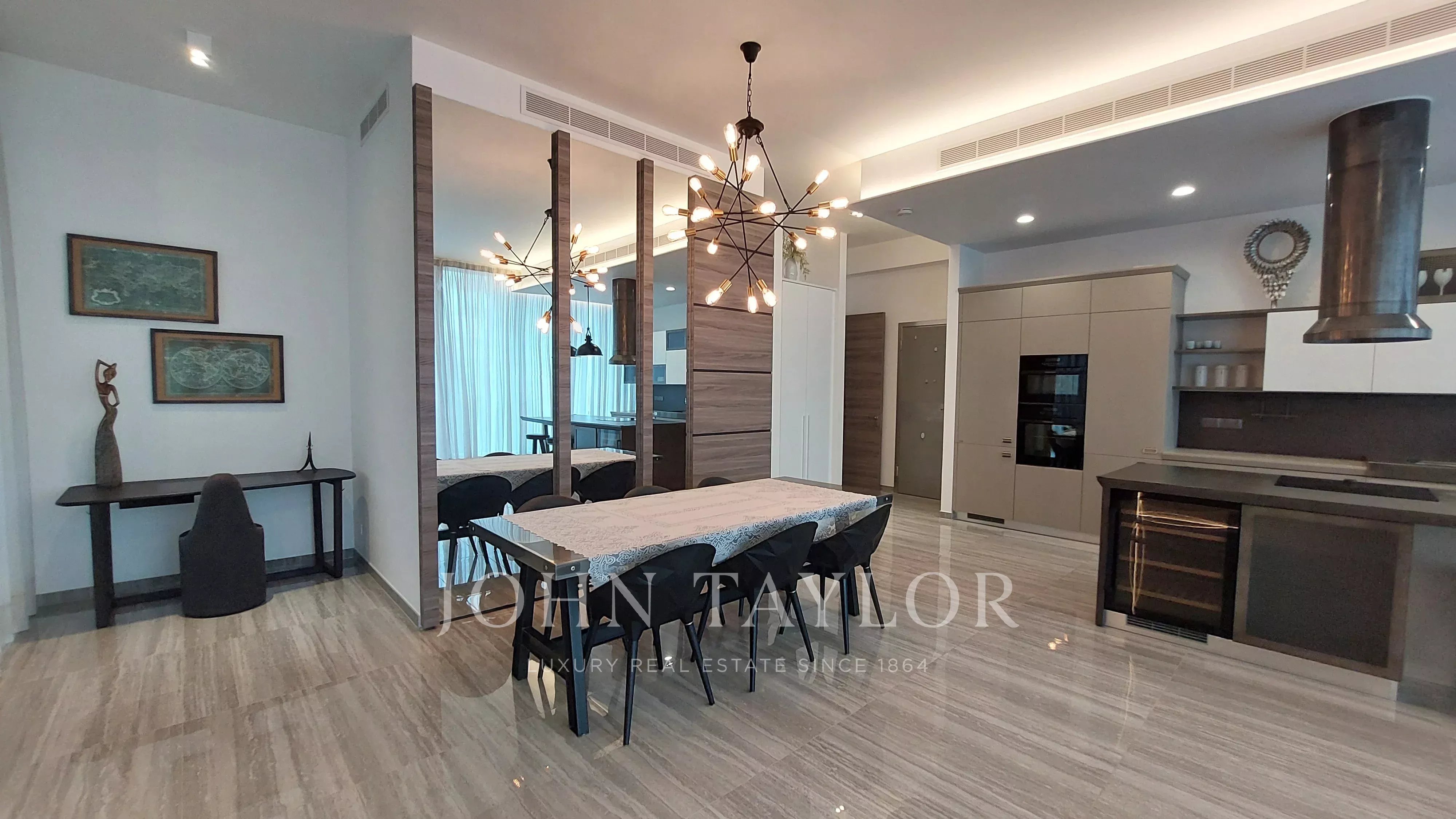 L'appartamento incarna un elevato standard di design e artigianato, caratterizzato da materiali e finiture accuratamente selezionati provenienti dai migliori marchi europei. È dotato di riscaldamento a pavimento, un avanzato sistema di climatizzazione VRV con unità a scomparsa, cucine e sanitari Scavolini, piastrelle Atlas Concorde, una porta d'ingresso antincendio di sicurezza e porte interne senza telaio per un look architettonico pulito.