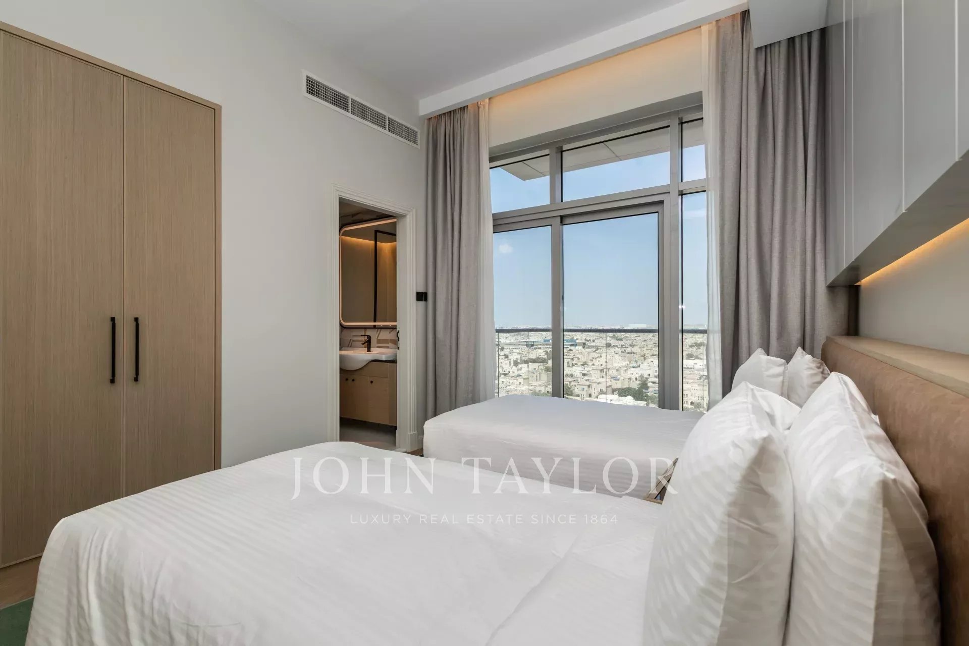 John Taylor Dubai presenta un appartamento completamente arredato con due camere da letto situato nel prestigioso Marriott Executive Residences di Al Barsha South. La proprietà vanta un design unico con materiali pregiati, offrendo un'esperienza di vita contemporanea e lussuosa. Con una superficie totale di 138,60 m² (inclusa una spaziosa terrazza di 23,97 m²), è stato progettato con cura per garantire comfort e stile. L'appartamento, offerto in affitto con mobili di alta qualità, elettrodomestici moderni e decorazioni eleganti, è pronto per l'uso.