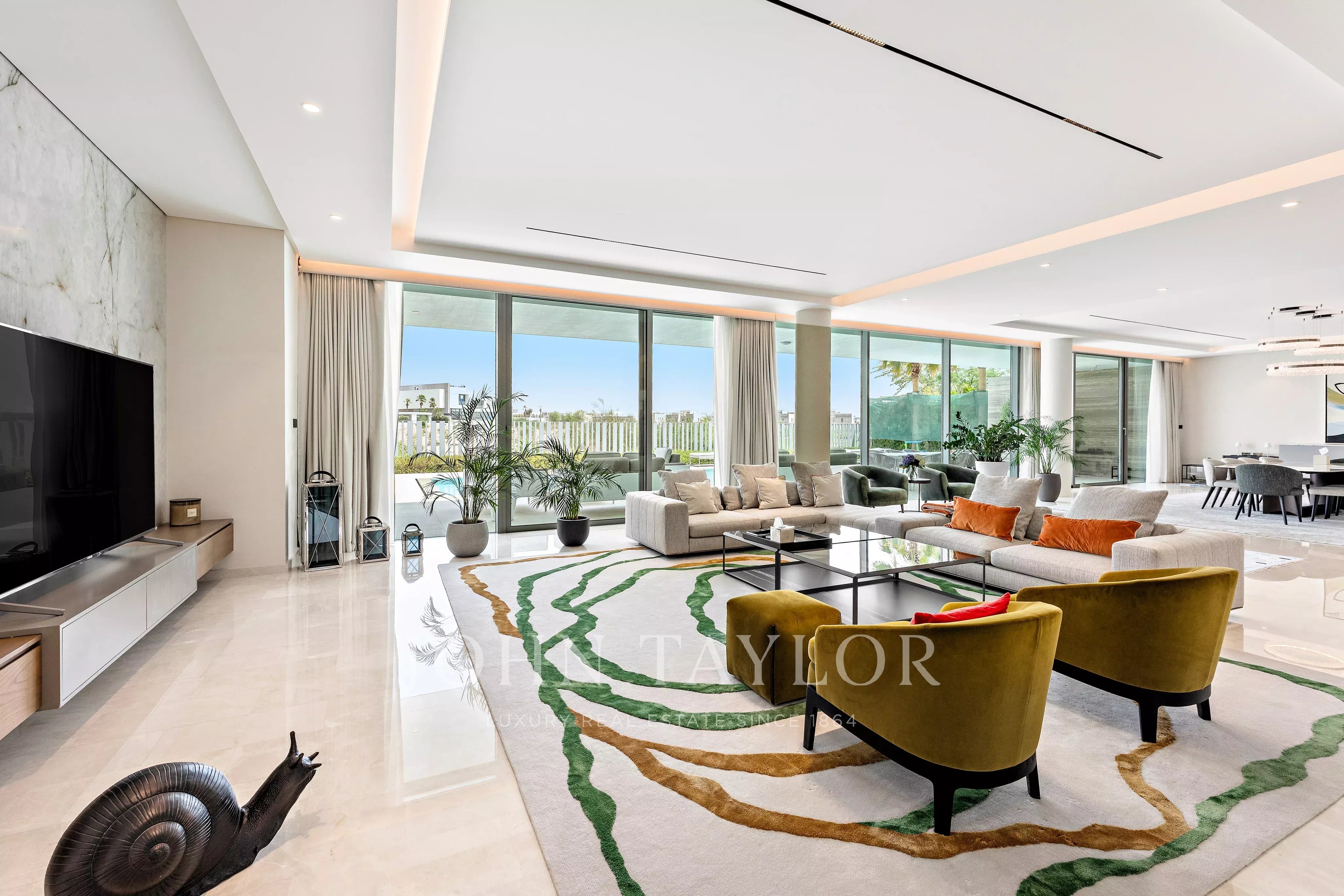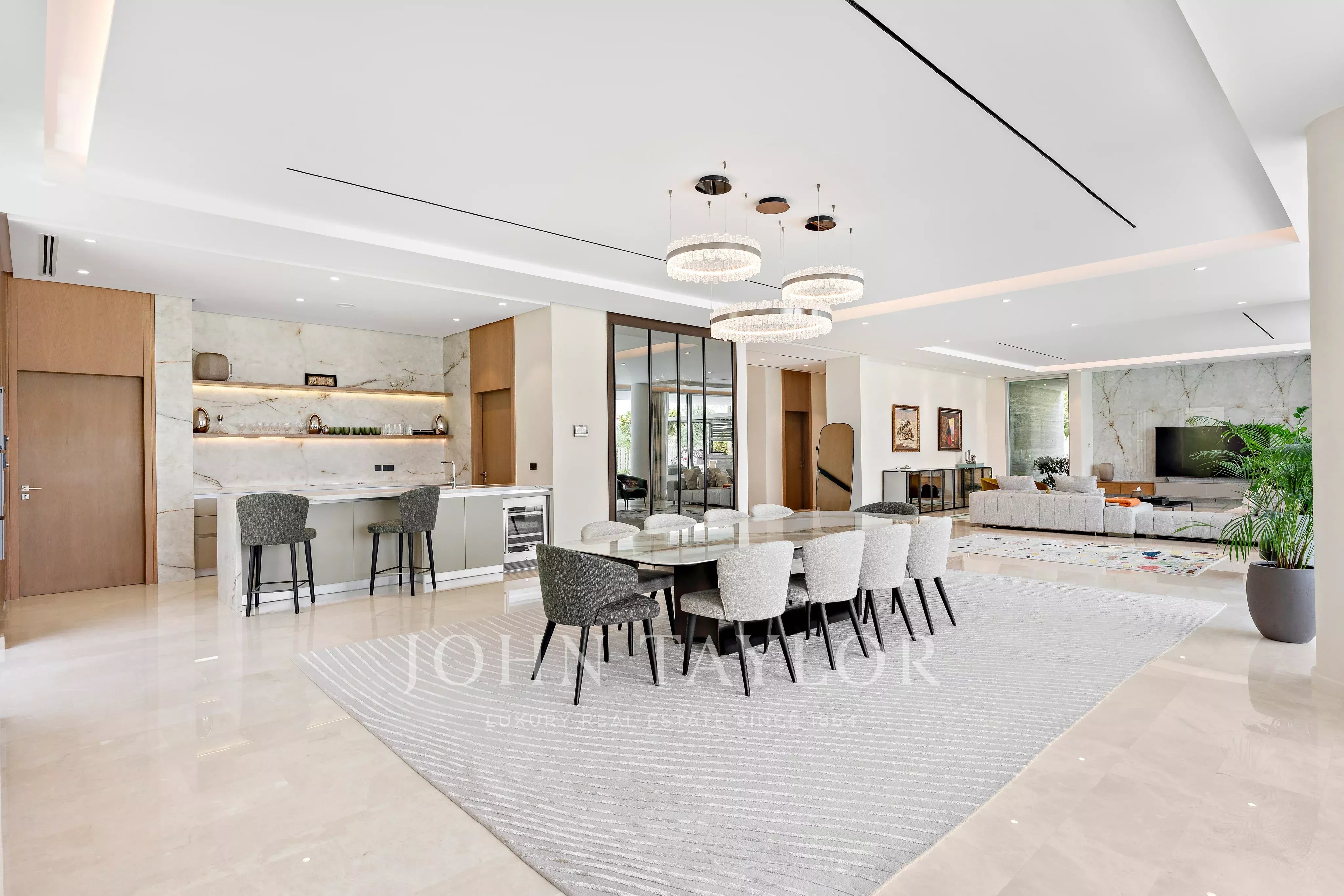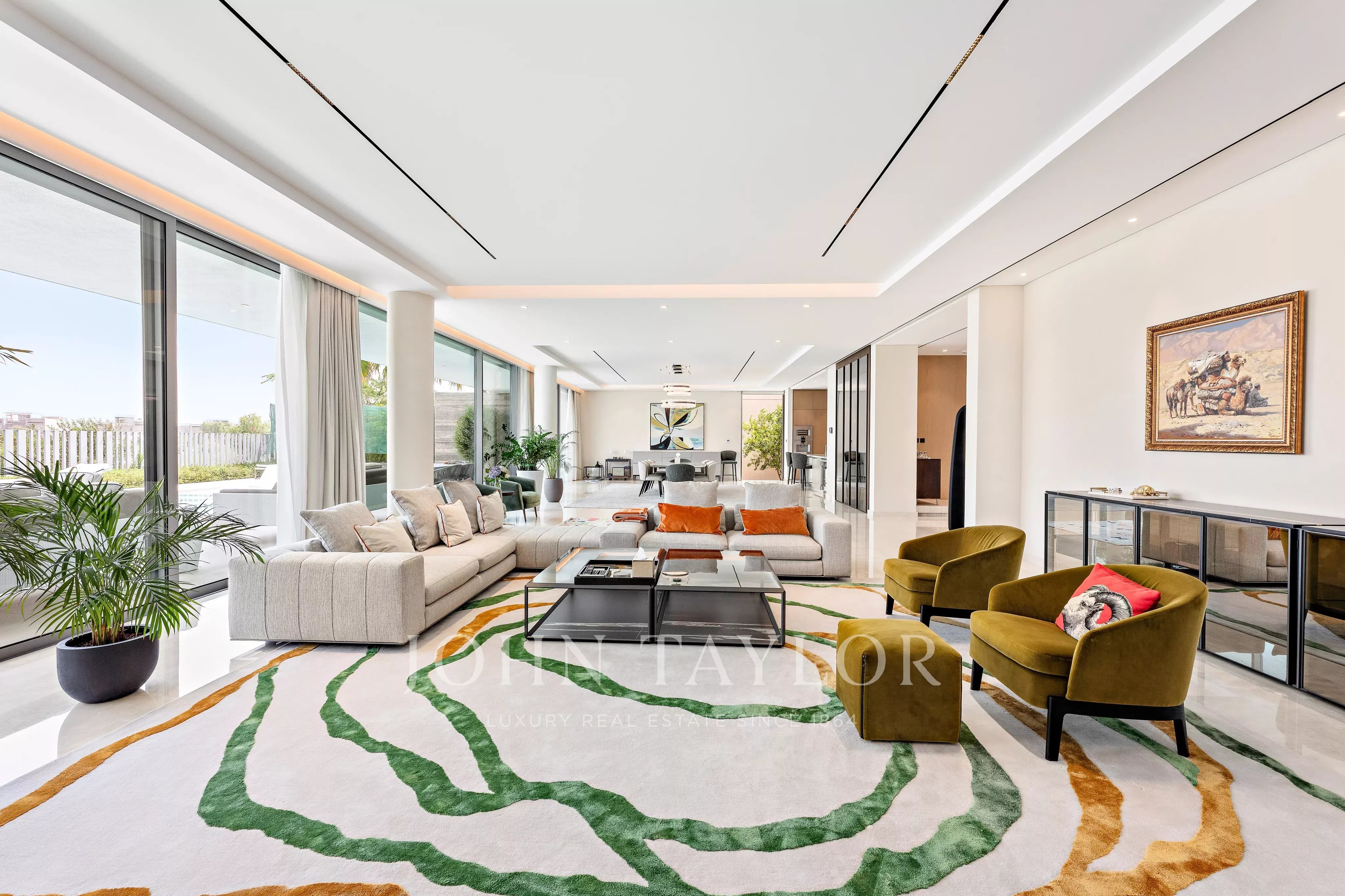 All'interno, la villa dispone di sette spaziose camere da letto e sette bagni rifiniti con finiture di alta qualità, tra cui accessori Gessi. Gli spazi abitativi sono ampi e inondati di luce naturale, creando un flusso senza soluzione di continuità ideale sia per la vita familiare che per intrattenere gli ospiti. La casa è completata da una cucina a vista firmata Veneta Cucine, dotata di elettrodomestici di prima qualità, tra cui Gaggenau nella cucina a vista e Miele nella cucina di servizio. A valorizzare ulteriormente la casa è un sistema di filtrazione dell'acqua Kontec completamente integrato, insieme a un sistema di sicurezza CCTV completo per la massima tranquillità.