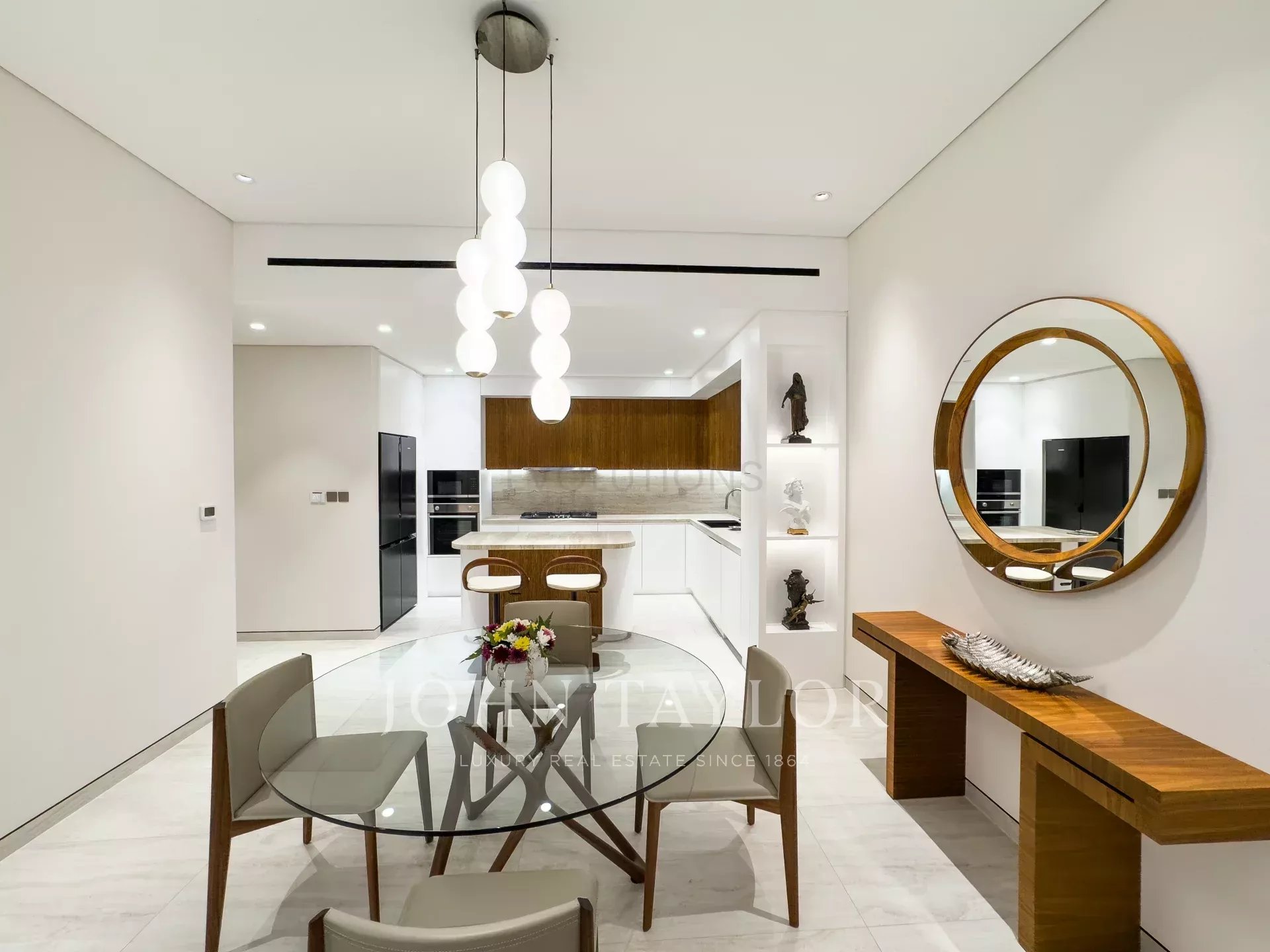 Vista mozzafiato: Godetevi la vista senza ostacoli dei laghi circostanti, dei campi da golf e del dinamico skyline di Dubai, particolarmente suggestivo al tramonto.