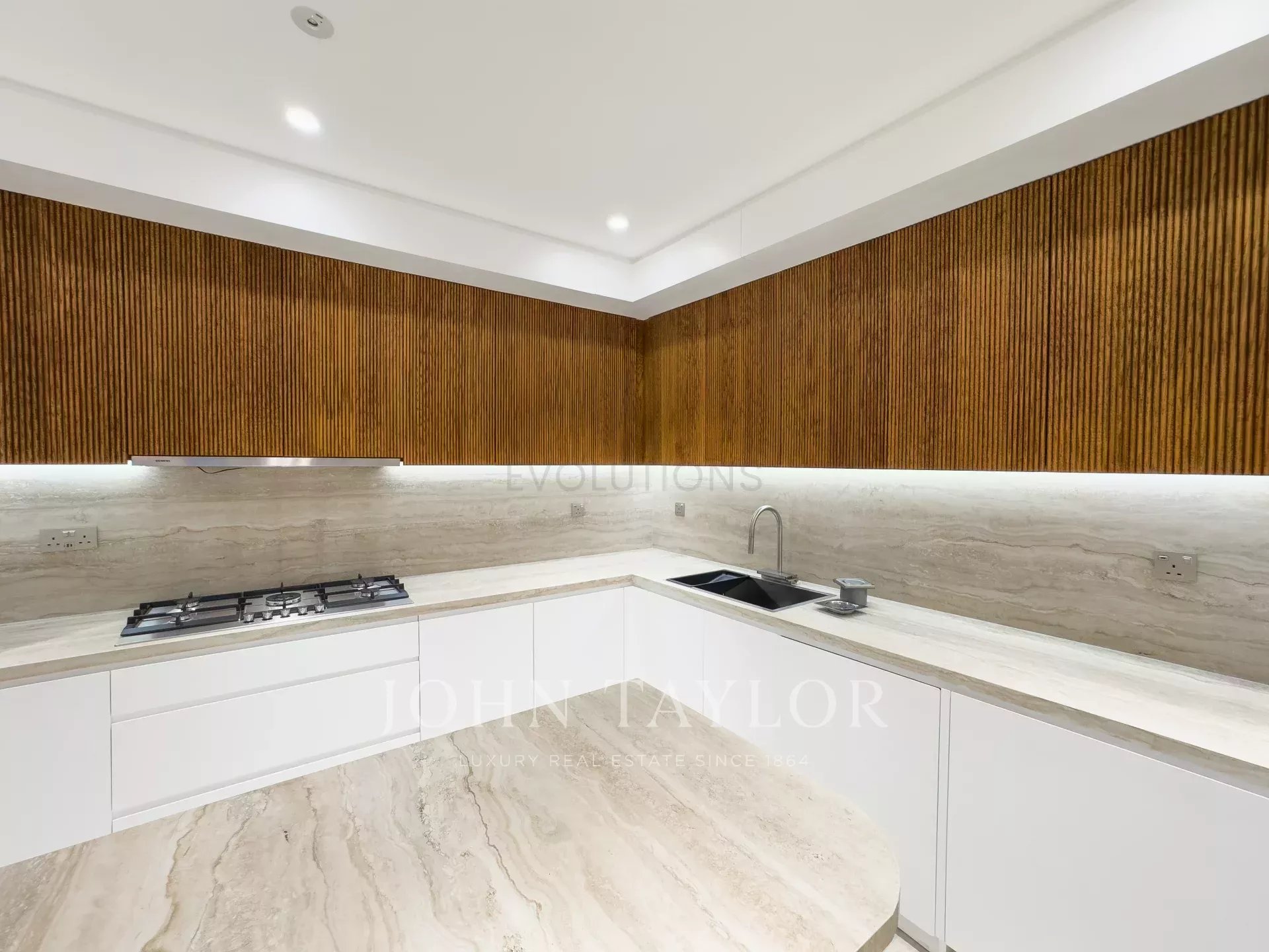 Cucina moderna: Cucina di alto livello completamente arredata e dotata di elettrodomestici integrati, che offre un ampio spazio di lavoro e di stoccaggio per lo chef di casa.