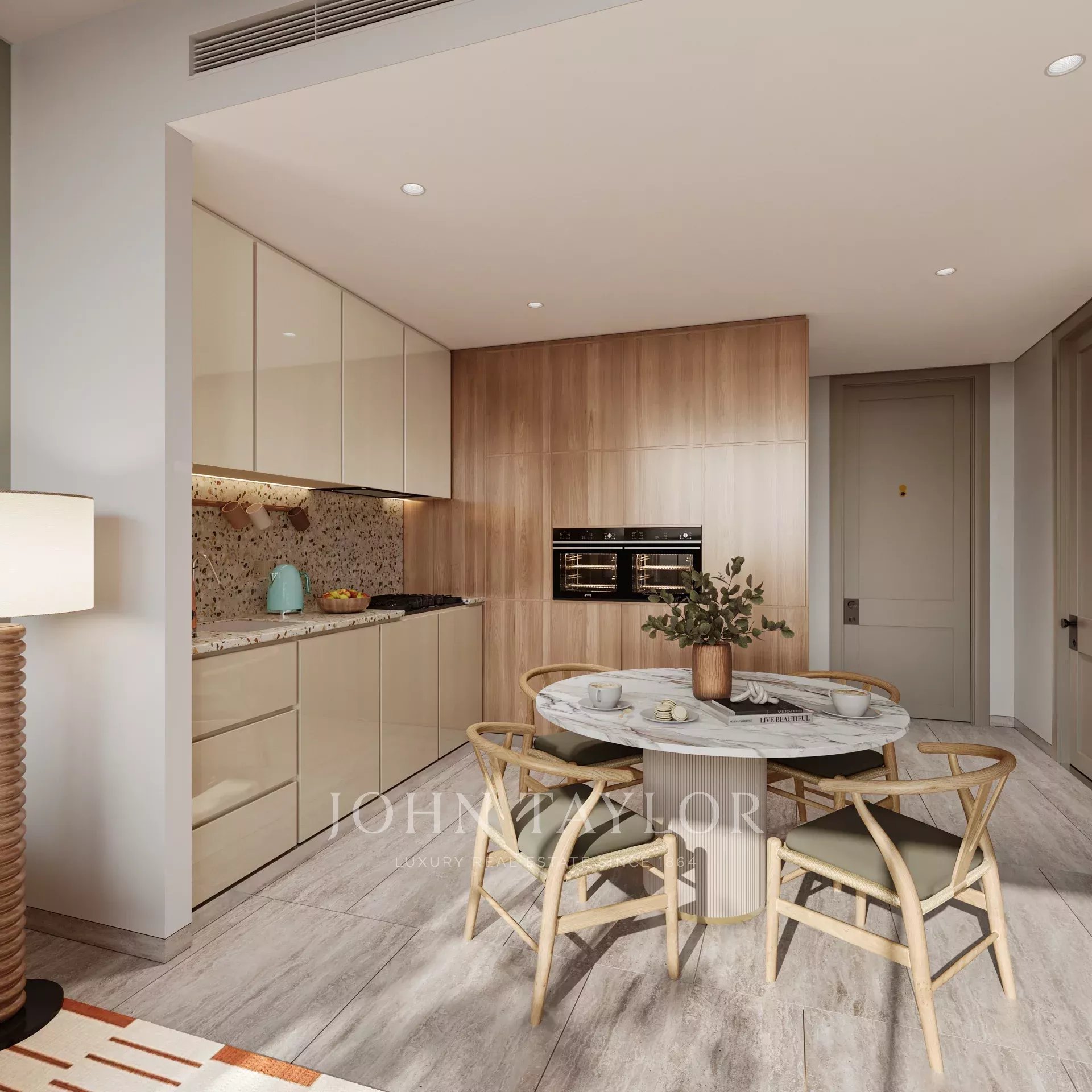 Soggiorno e zona pranzo a pianta aperta: Una zona giorno elegante e moderna con un flusso continuo verso la sala da pranzo, ideale per intrattenere gli ospiti o per rilassarsi dopo una lunga giornata.