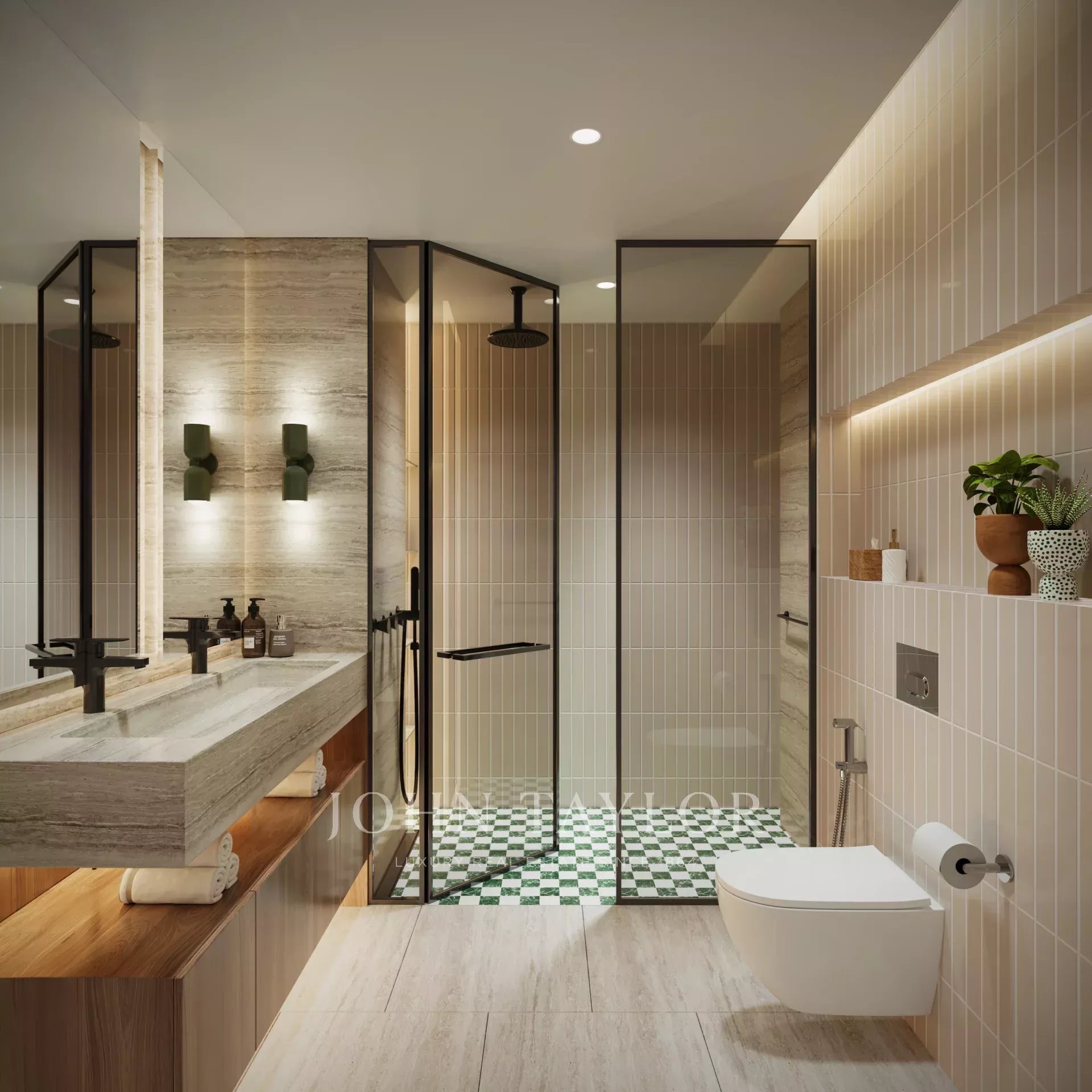 Bagno elegante: Progettato in modo lussuoso con finiture e impianti di alta qualità, offre un'esperienza sofisticata come quella di una spa.
