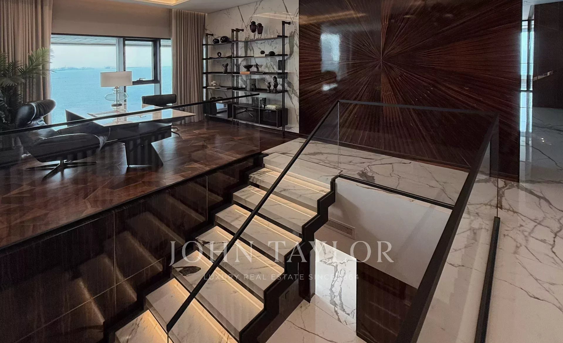 John Taylor Luxury Real Estate è orgoglioso di presentare questo straordinario attico con 5 camere da letto completamente arredato sull'iconica Bluewaters Island, che offre 870 mq di spazio abitativo su misura, viste panoramiche sul mare e una privacy senza pari. Questa proprietà ridefinisce la vita costiera di alto livello nel cuore di Dubai.