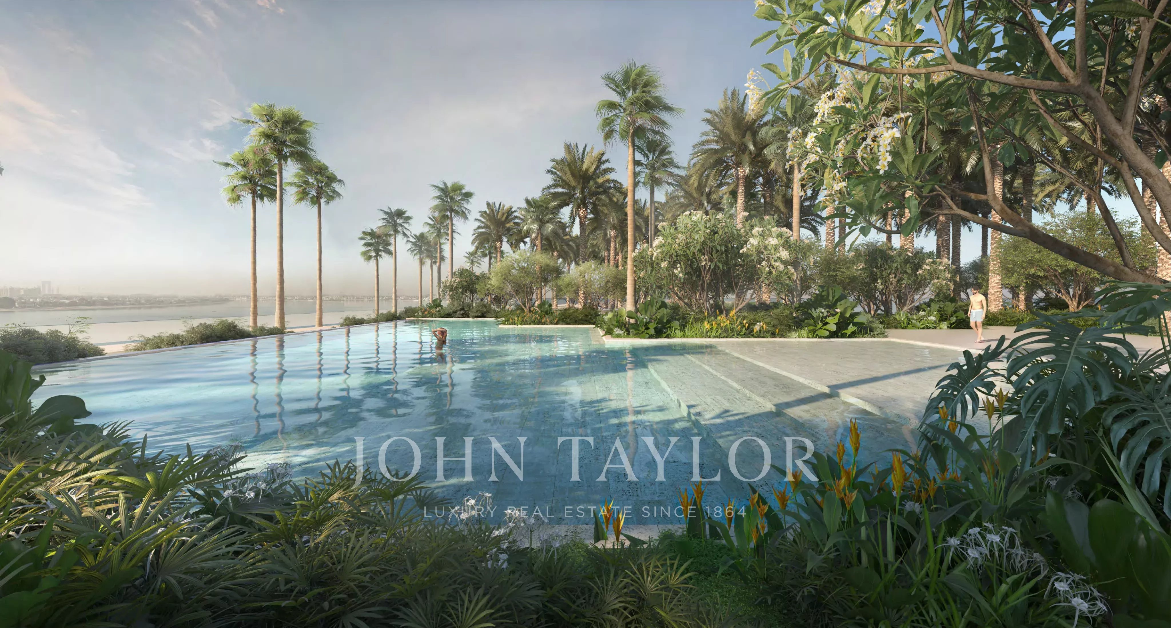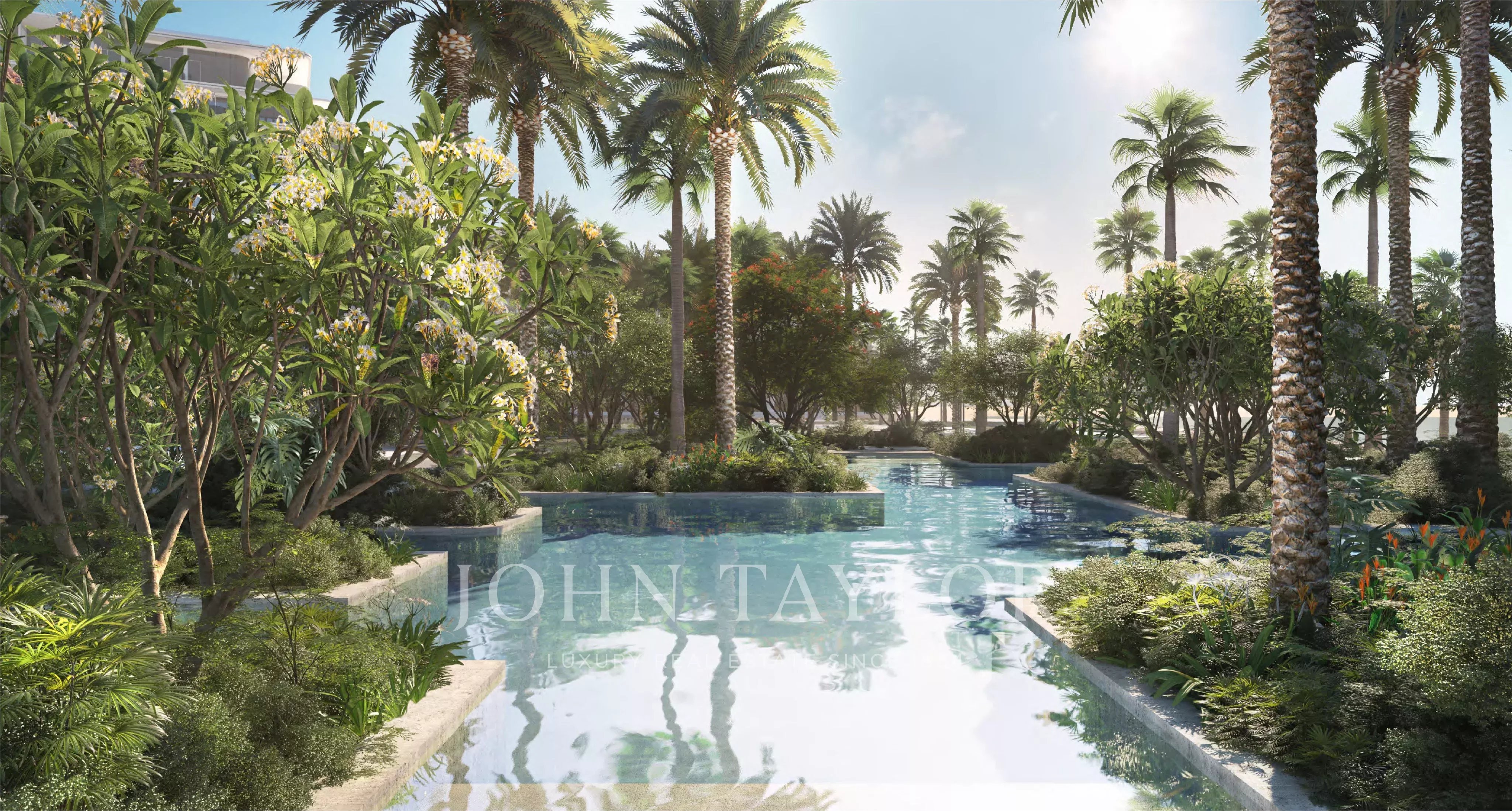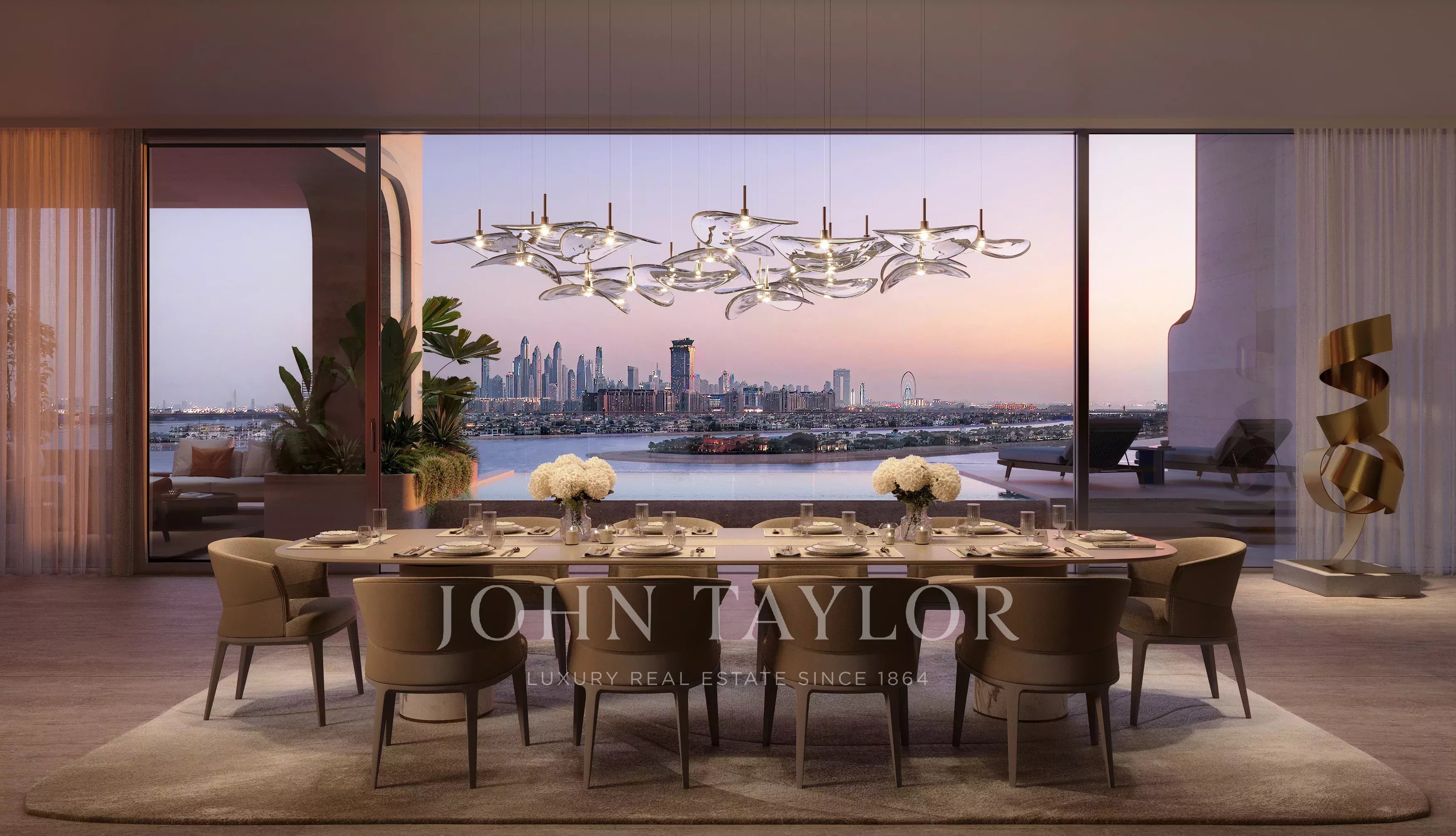 La proprietà include l'accesso a tutti i servizi alberghieri e residenziali, dalla programmazione del benessere alla ristorazione privata e all'assistenza quotidiana. Al livello superiore, la Sunset Lounge offre 400 metri quadrati, con tramonti ininterrotti su Palm Jumeirah e viste panoramiche sull'Oasi Centrale. La lounge riunisce ambienti interni ed esterni, tra cui una business lounge e una terrazza verde sopraelevata, offrendo un punto di vista distinto.