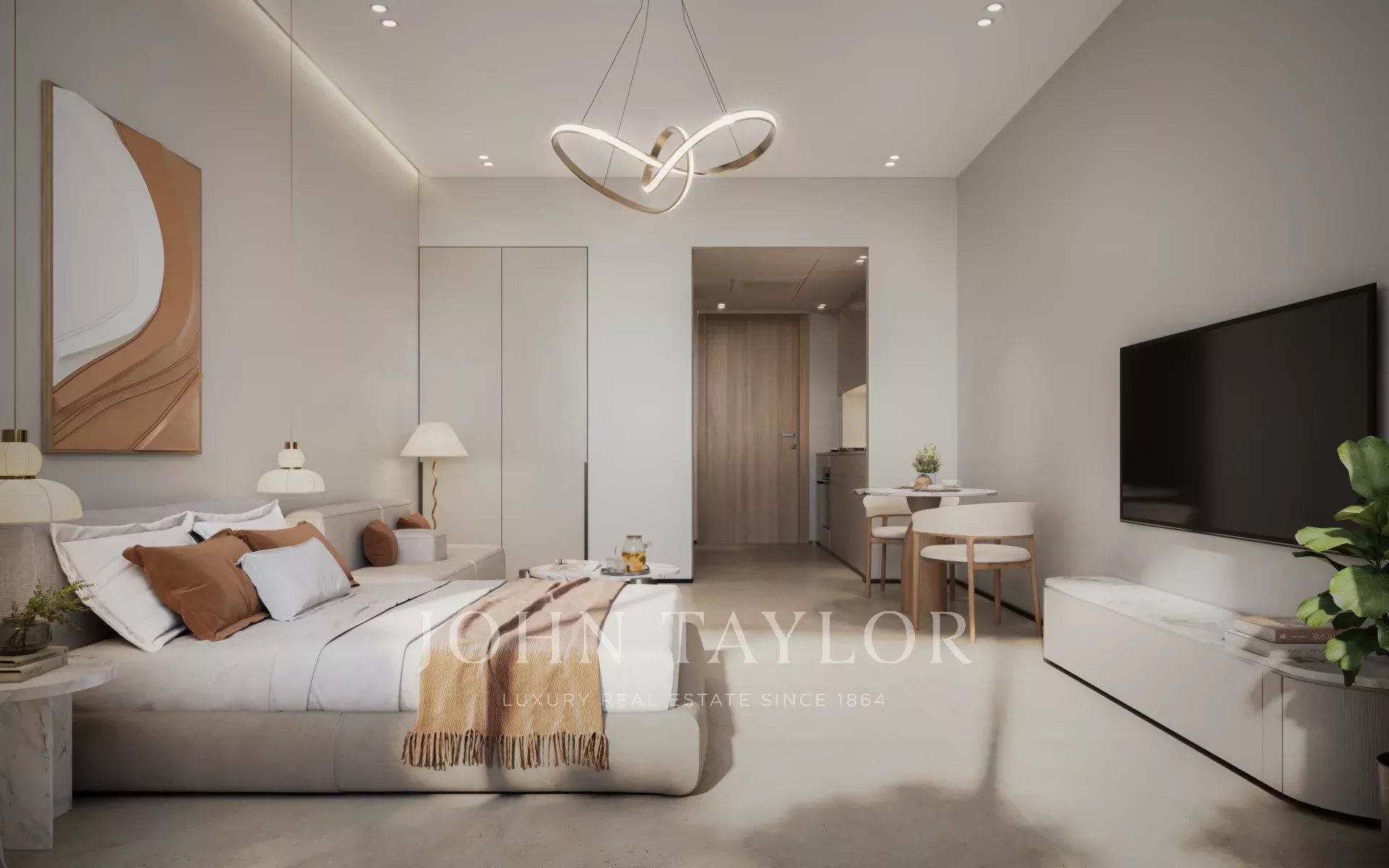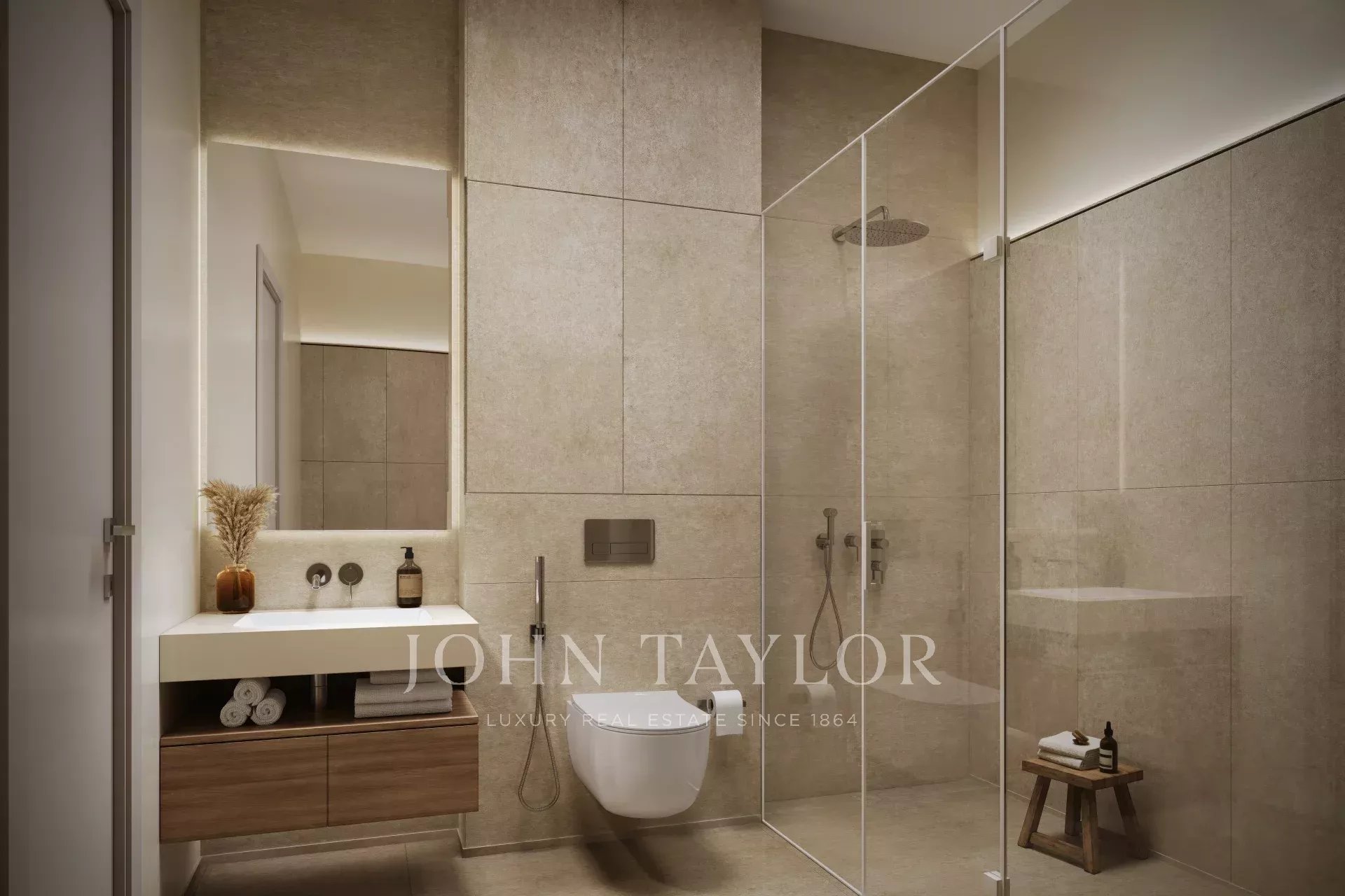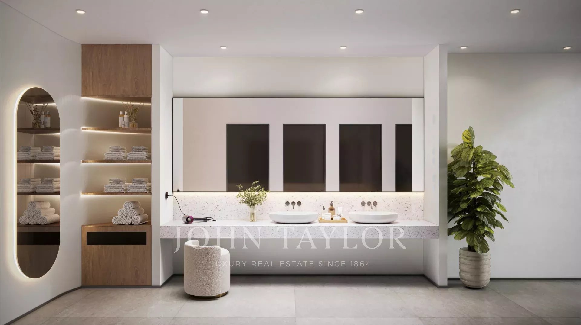 2 camere da letto | 3 bagni: Due camere da letto di dimensioni generose, ognuna con il proprio bagno privato en-suite, più un ulteriore bagno per gli ospiti per la massima comodità. Tutti i bagni sono dotati di impianti di alto livello e di un design elegante.