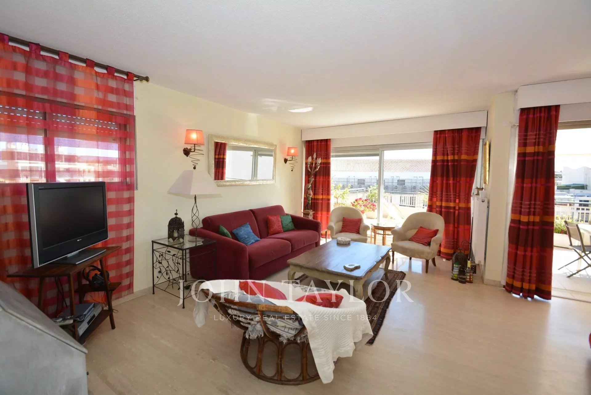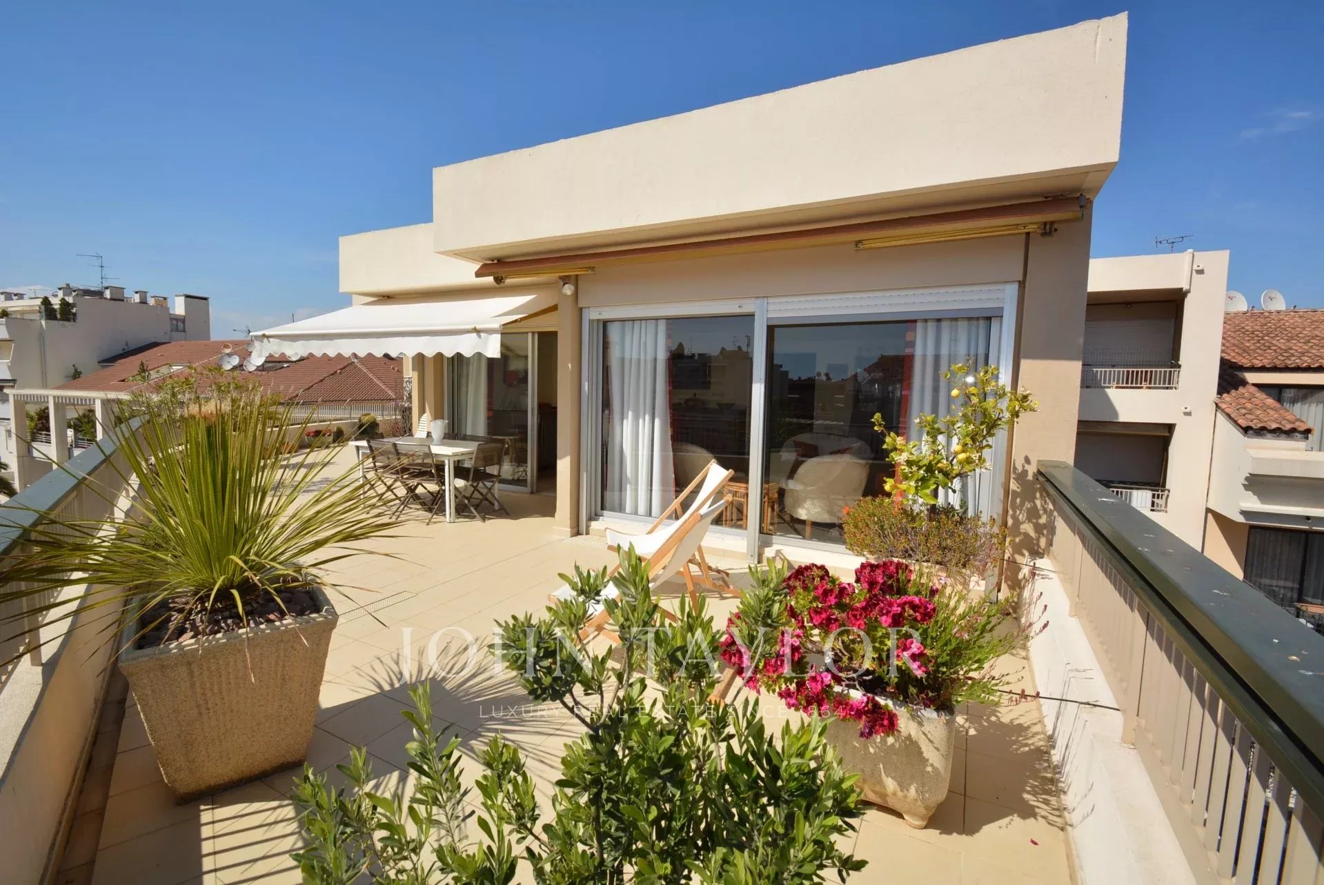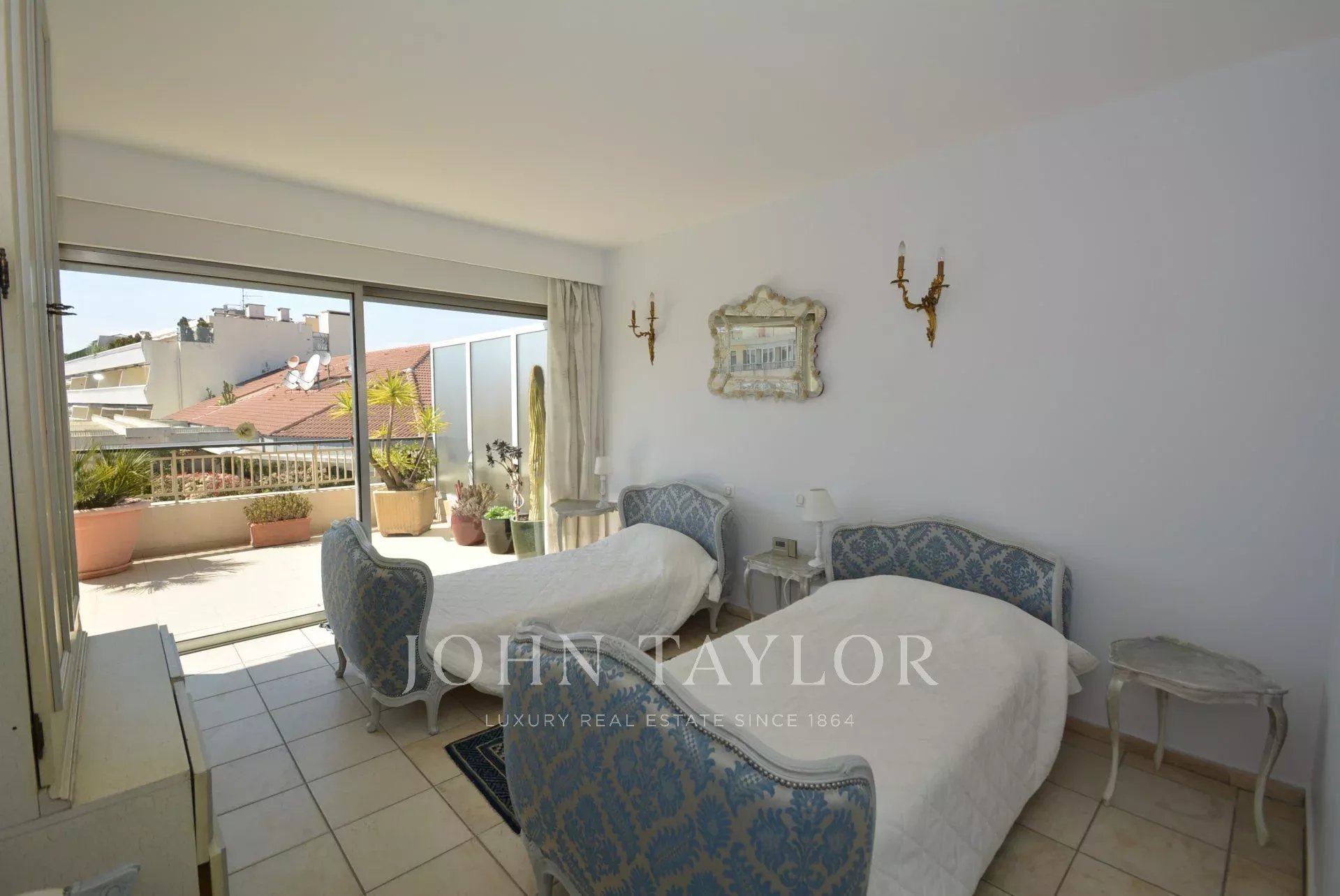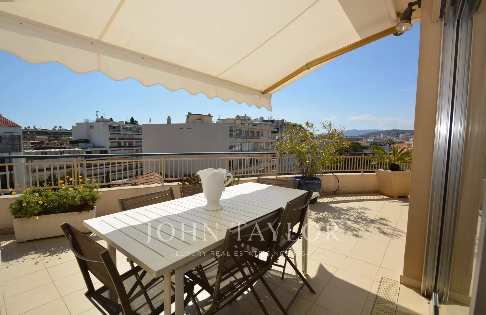 Questo appartamento di 90 m2 è situato al 7° e ultimo piano di un residence nel centro di Cannes, molto vicino a Rue d'Antibes e a pochi minuti dalla Croisette e dalle spiagge.
