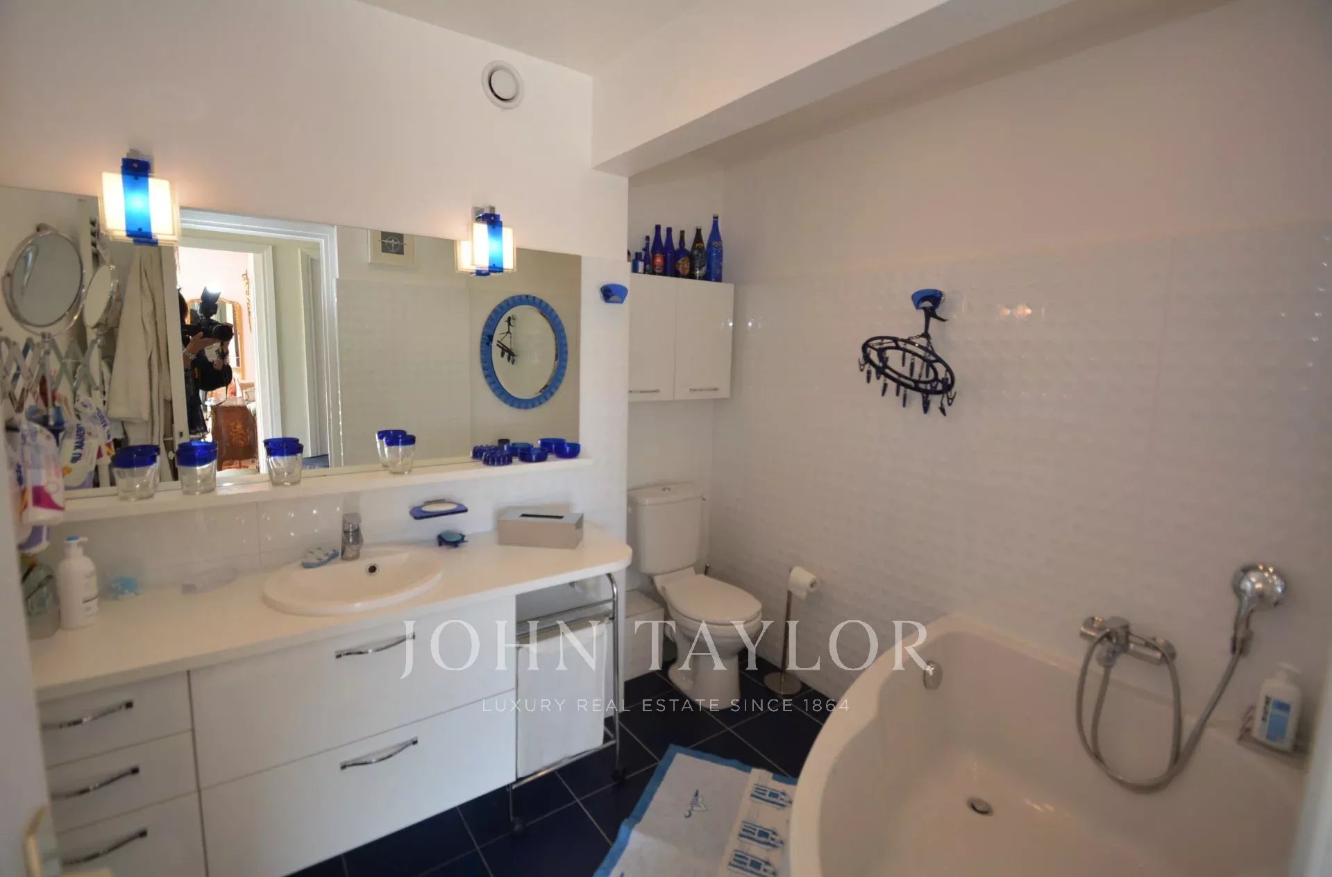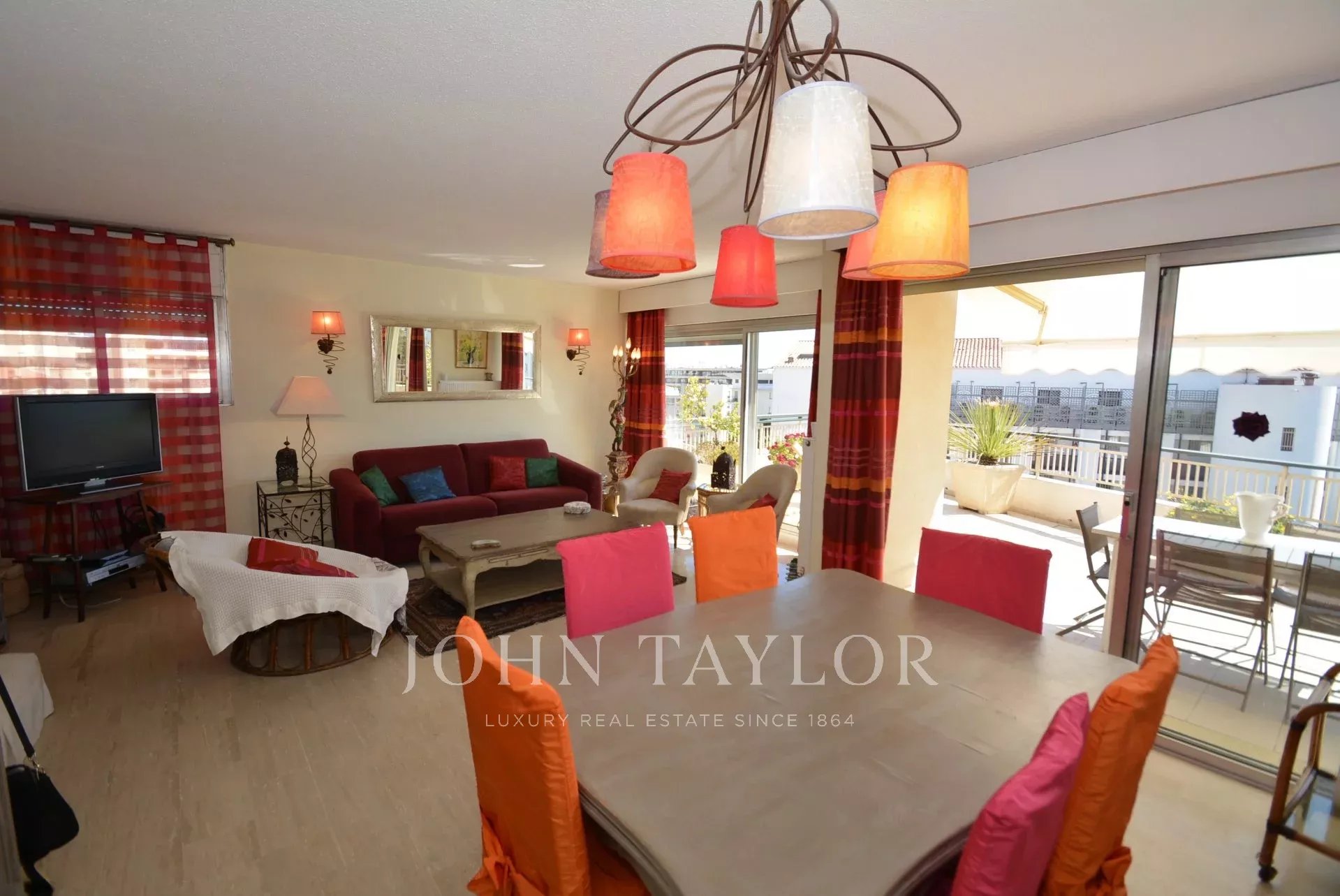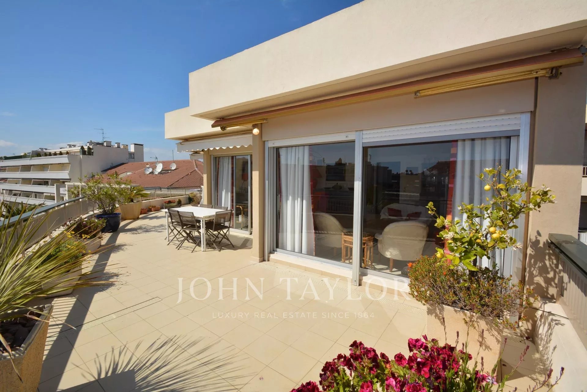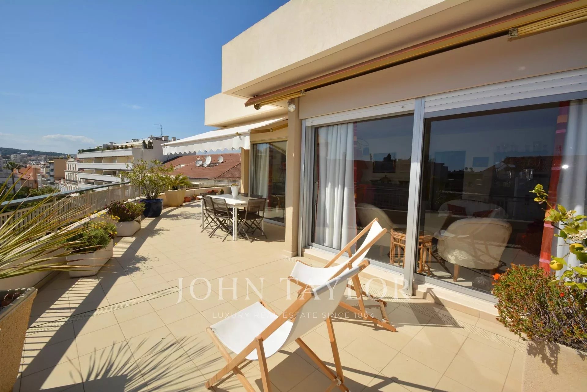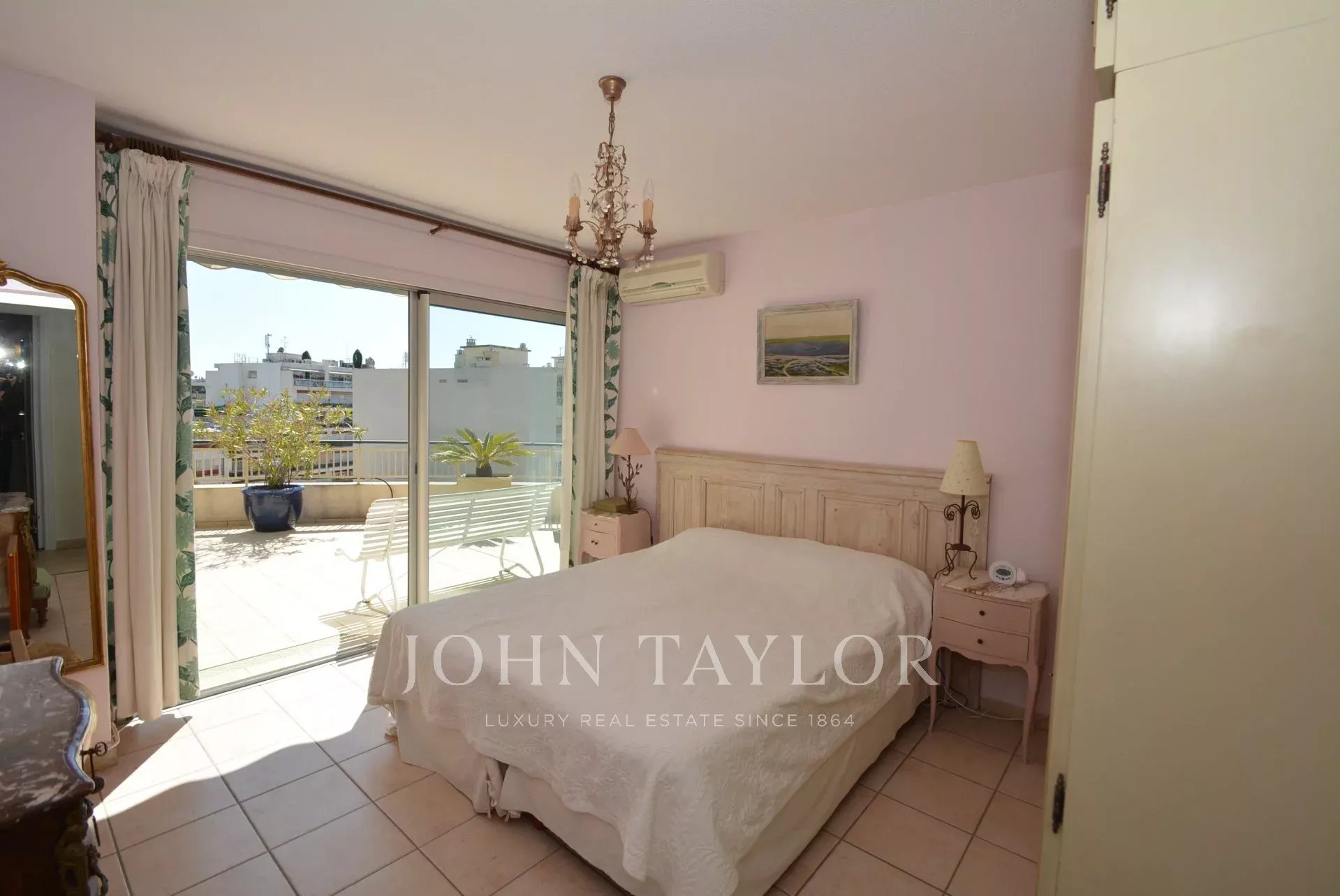Questo appartamento di 90 m2 è situato al 7° e ultimo piano di un residence nel centro di Cannes, molto vicino a Rue d'Antibes e a pochi minuti dalla Croisette e dalle spiagge.