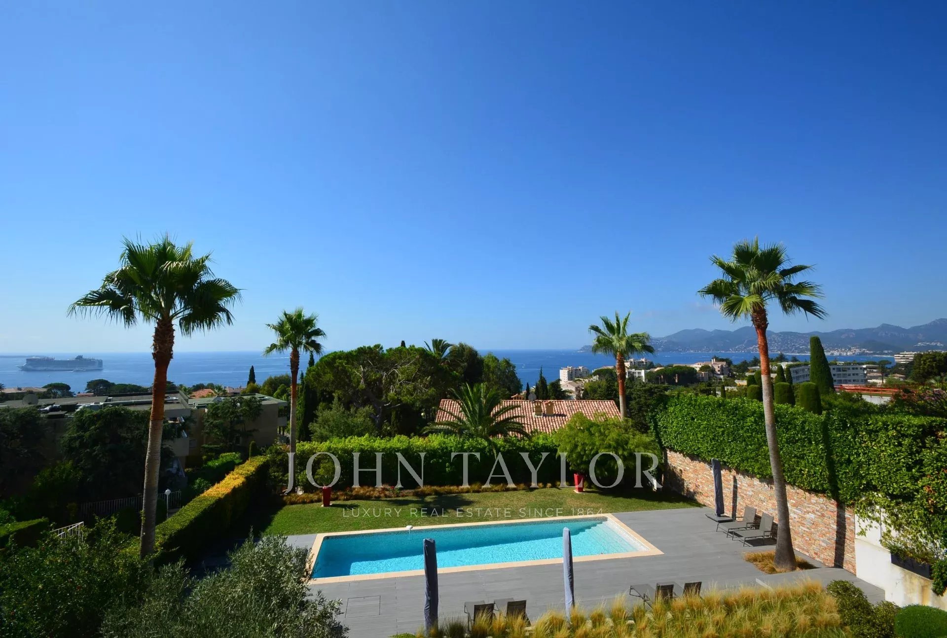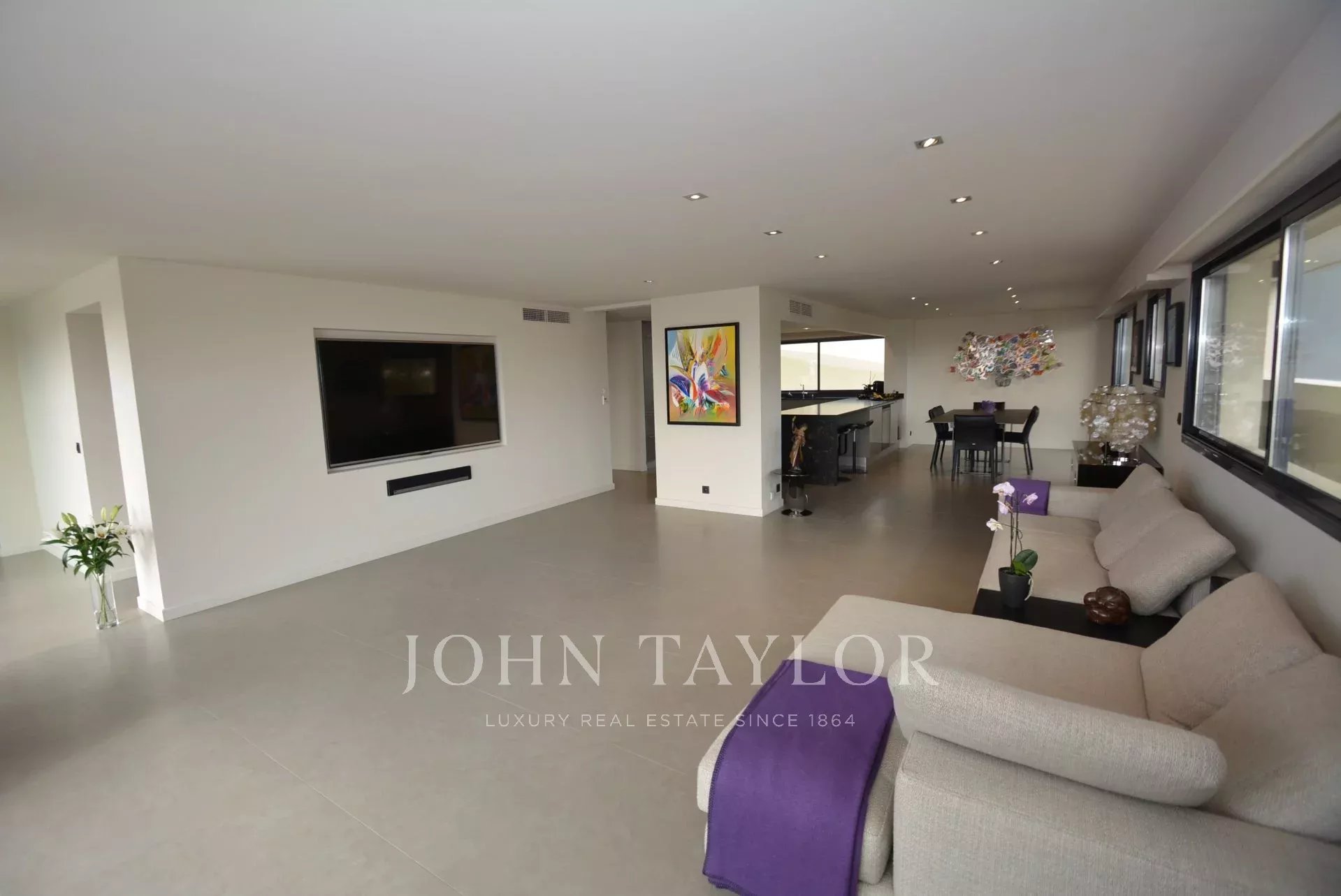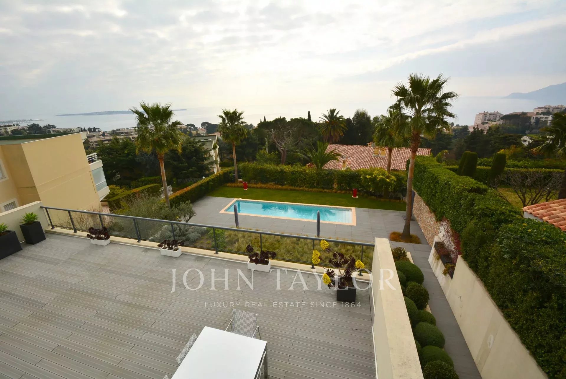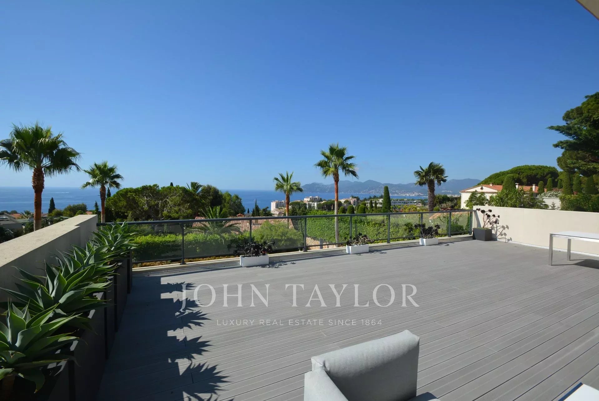 Nel quartiere "CROIX DES GARDES", a dieci minuti dal centro di Cannes e dal Palais des Festivals, con una magnifica vista sulla baia di Cannes, le isole Lérins e l'Estérel, appartamento completamente climatizzato all'ultimo piano di un residence di 3 appartamenti con giardino e piscina riscaldata.