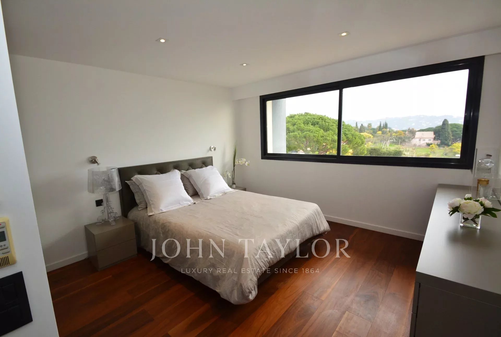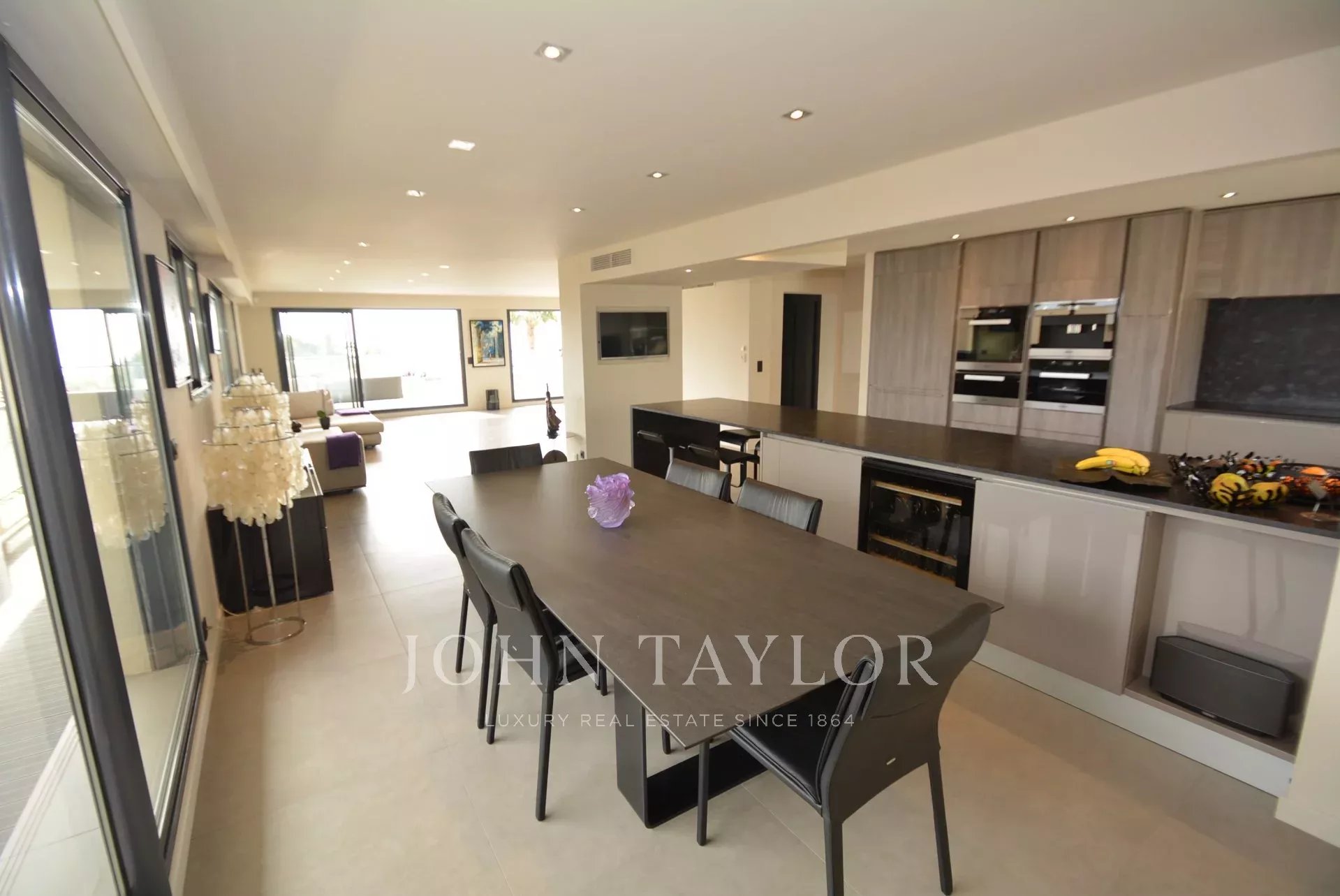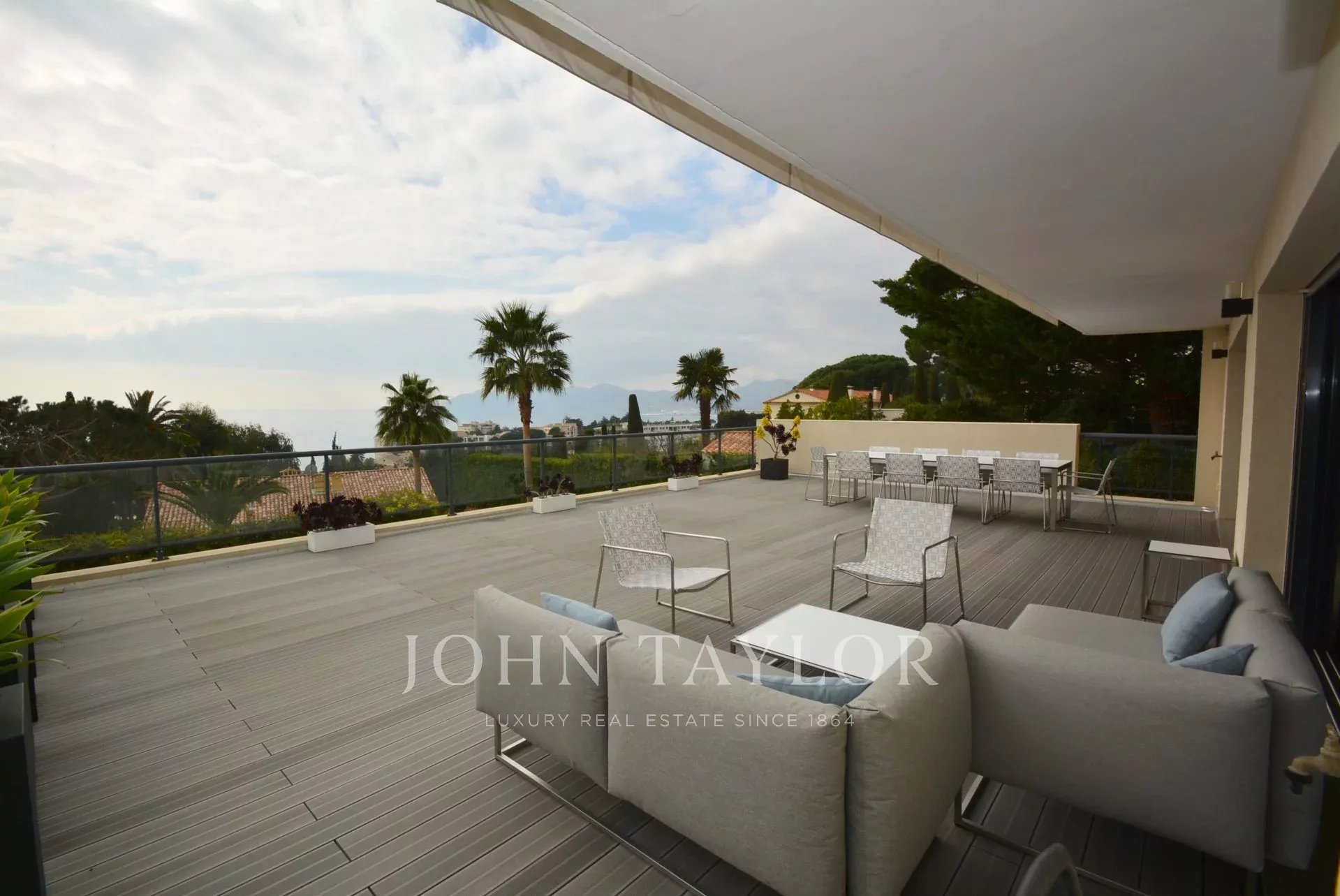 Nel quartiere "CROIX DES GARDES", a dieci minuti dal centro di Cannes e dal Palais des Festivals, con una magnifica vista sulla baia di Cannes, le isole Lérins e l'Estérel, appartamento completamente climatizzato all'ultimo piano di un residence di 3 appartamenti con giardino e piscina riscaldata.