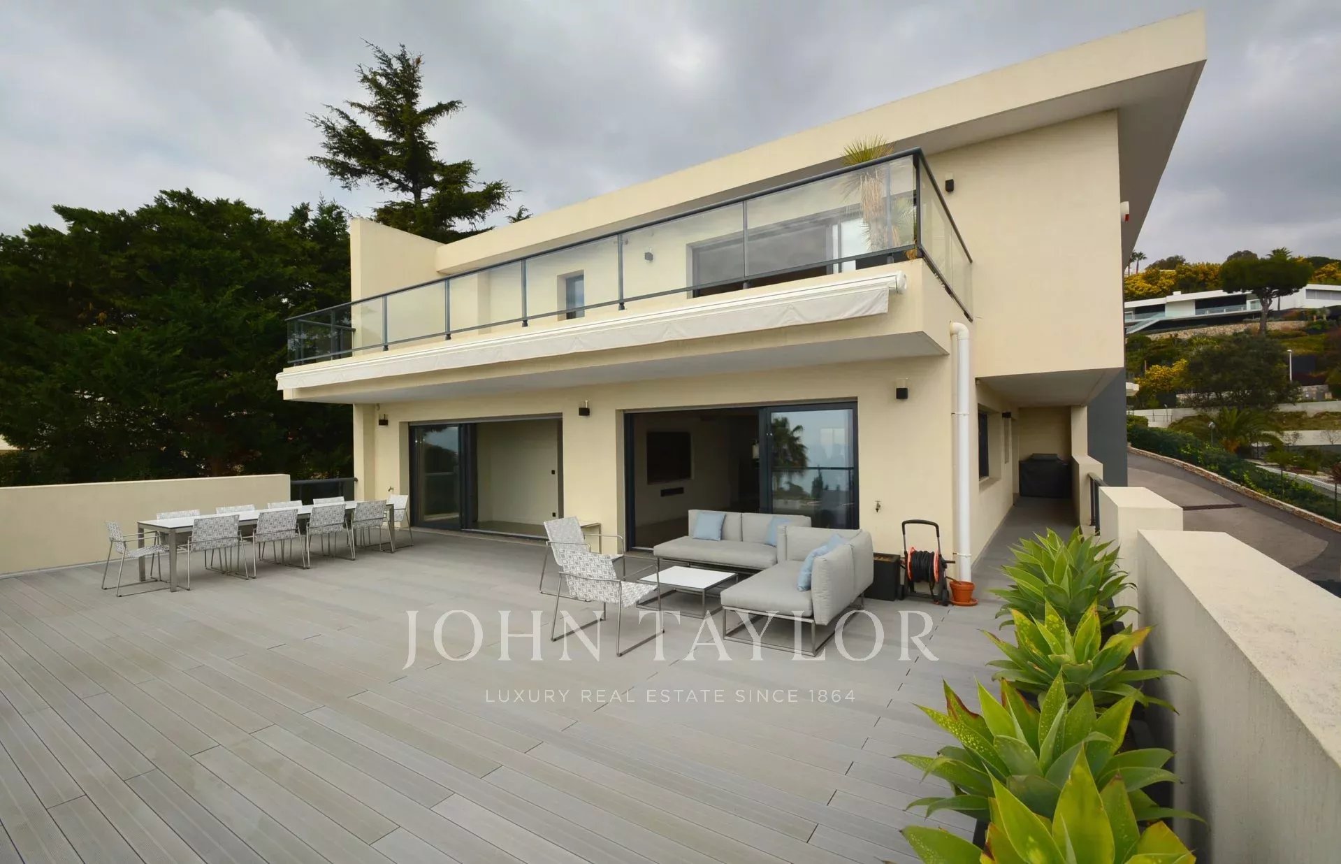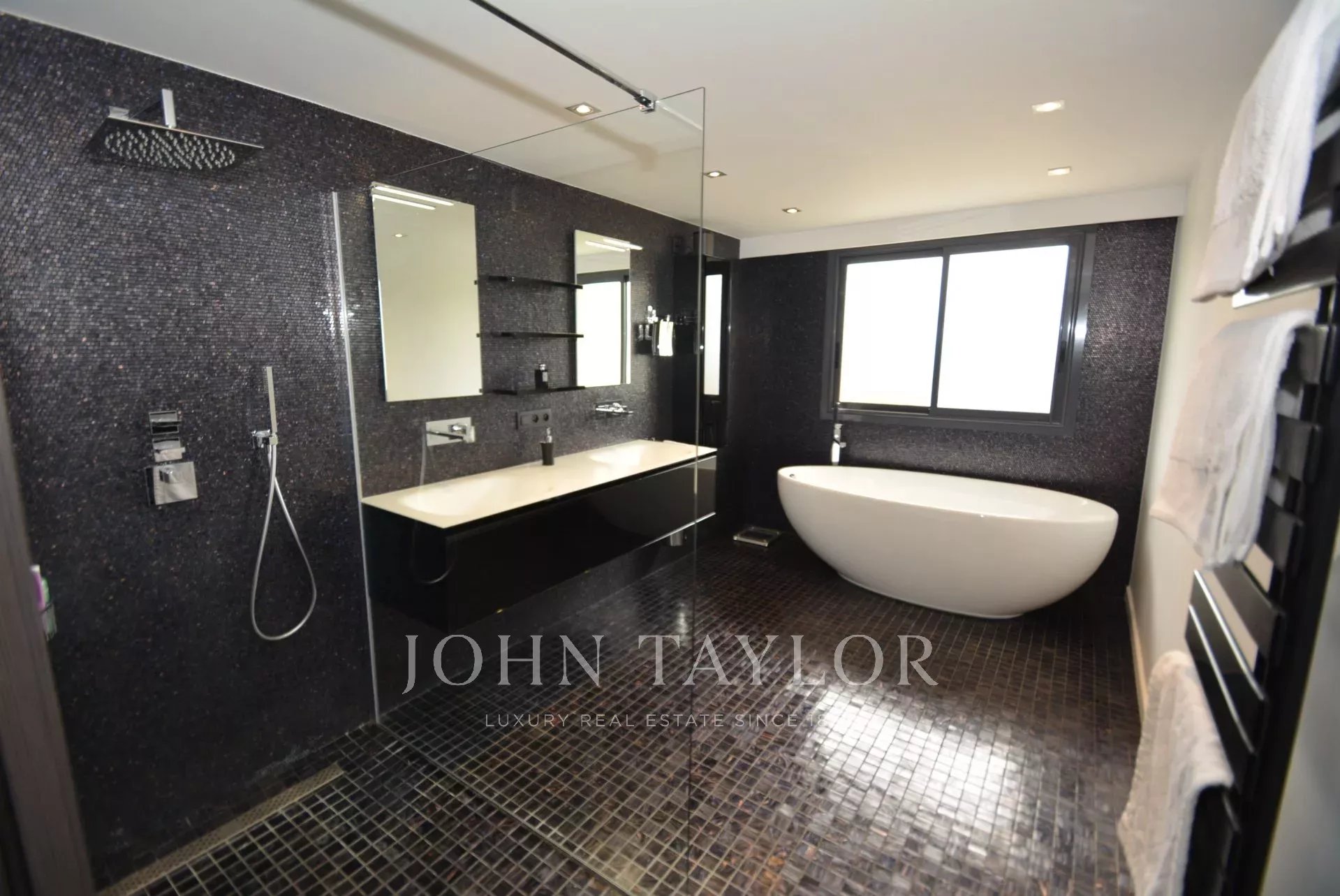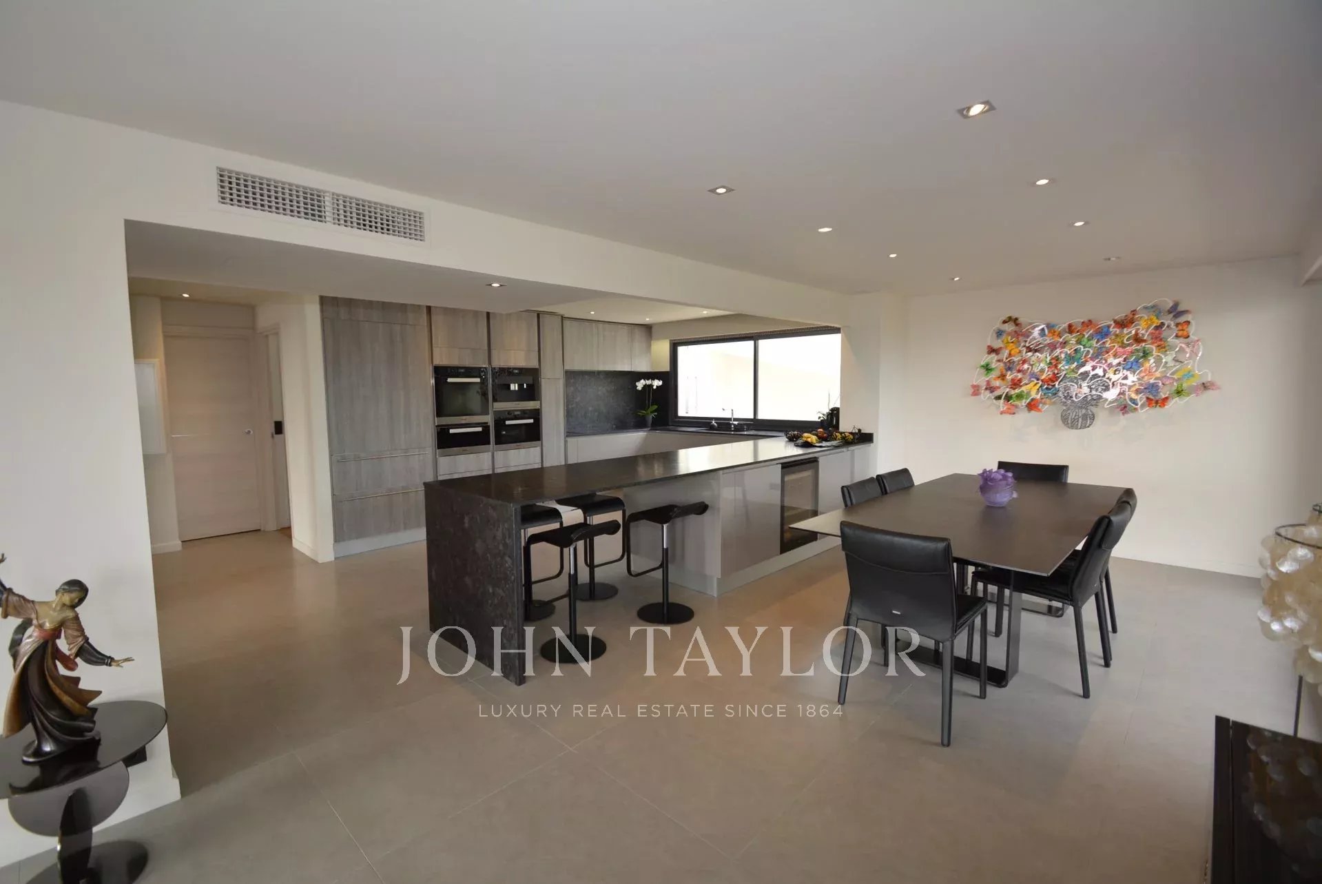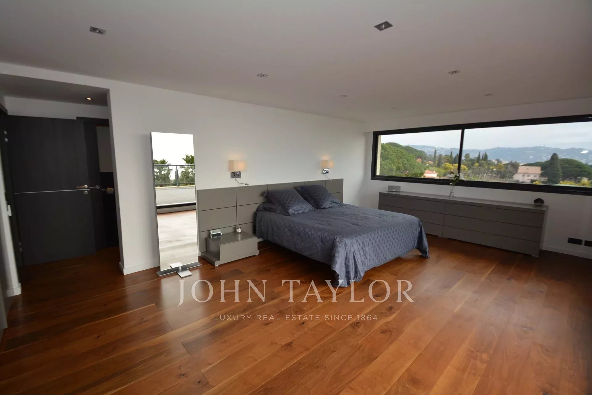 Nel quartiere "CROIX DES GARDES", a dieci minuti dal centro di Cannes e dal Palais des Festivals, con una magnifica vista sulla baia di Cannes, le isole Lérins e l'Estérel, appartamento completamente climatizzato all'ultimo piano di un residence di 3 appartamenti con giardino e piscina riscaldata.