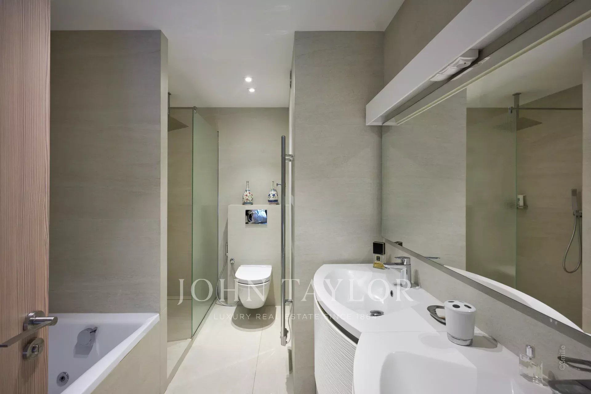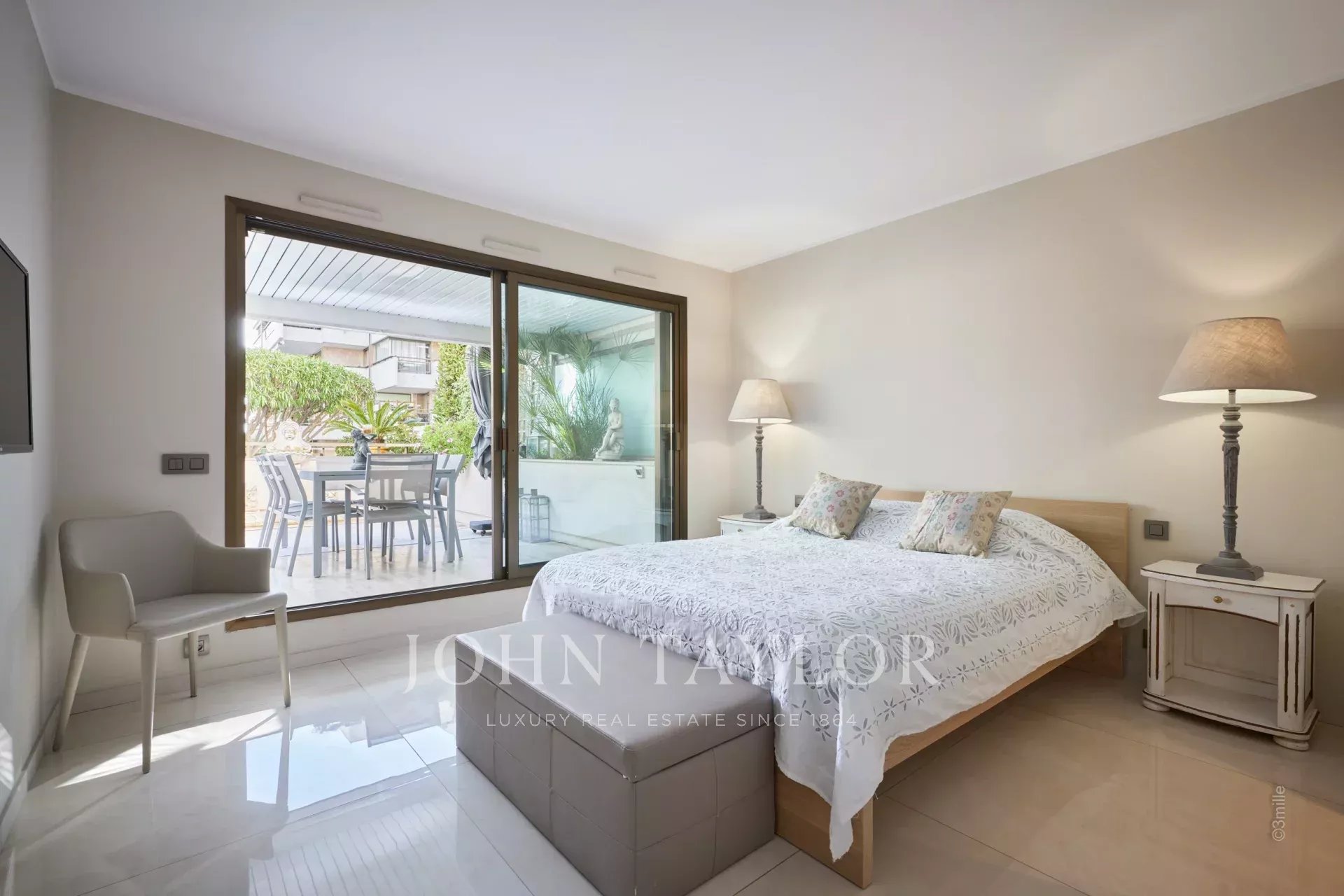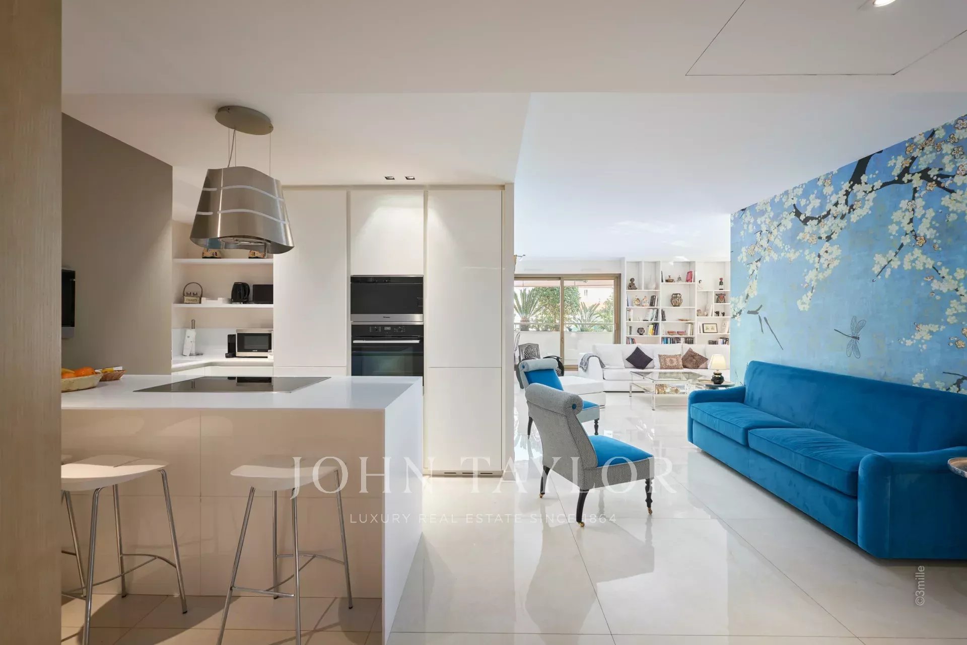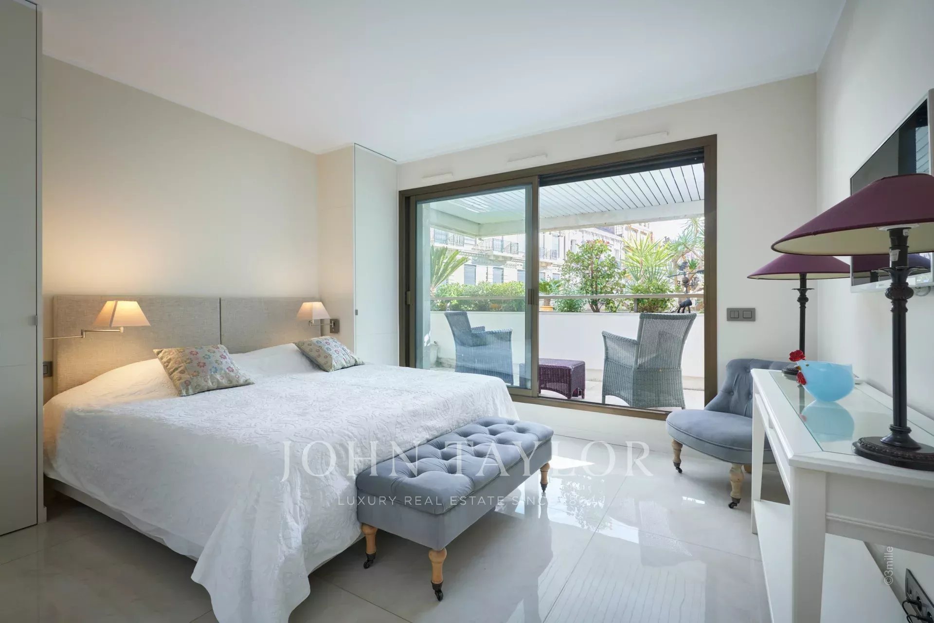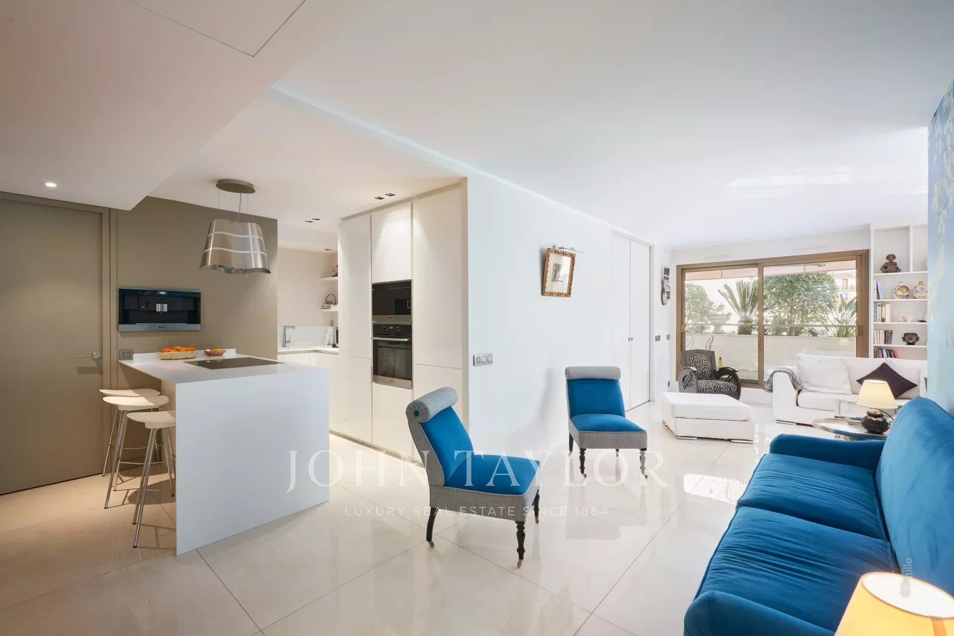 Nel cuore di Cannes, vicino al Palais des Festivals, appartamento di lusso di 106 m2, completamente ristrutturato e climatizzato, con una terrazza di 46 m2.