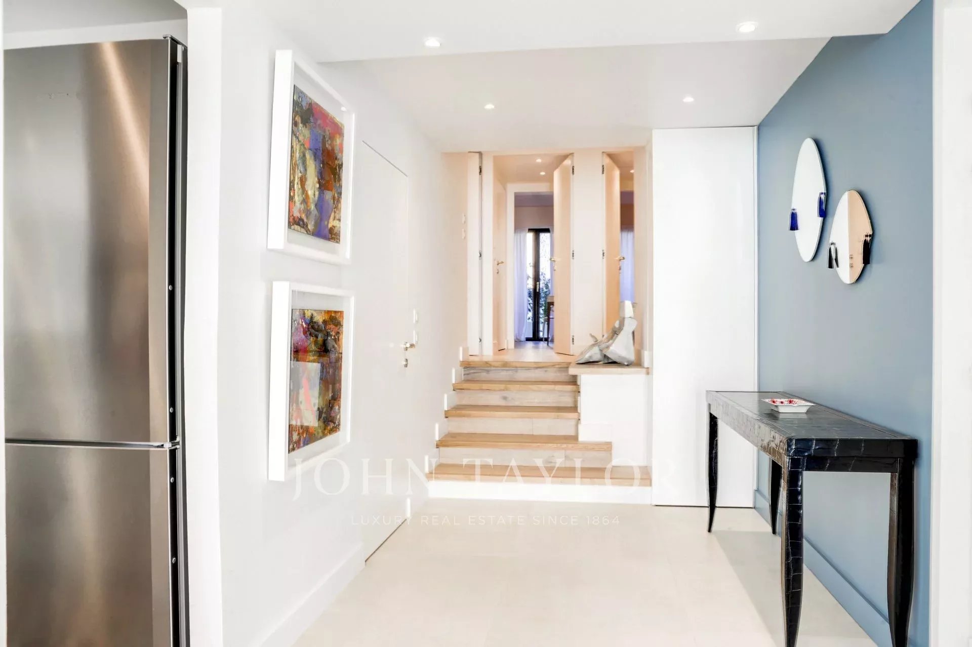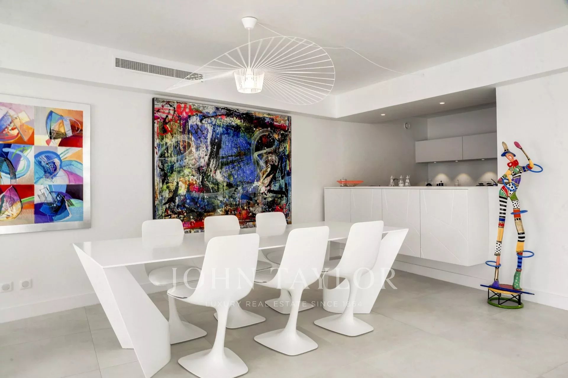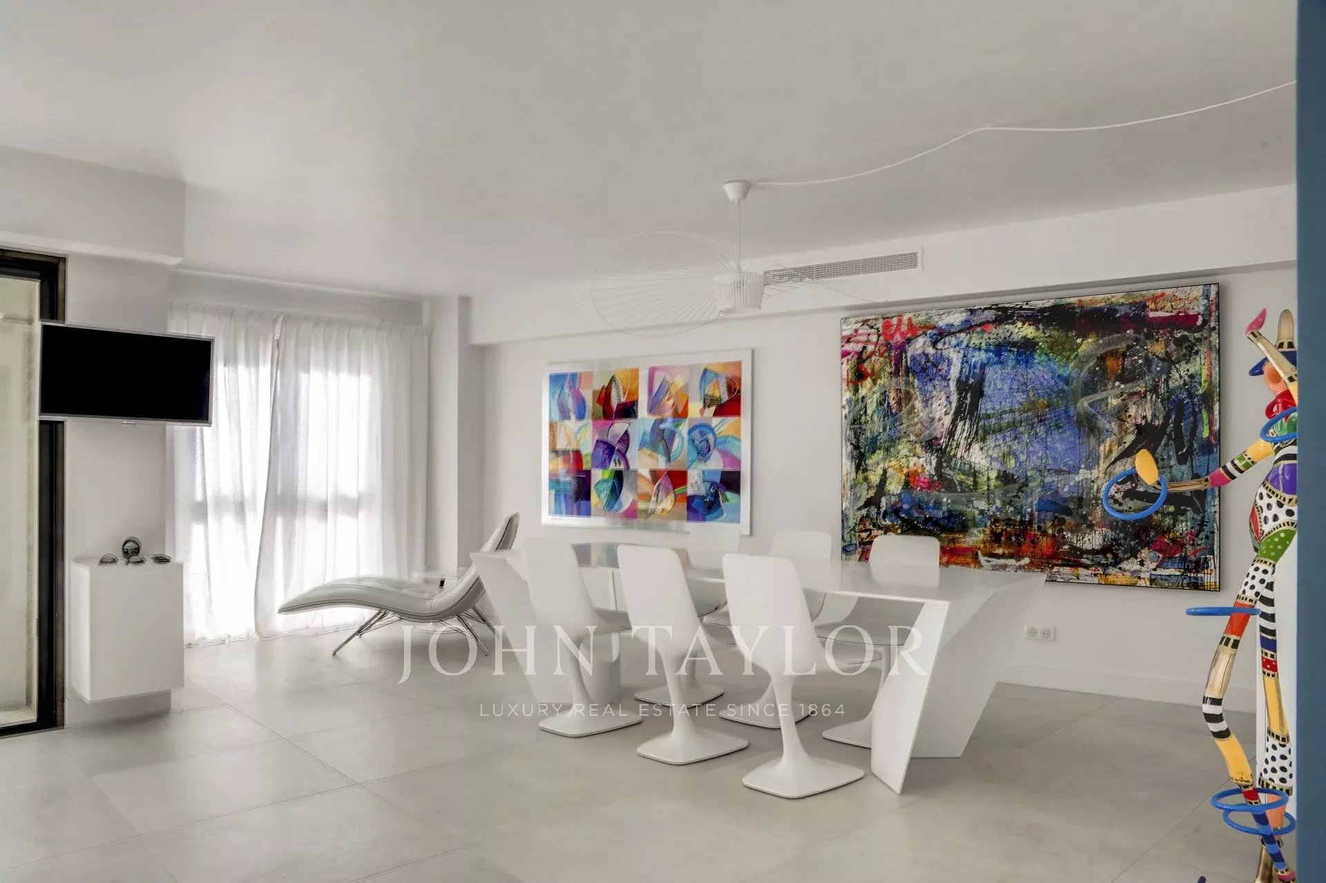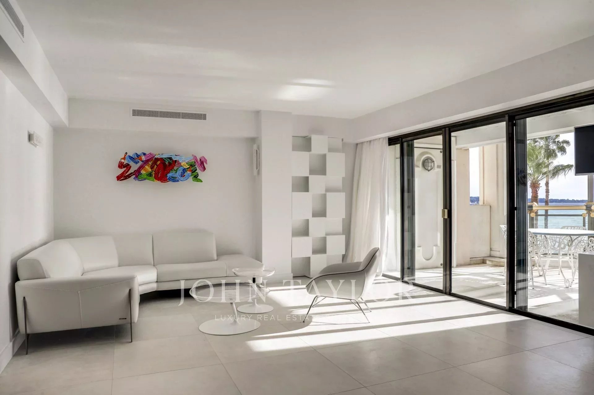A pochi minuti a piedi dal Palais des Festivals, al 3° piano di una delle residenze più prestigiose della Croisette, si trova il RELAIS DE LA REINE, un appartamento completamente rinnovato e arredato in stile contemporaneo, che offre circa 120 m2 di superficie abitabile e una vista privilegiata sulla baia di Cannes.