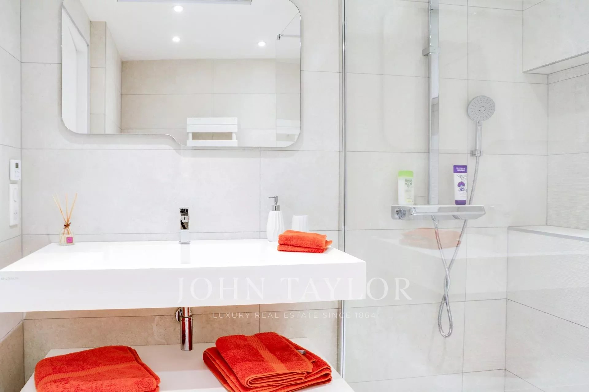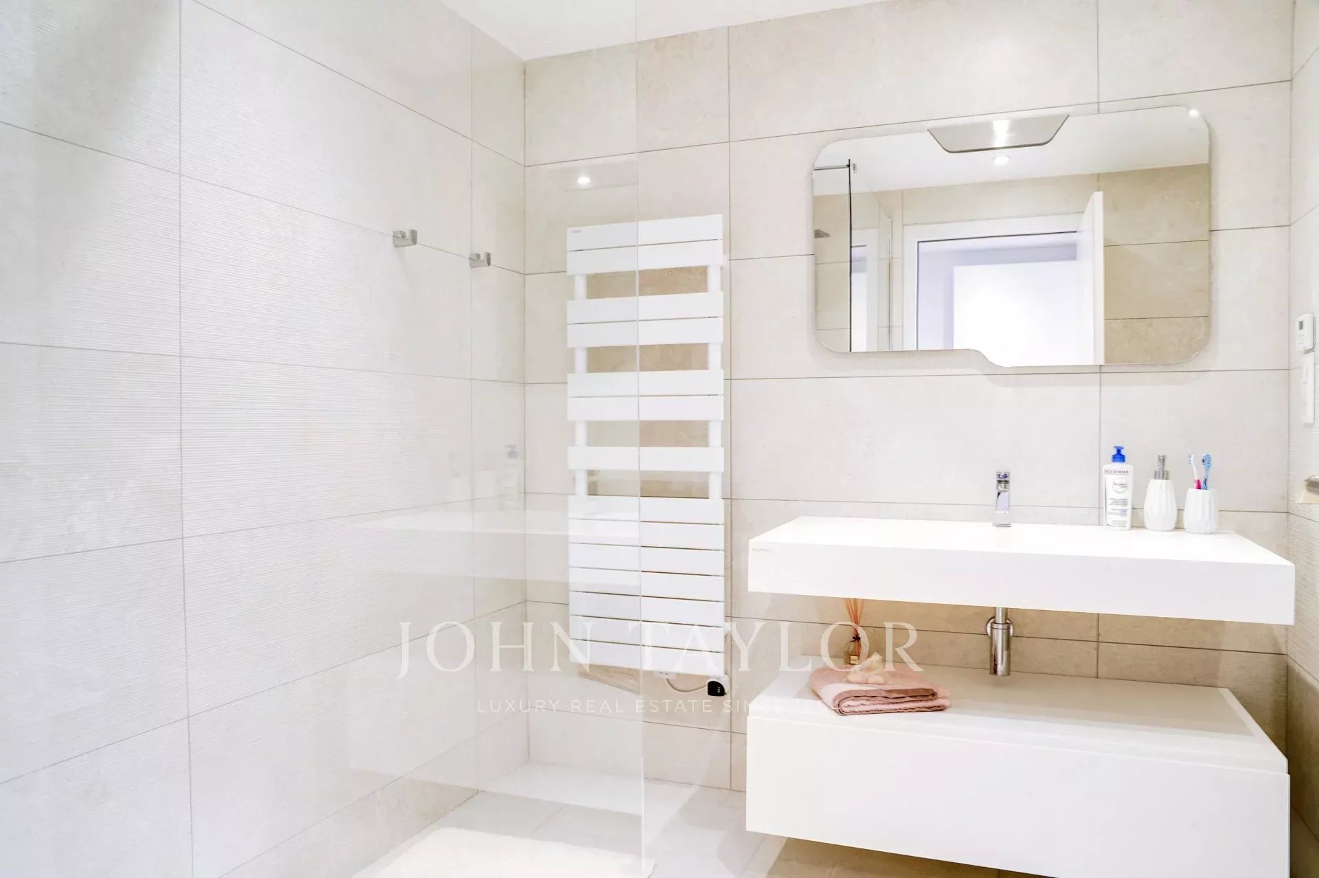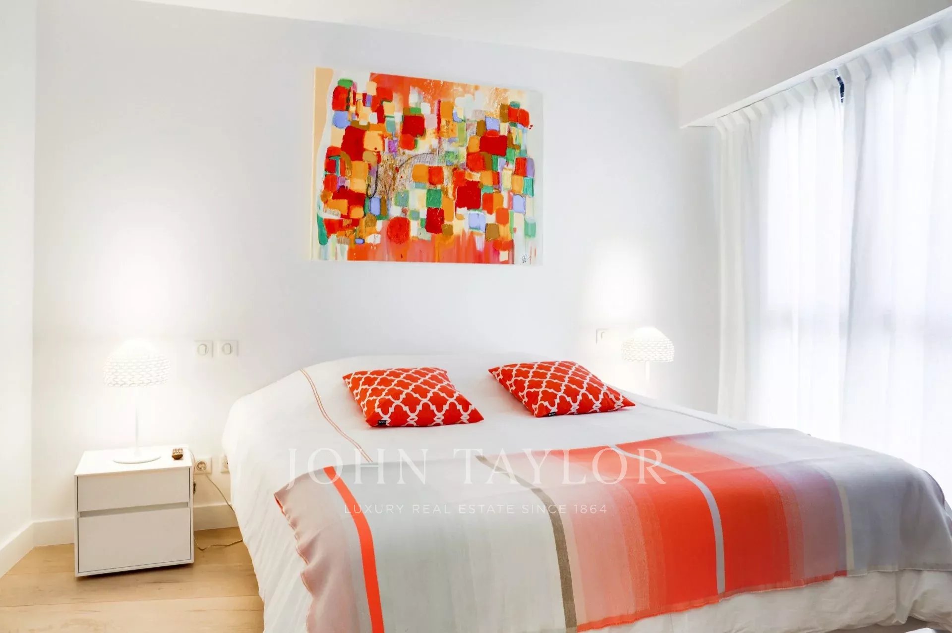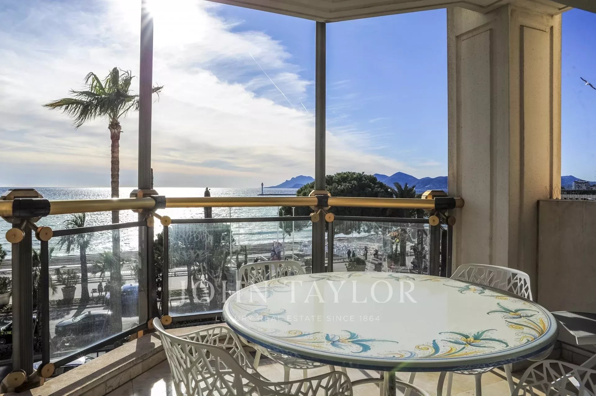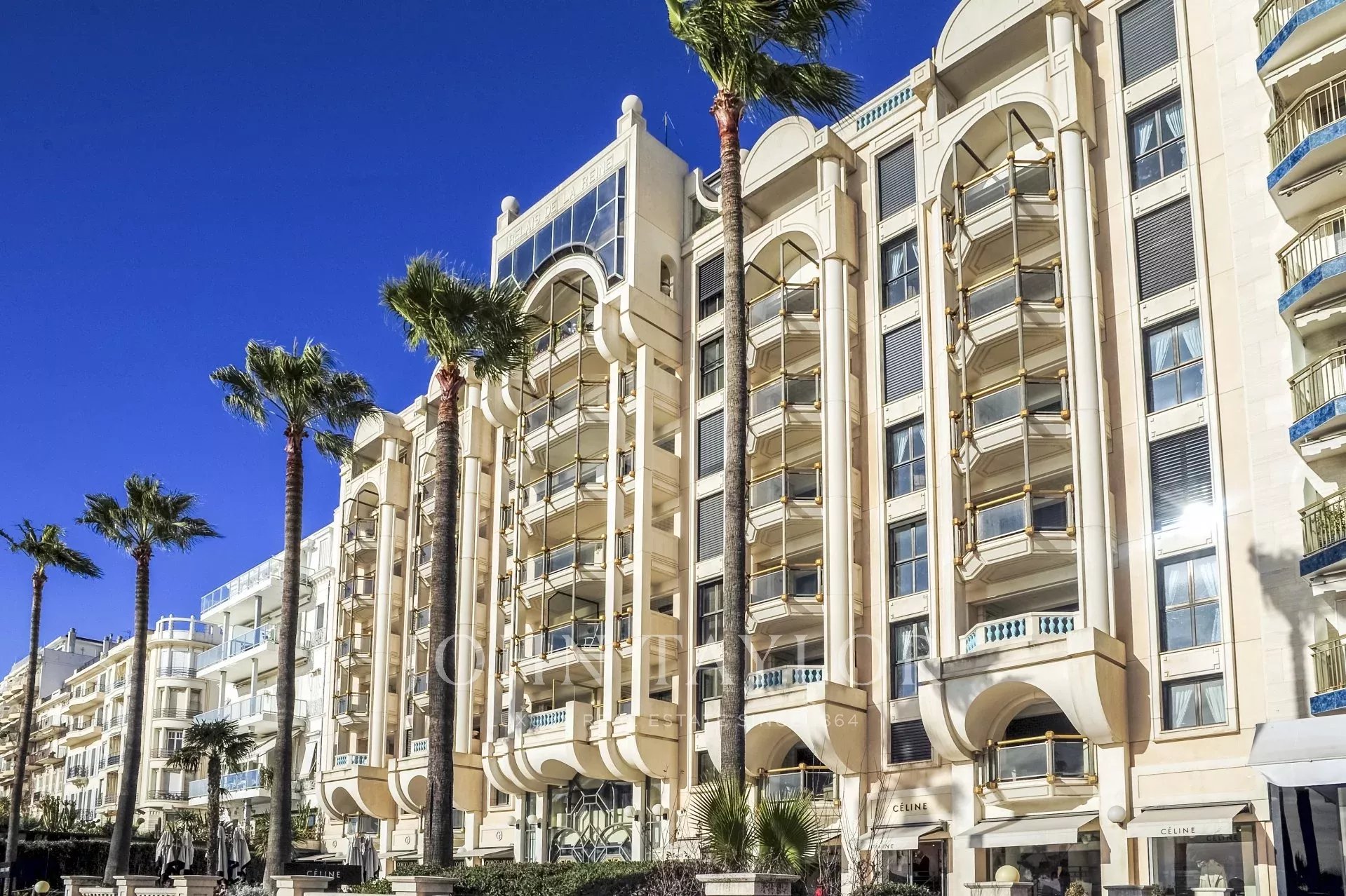 A pochi minuti a piedi dal Palais des Festivals, al 3° piano di una delle residenze più prestigiose della Croisette, si trova il RELAIS DE LA REINE, un appartamento completamente rinnovato e arredato in stile contemporaneo, che offre circa 120 m2 di superficie abitabile e una vista privilegiata sulla baia di Cannes.