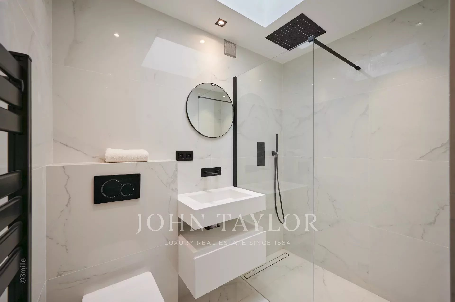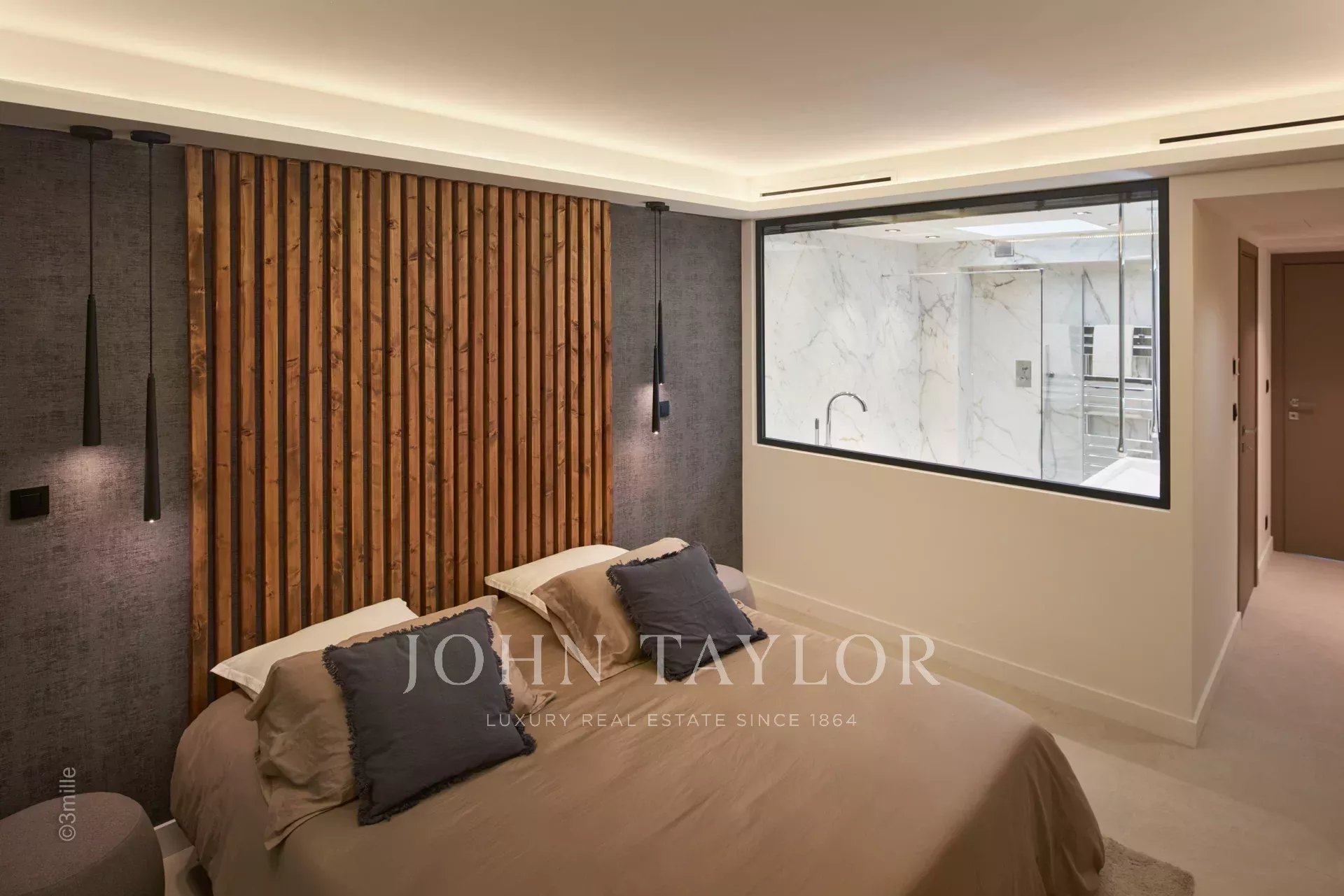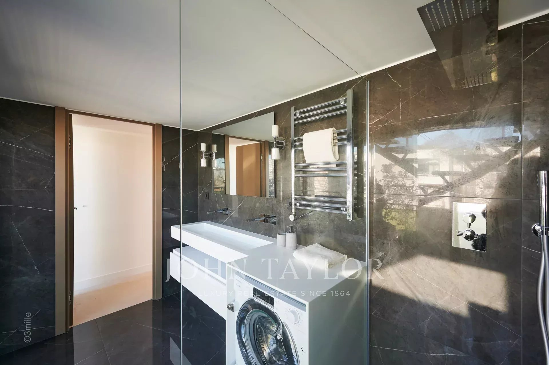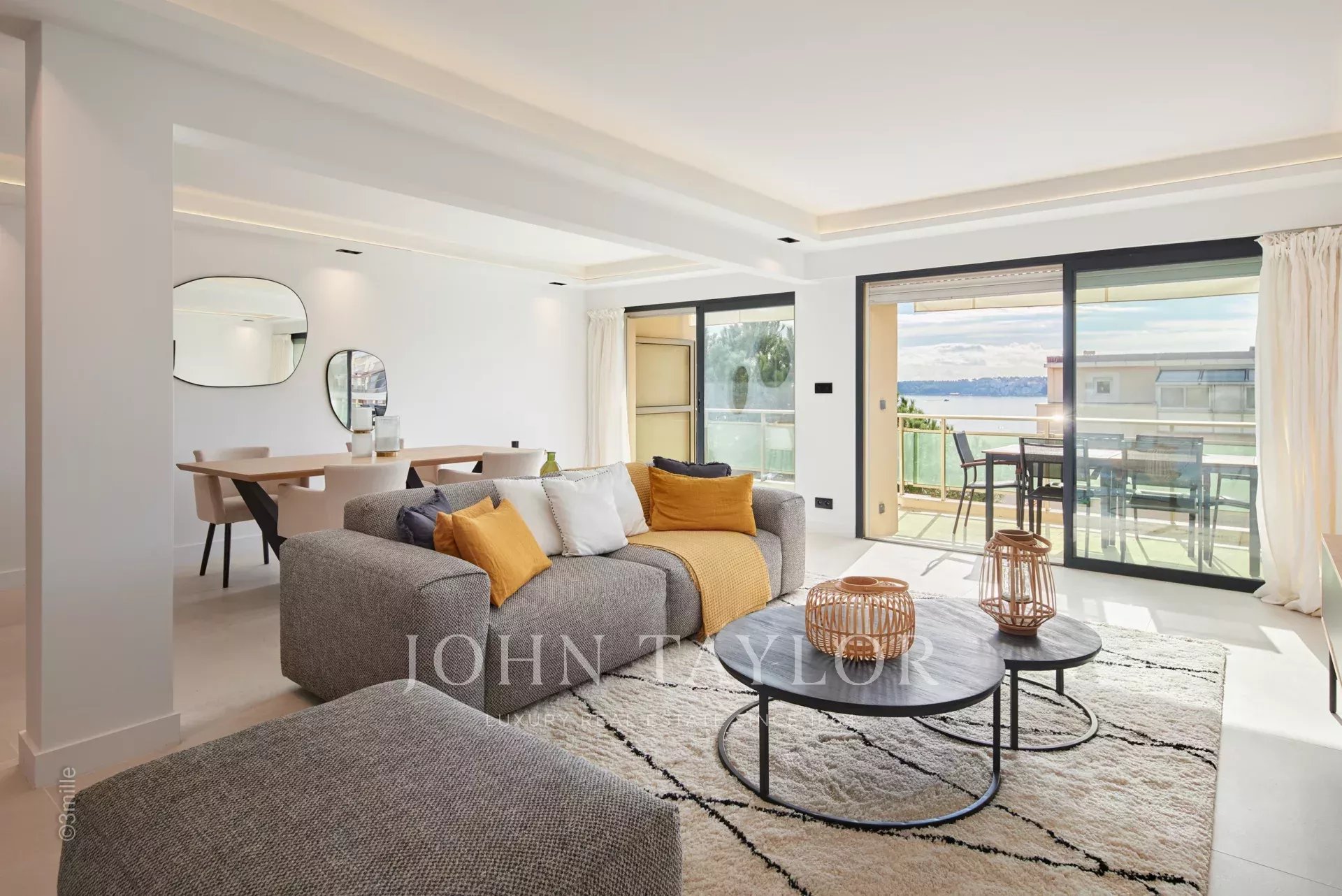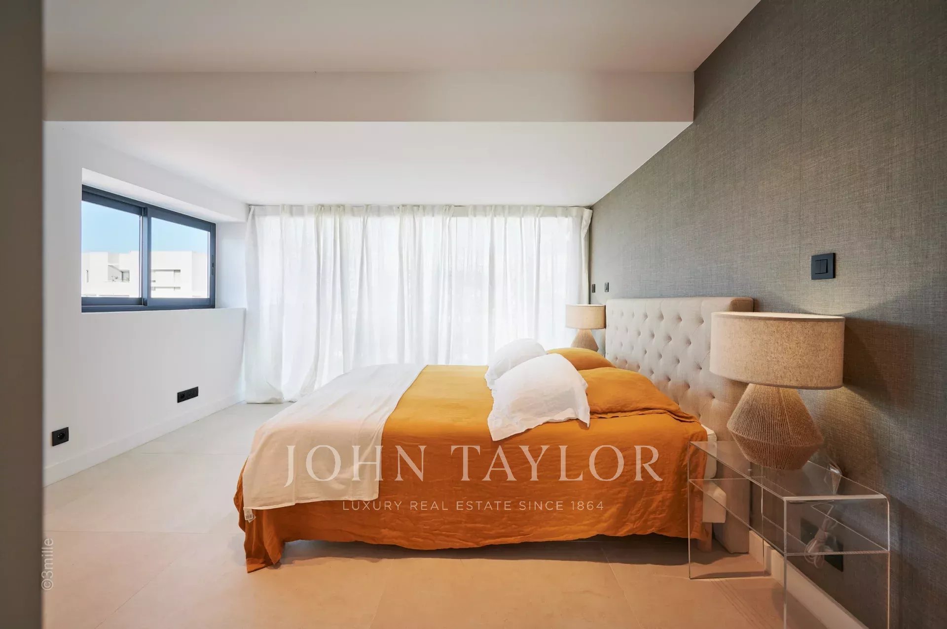 Nel quartiere di Palm Beach, vicino al porto e alle spiagge di "Mouré Rouge", al 4° e ultimo piano, bellissimo appartamento di circa 140 m², con una splendida terrazza sul tetto di 130 m² con salotto estivo, barbecue e vasca idromassaggio, che offre una splendida vista sulla baia di Cannes e sulle isole Lérins (accesso dalla terrazza posteriore dell'appartamento).