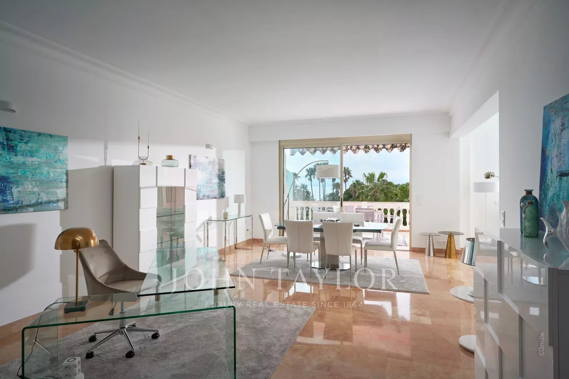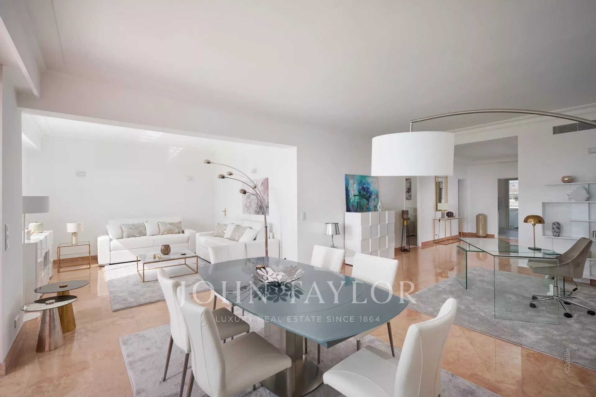 In una prestigiosa residenza sulla Croisette con una splendida vista sulla baia di Cannes, questo splendido appartamento offre 112 m2 di superficie abitabile e una terrazza di 15 m2.