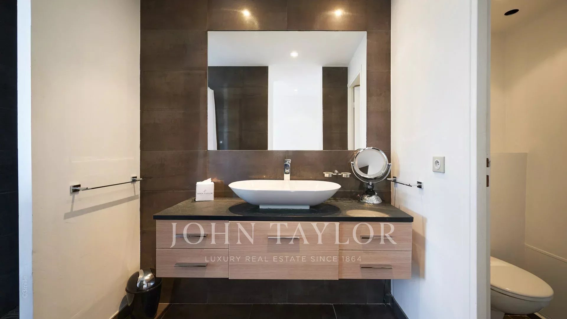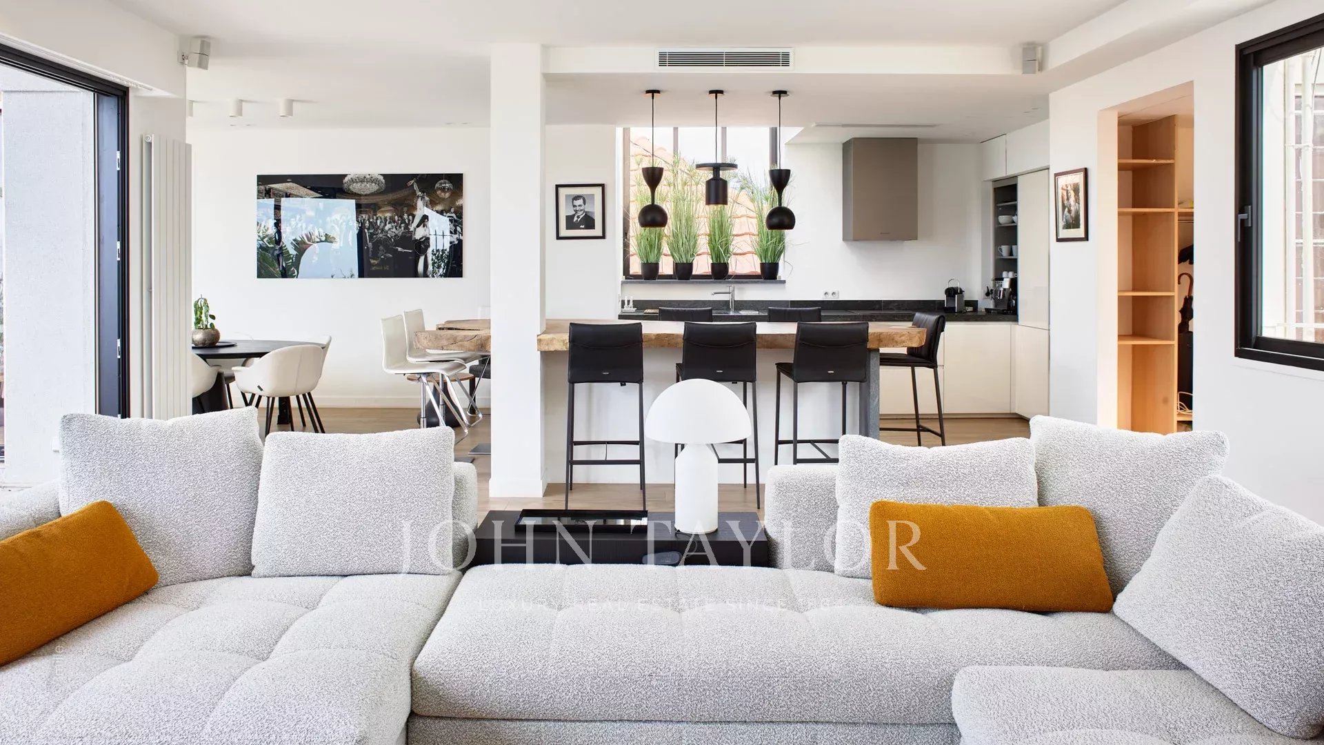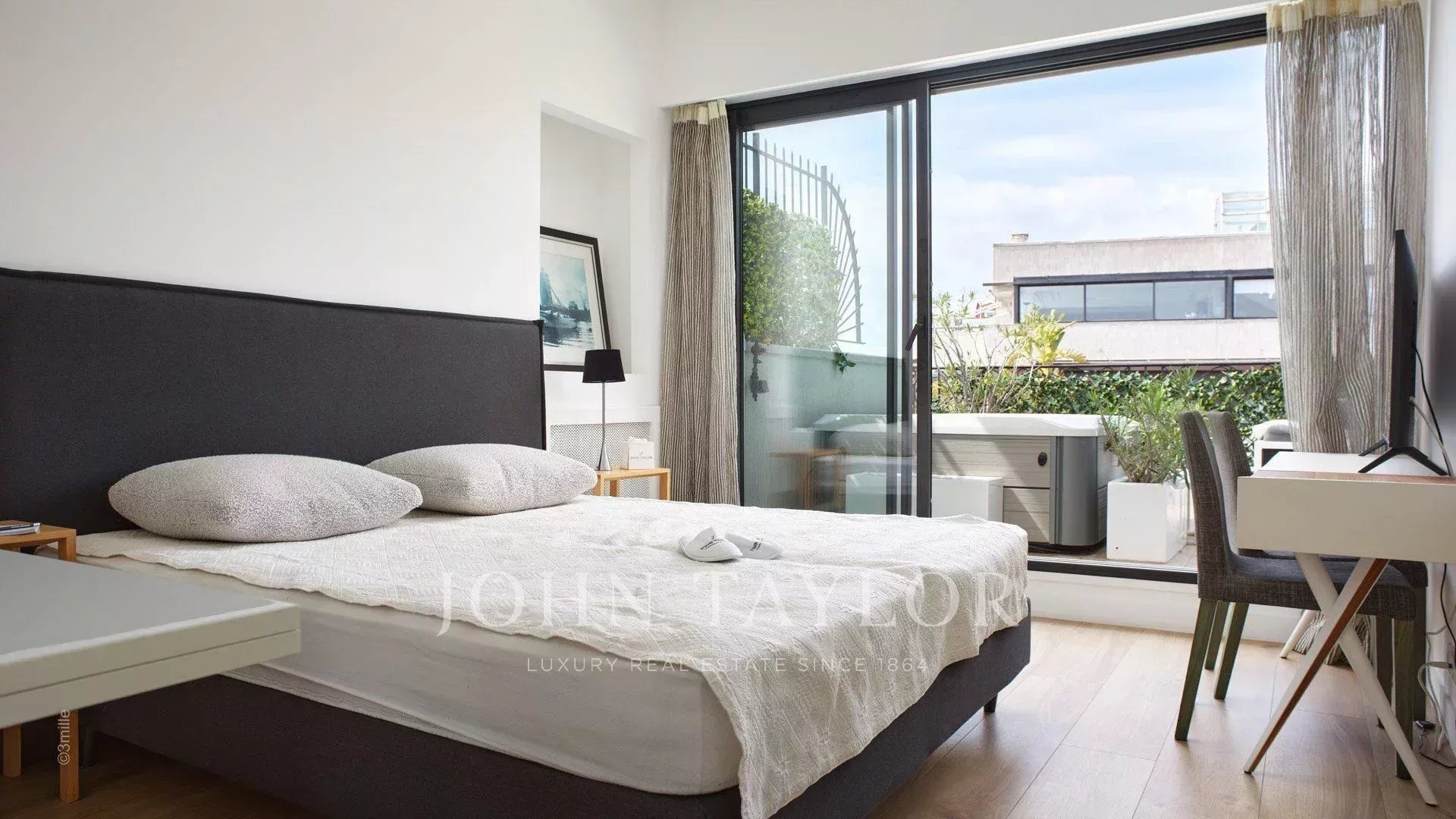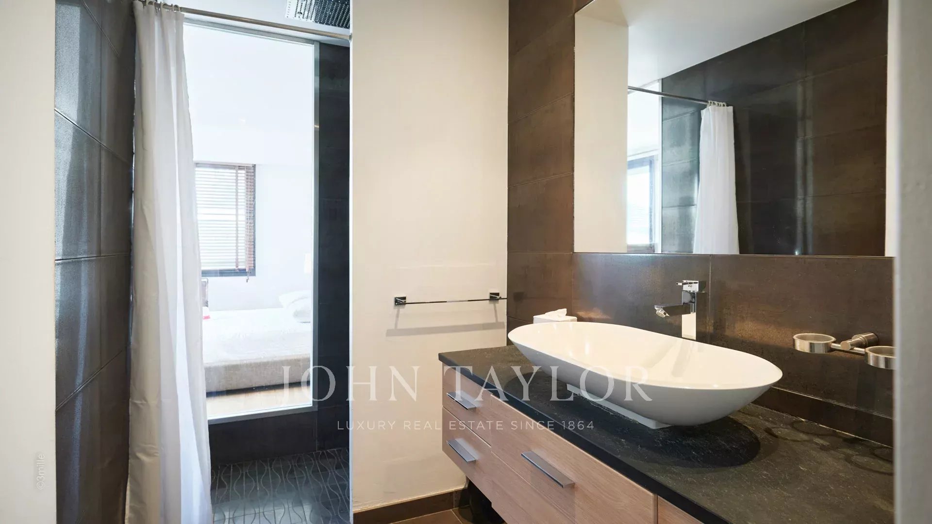 In una posizione tranquilla, vicino al Palais des Festivals, questo superbo appartamento contemporaneo offre 130 m2 di spazio abitativo, completamente climatizzato e ristrutturato secondo standard elevati, con due ampie terrazze e una splendida vista sul mare.