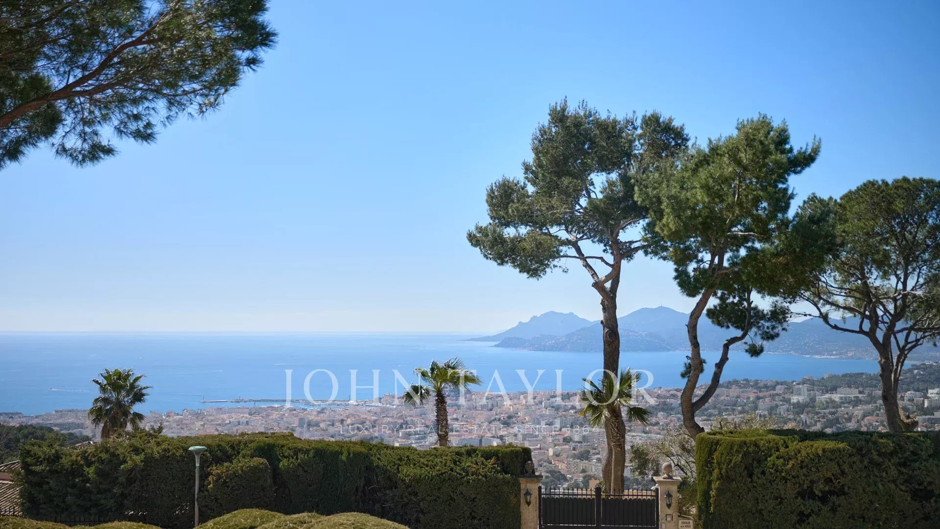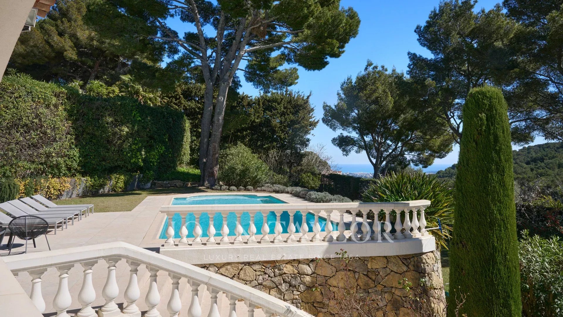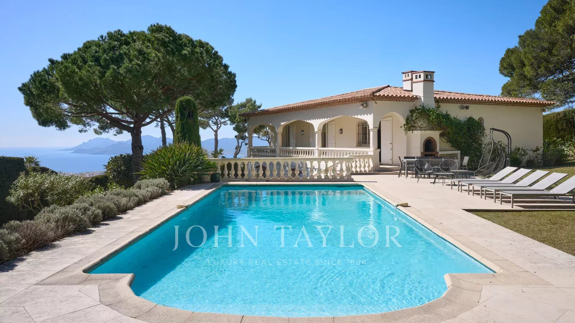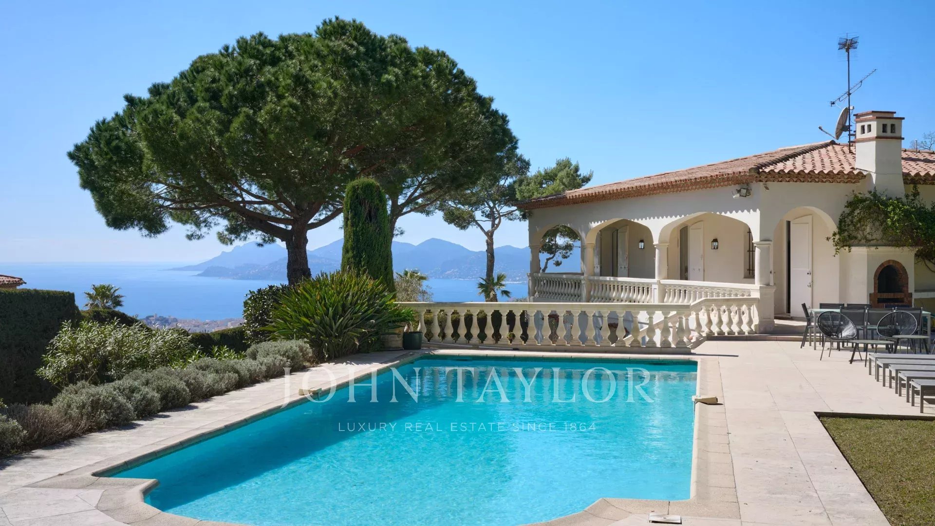 Bella villa in stile provenzale sulle colline sopra Cannes, con ampia terrazza e vista sul mare.