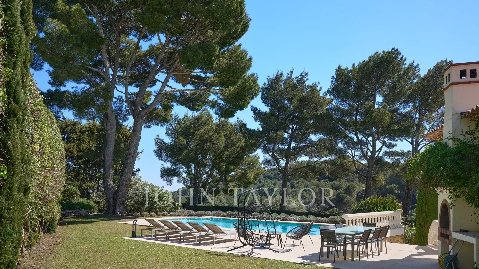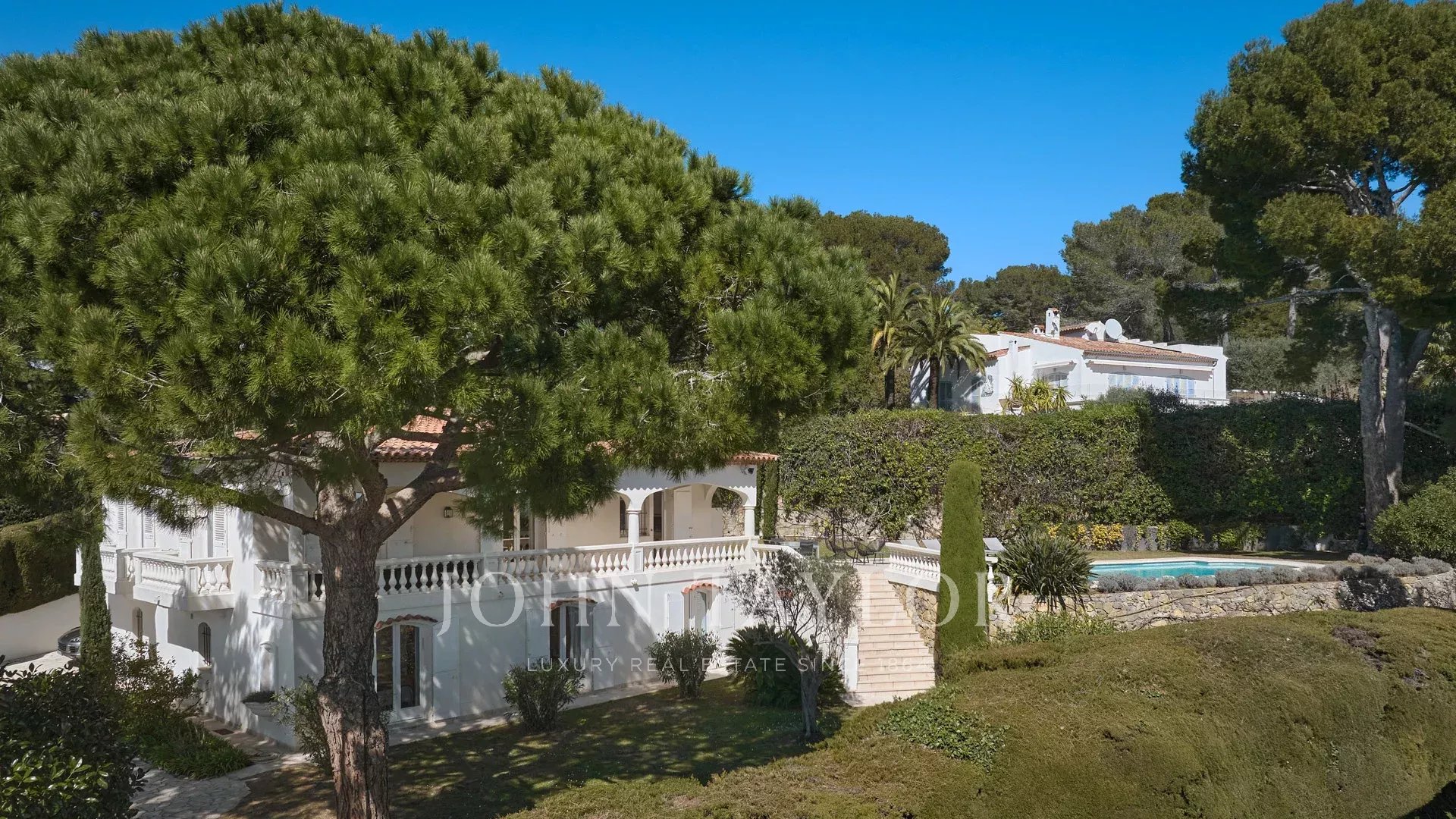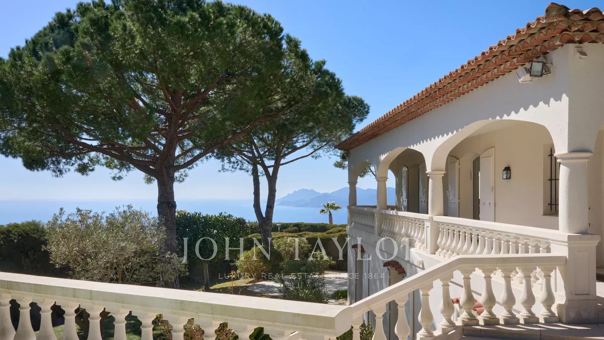 Bella villa in stile provenzale sulle colline sopra Cannes, con ampia terrazza e vista sul mare.