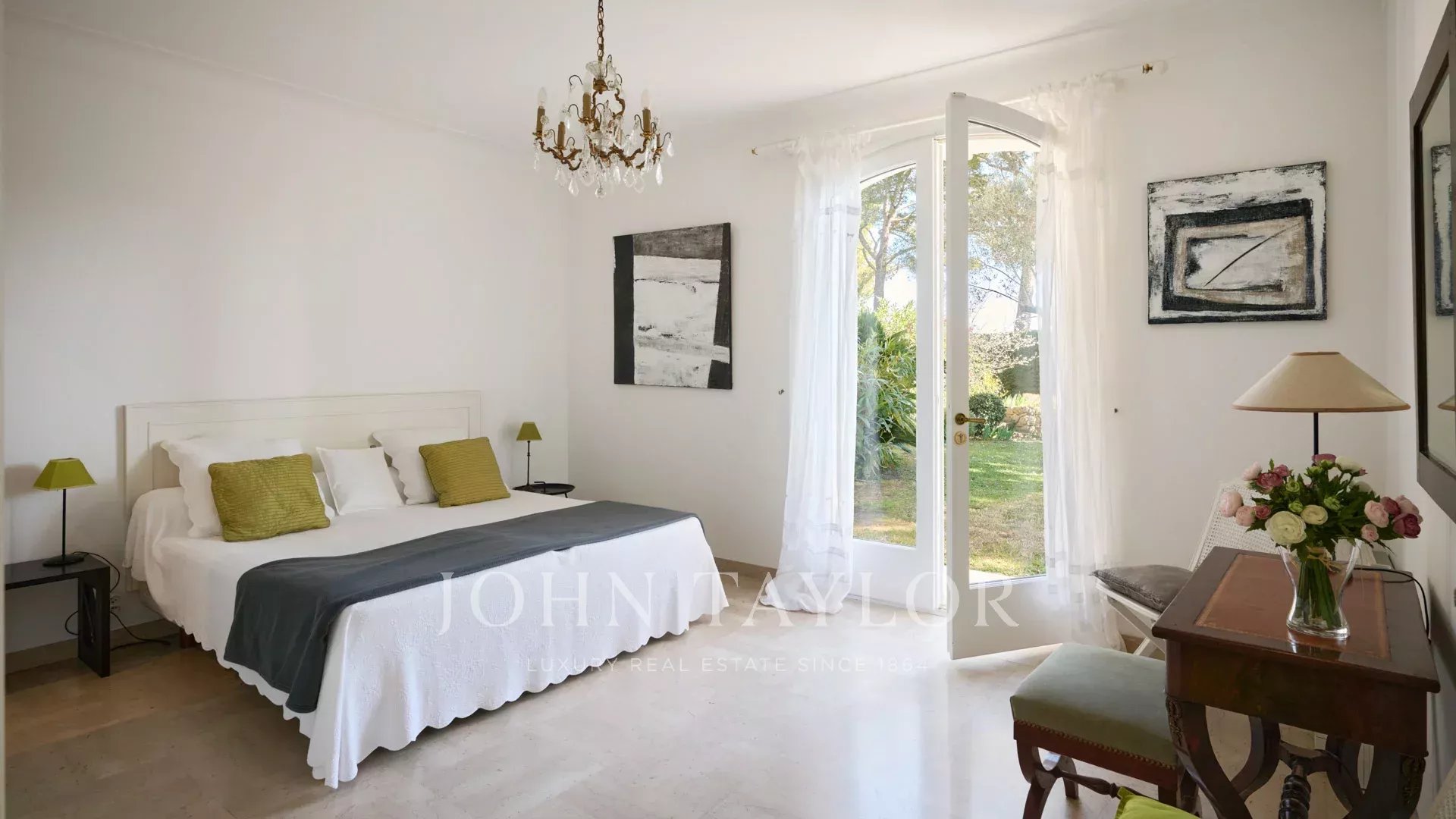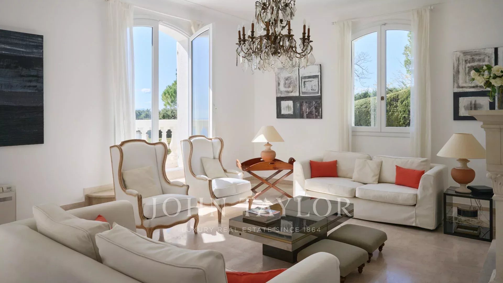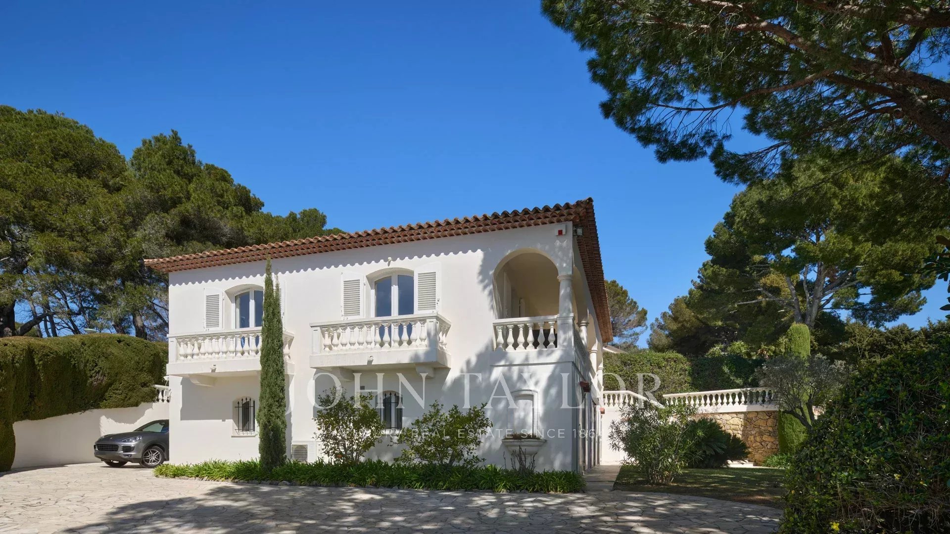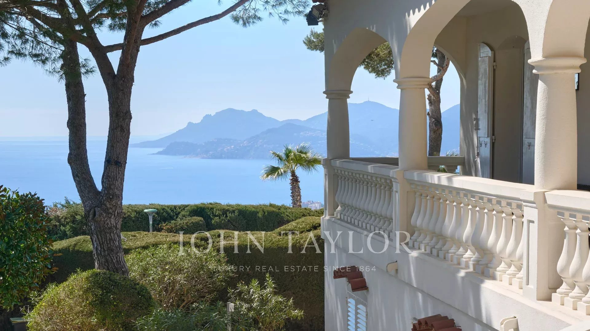 Bella villa in stile provenzale sulle colline sopra Cannes, con ampia terrazza e vista sul mare.