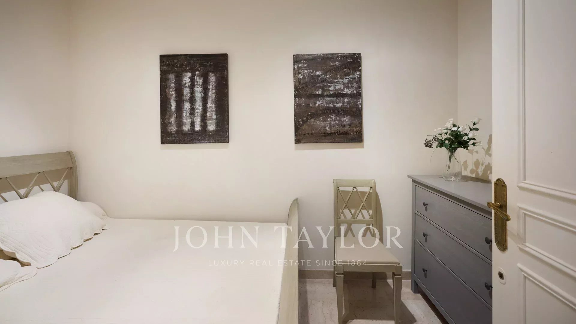 Camera climatizzata, 2 letti singoli, finestre a golfo che si aprono sul giardino, bagno, WC.