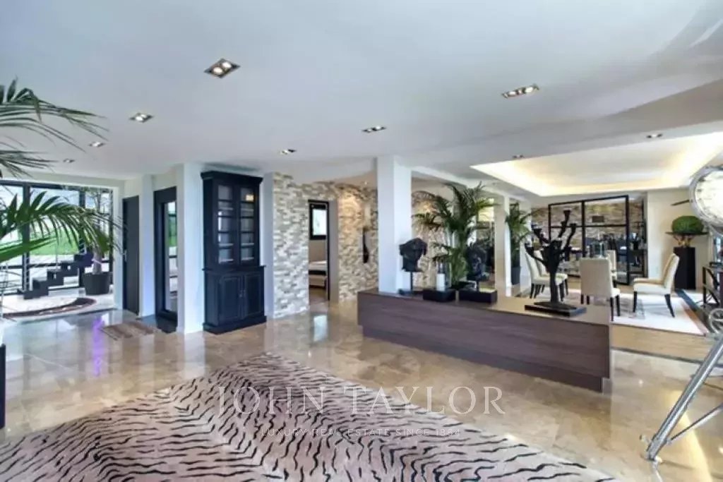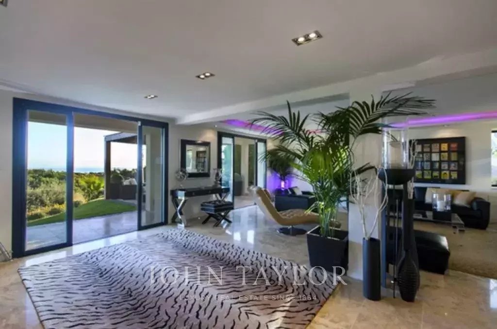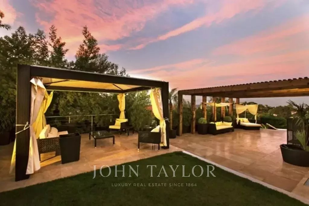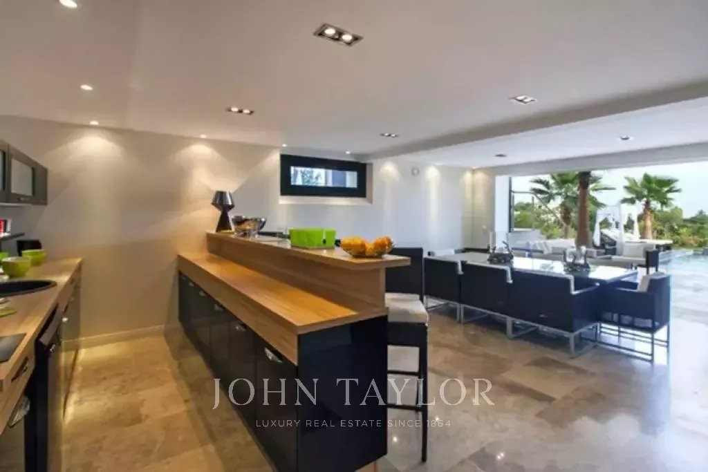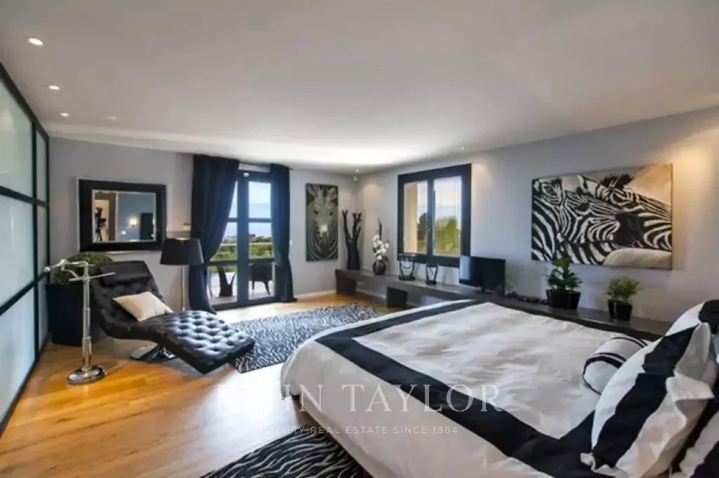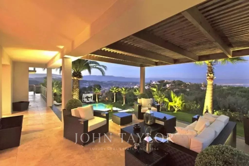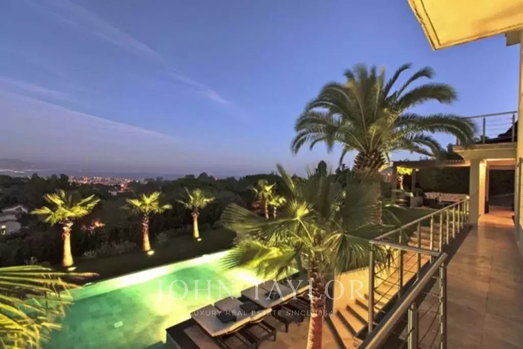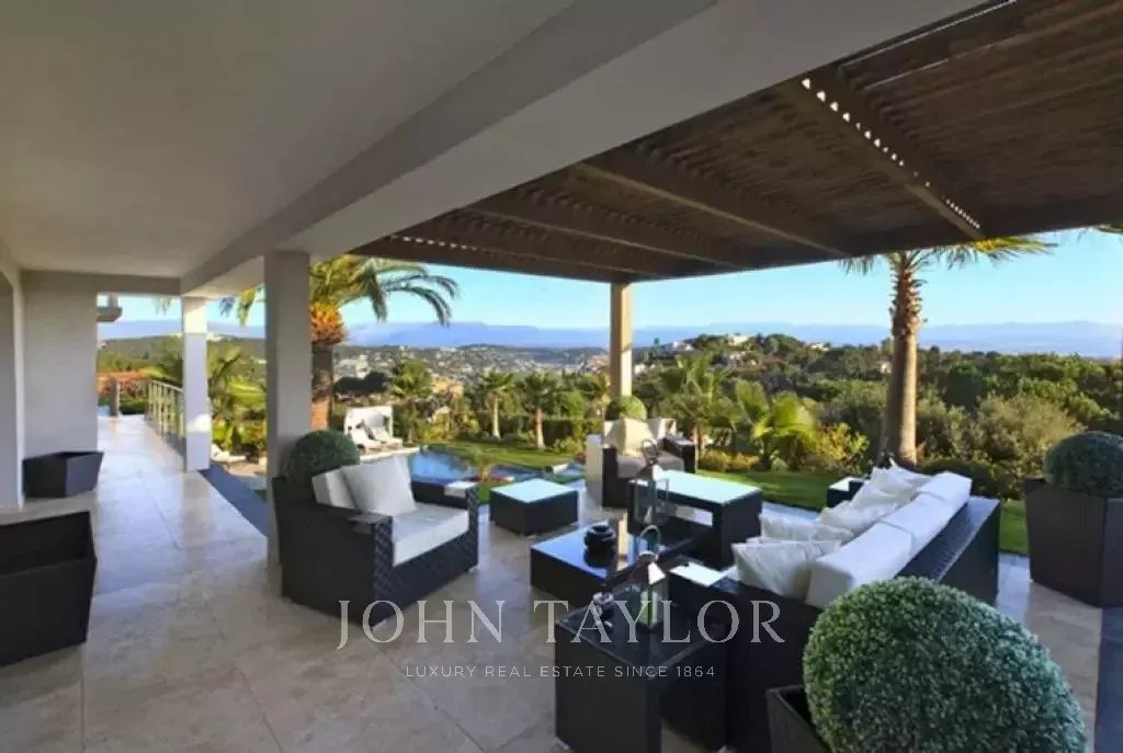 Magnifica villa sulle colline sopra Cannes, a soli dieci minuti d'auto dal centro città. Completamente ristrutturata, questa villa nel cuore di un giardino di 2.200 m2 combina il più raffinato arredamento contemporaneo con una superba vista panoramica sul mare dell'intera baia.