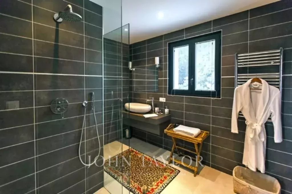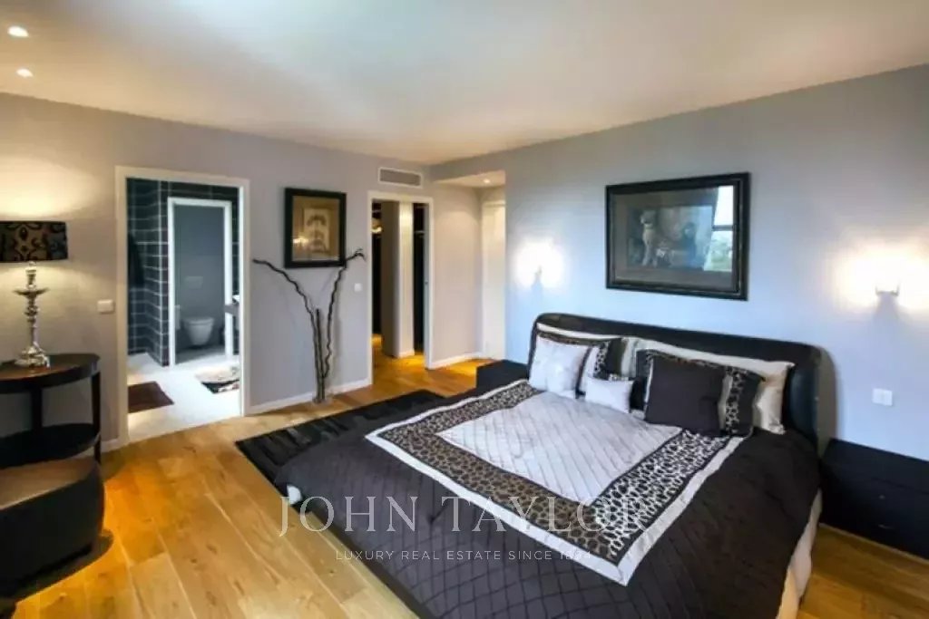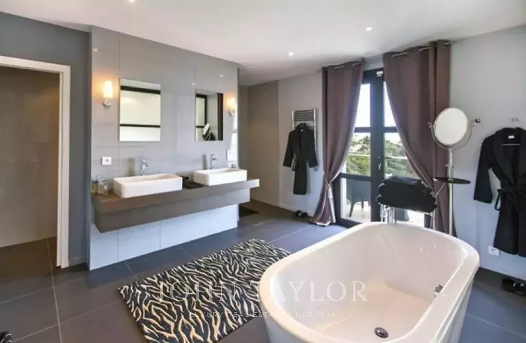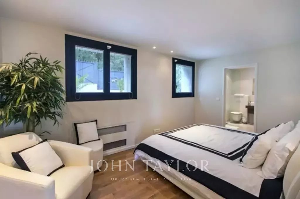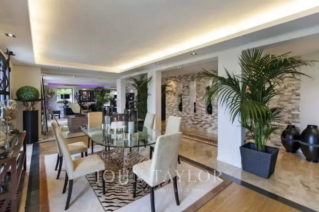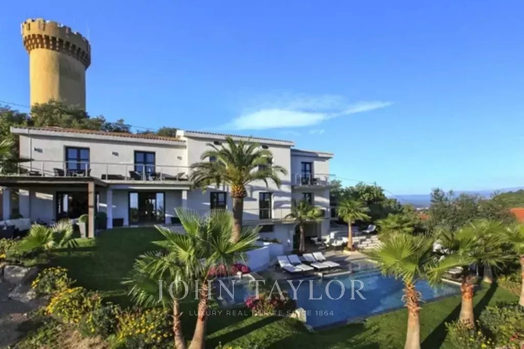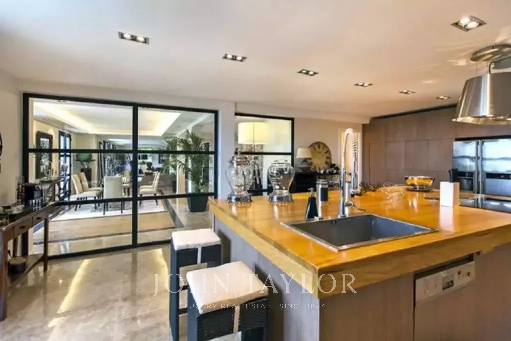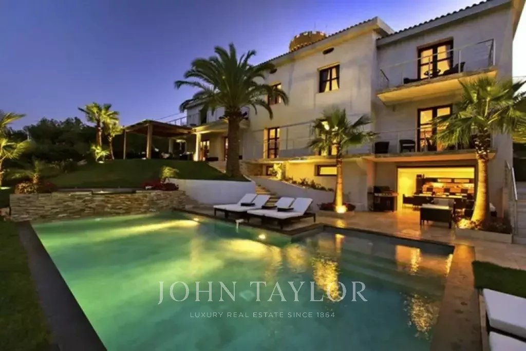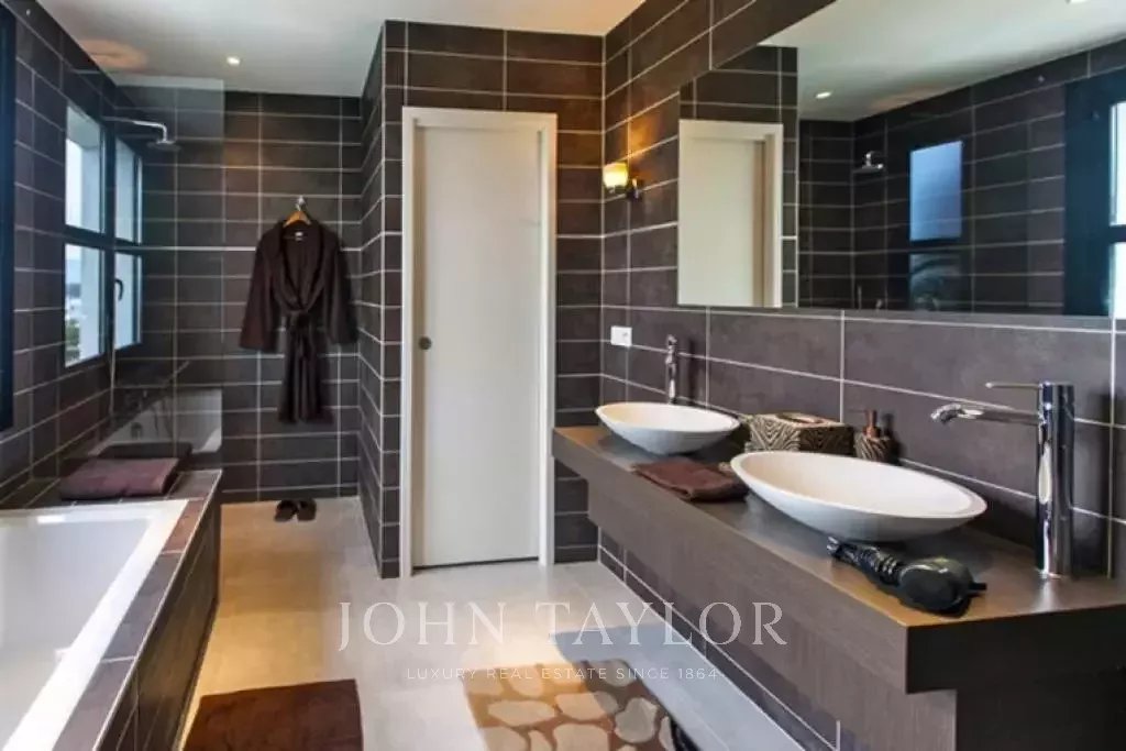 Magnifica villa sulle colline sopra Cannes, a soli dieci minuti d'auto dal centro città. Completamente ristrutturata, questa villa nel cuore di un giardino di 2.200 m2 combina il più raffinato arredamento contemporaneo con una superba vista panoramica sul mare dell'intera baia.