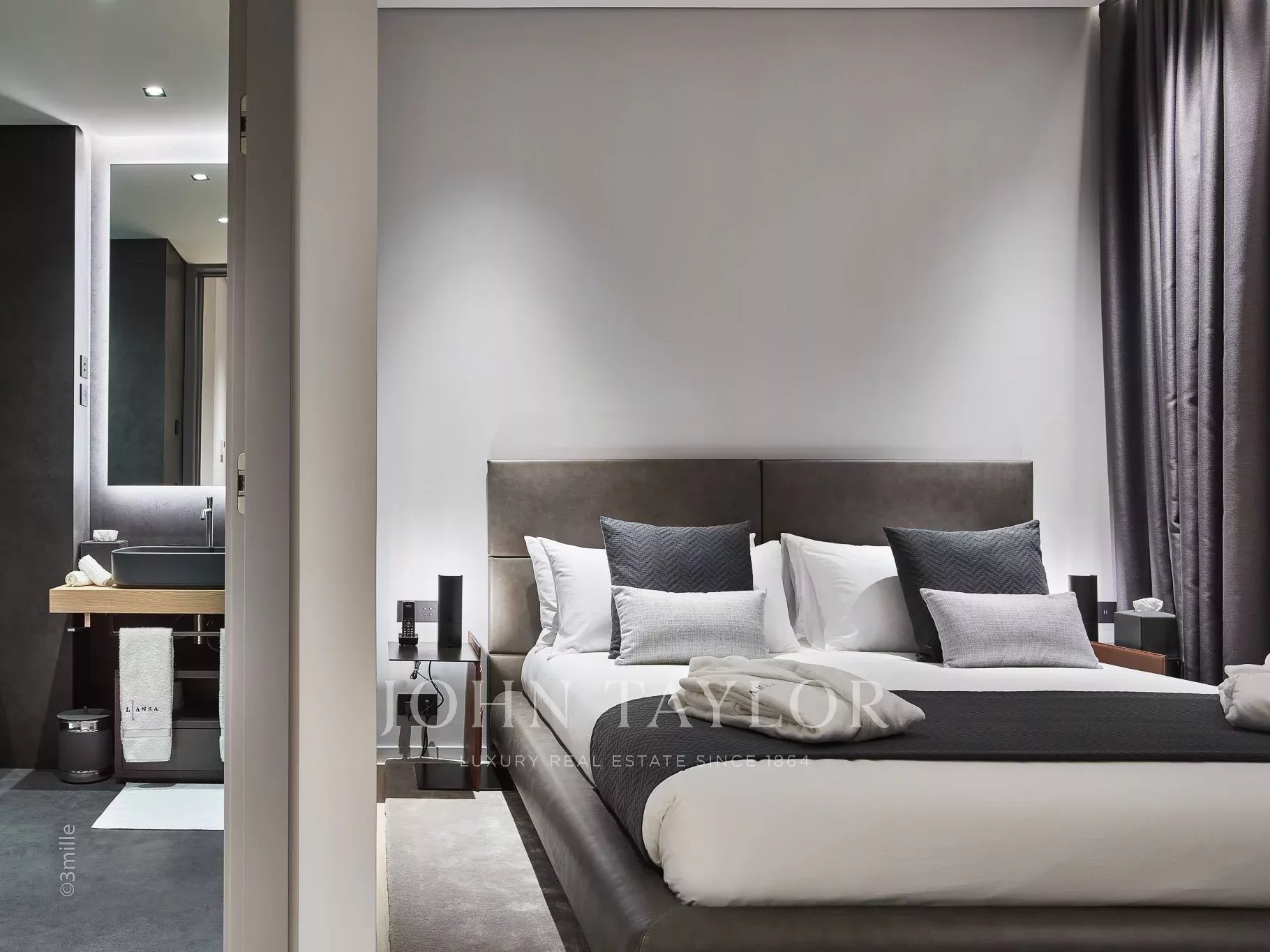 La camera da letto principale offre un'esperienza sontuosa con il suo bagno privato e lo spogliatoio.