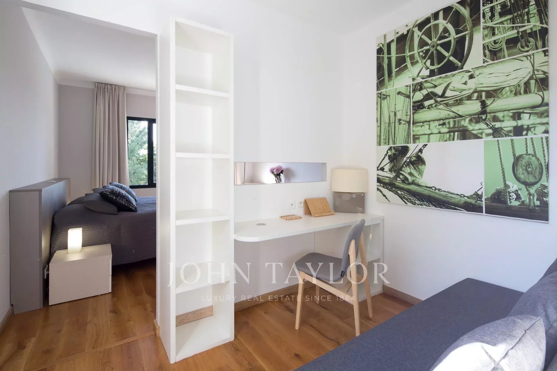 Camera da letto (letto matrimoniale 180 cm o 2 letti 90 cm), TV. Bagno con doccia e WC separato.