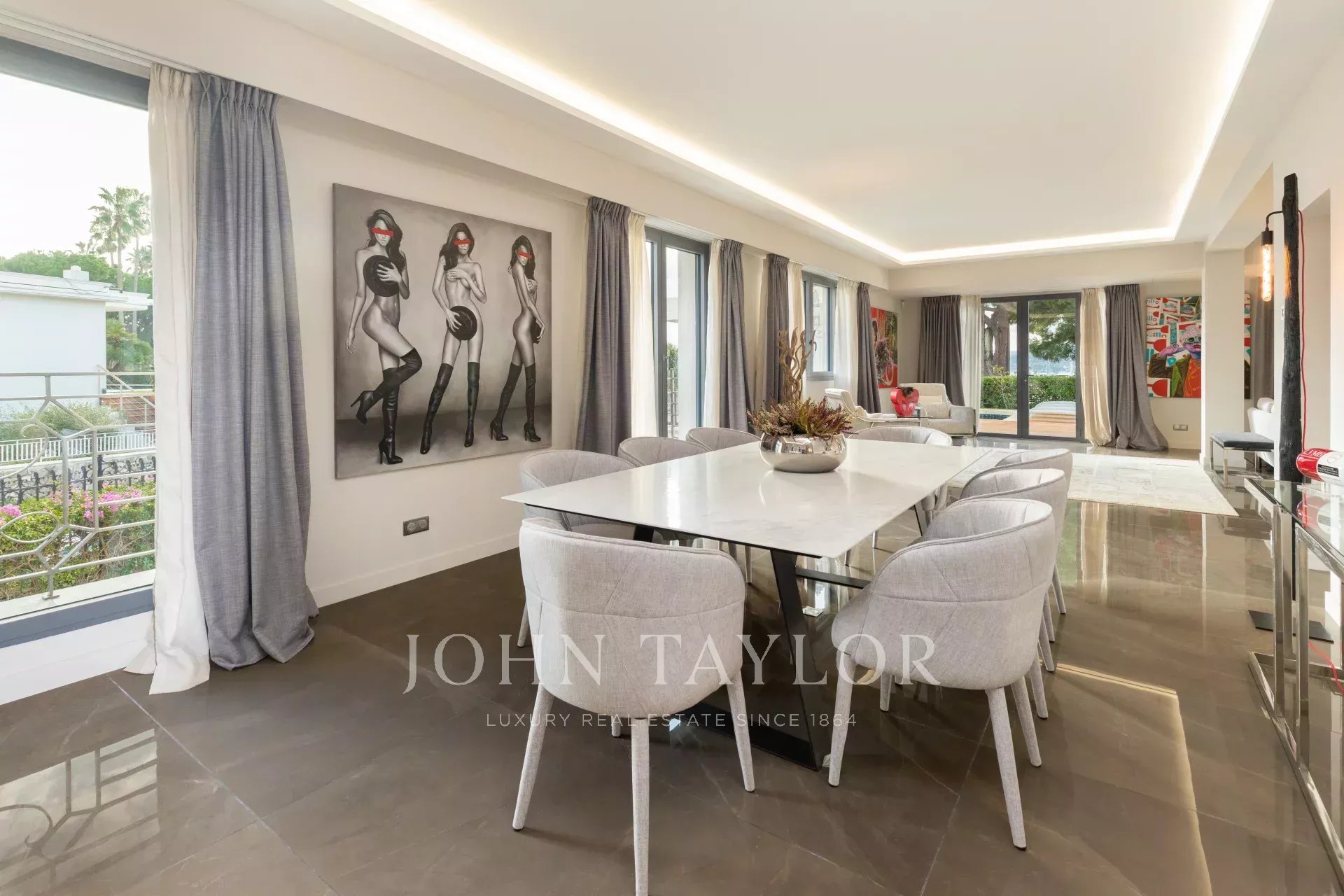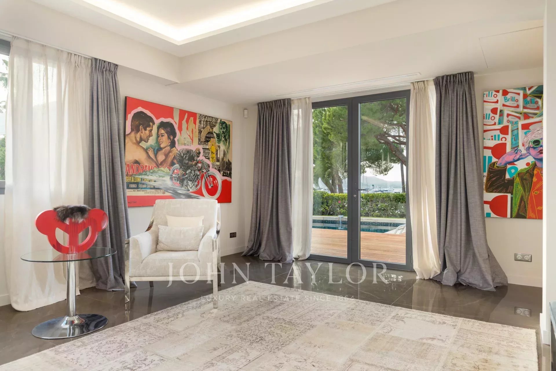 A pochi passi dalle spiagge e dal Port Canto e vicino al centro di Cannes, la villa vanta decorazioni e caratteristiche di alto livello.