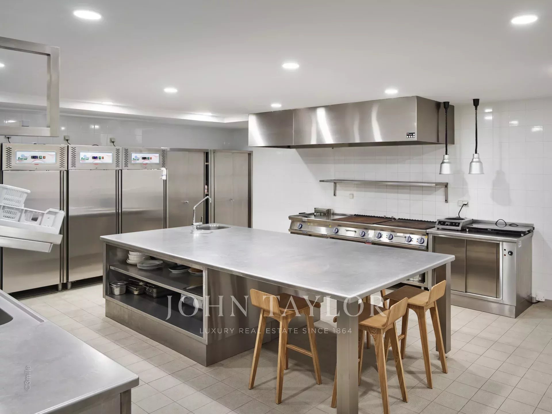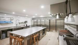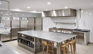 Il piano interrato ospita una lavanderia, una cucina professionale e l'accesso al parcheggio interno con due posti auto dedicati.
