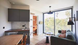 Il padiglione per gli ospiti comprende due camere con bagno al piano terra, con accesso al parcheggio interno e una reception, mentre il primo piano è riservato al personale, con soggiorno, cucina, due camere e bagno.