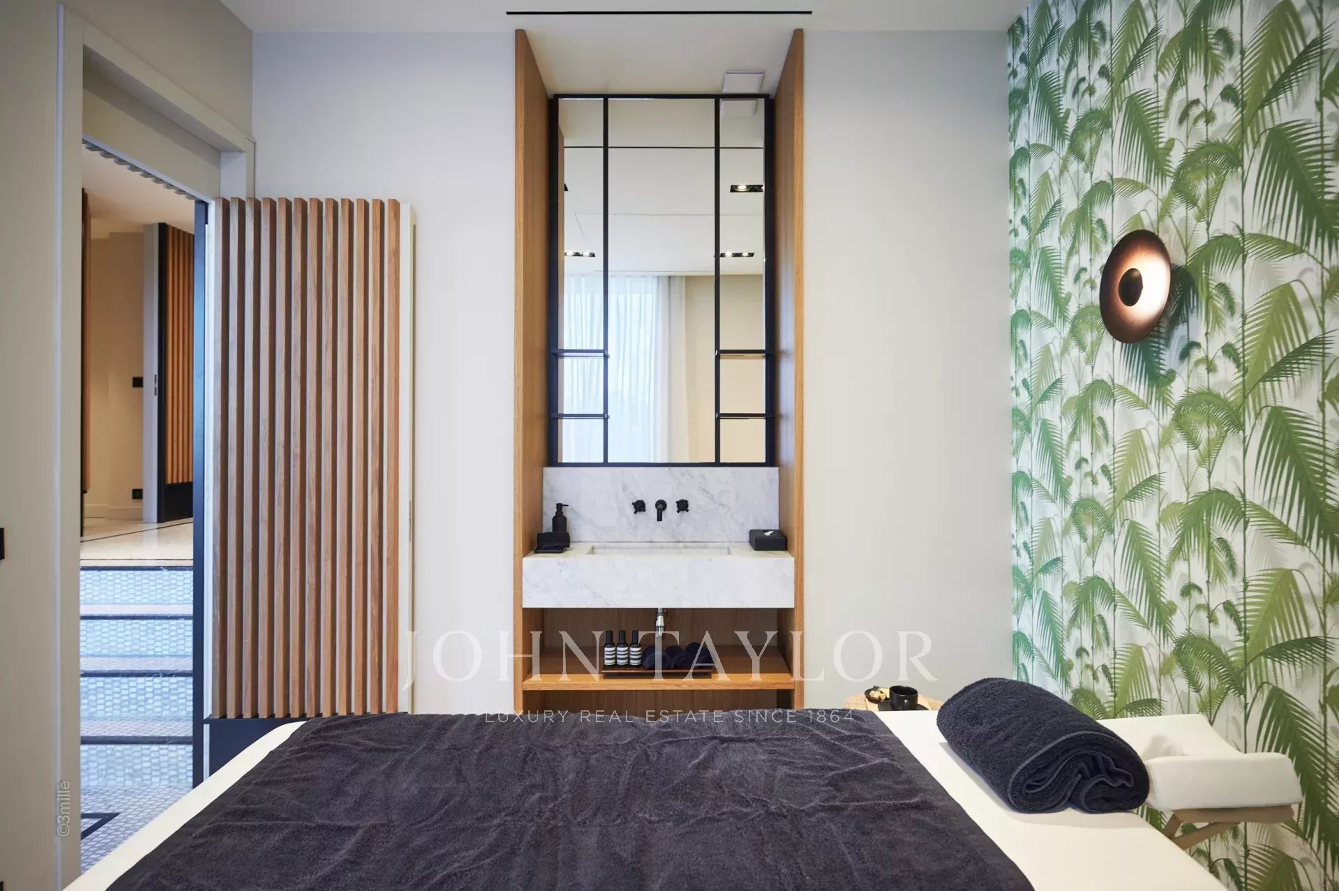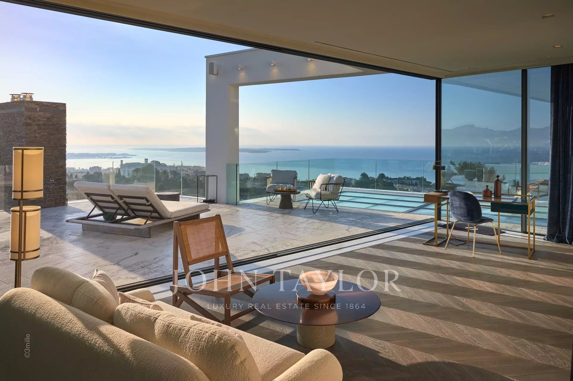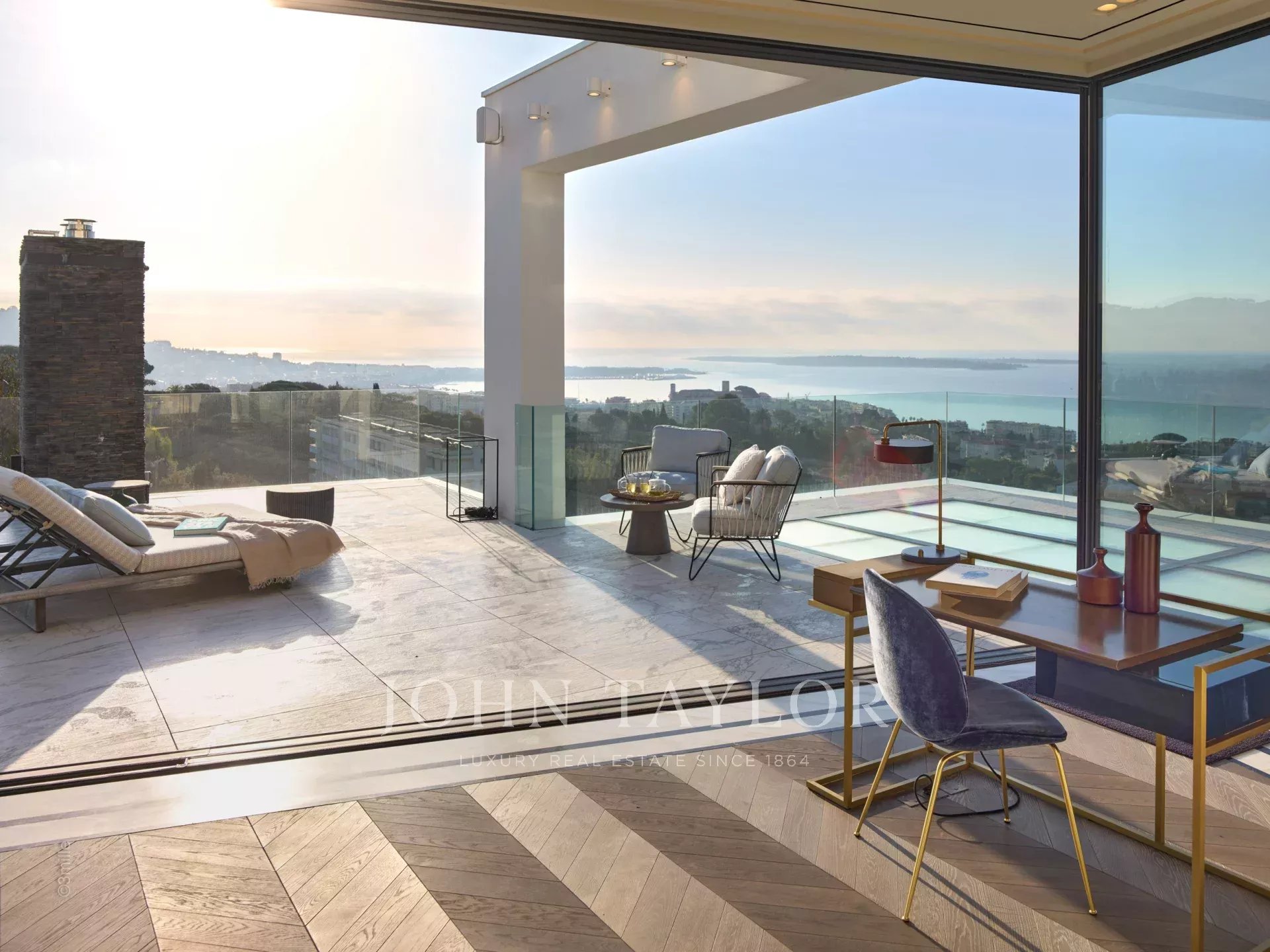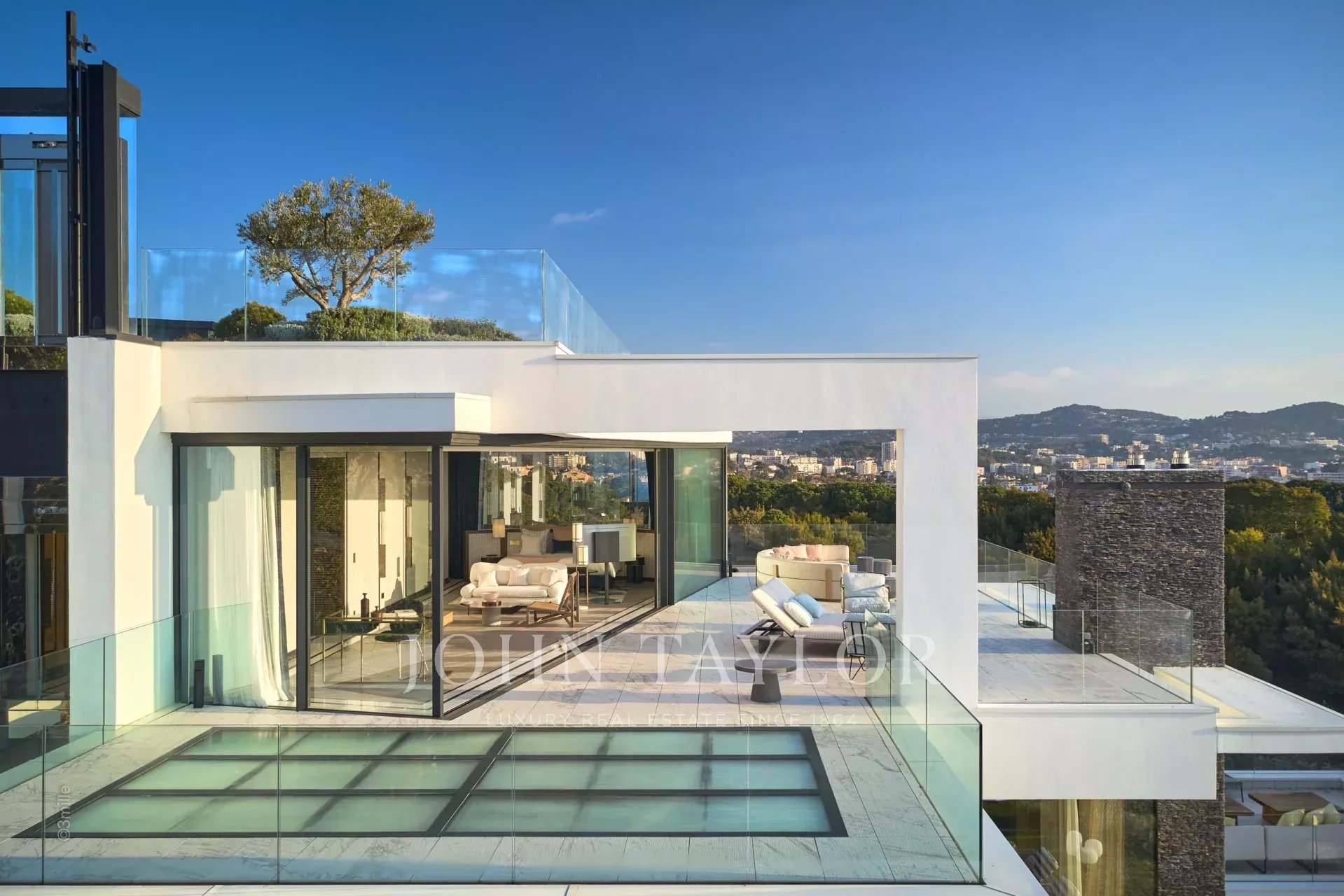 Il tetto offre una vista panoramica mozzafiato sulla baia di Cannes, Le Suquet e le Iles de Lérins, mentre le strutture interne includono un hammam, una sauna, una vasca idromassaggio riscaldata, una sala fitness, una sala proiezioni/cinema, un acquario, un ascensore panoramico, due camini, una lavanderia completamente attrezzata, due cucine (di cui una professionale), una linea internet dedicata, iPad a disposizione, un sistema di altoparlanti centralizzato, videosorveglianza e allarme per una tranquillità assoluta.