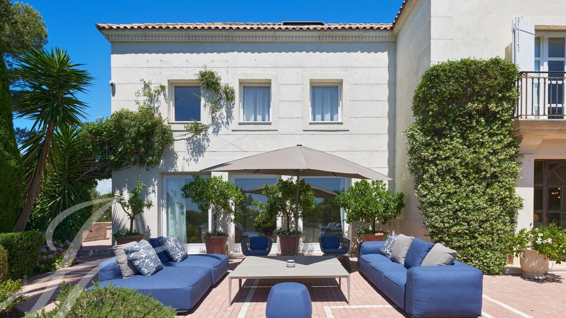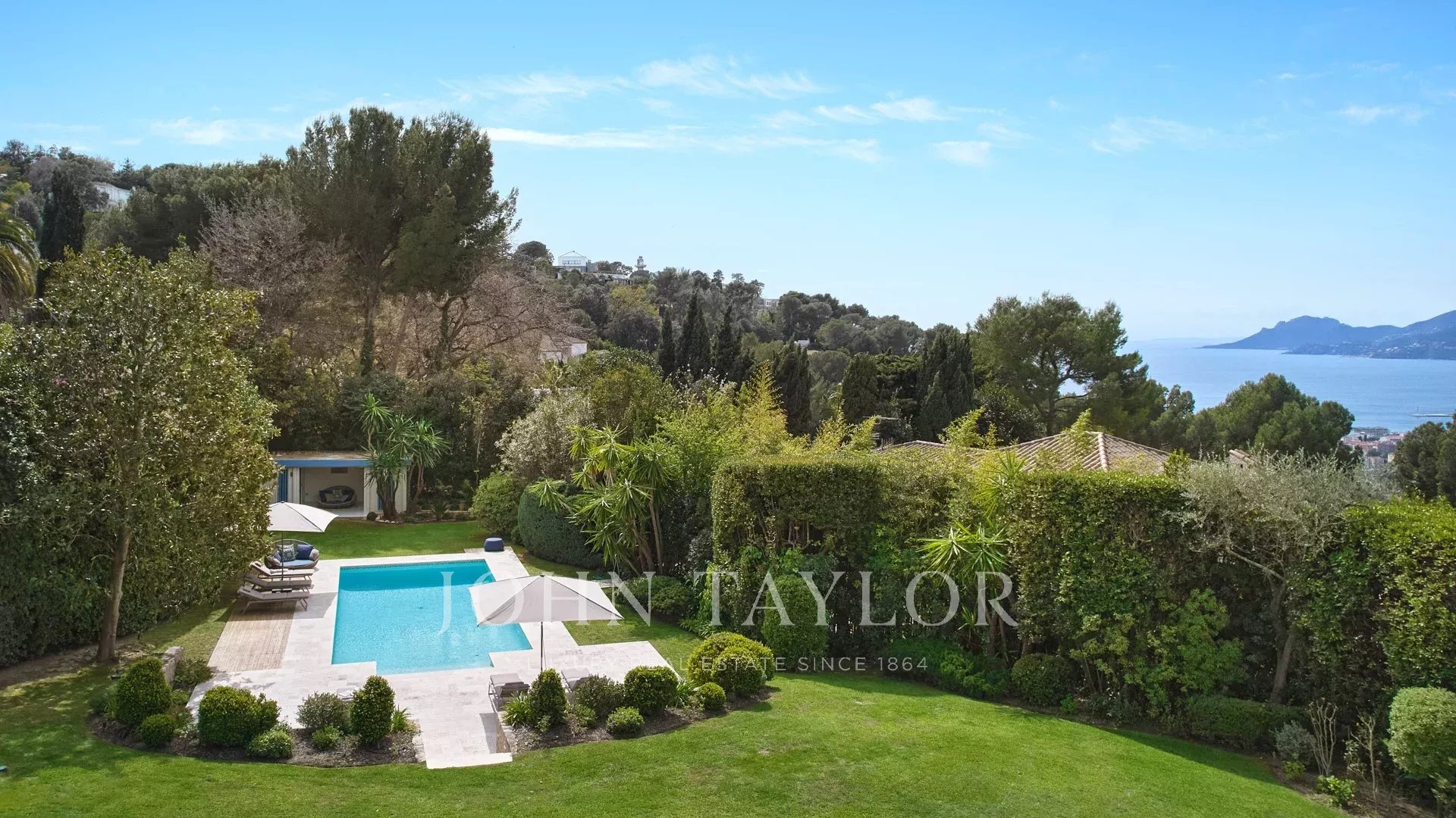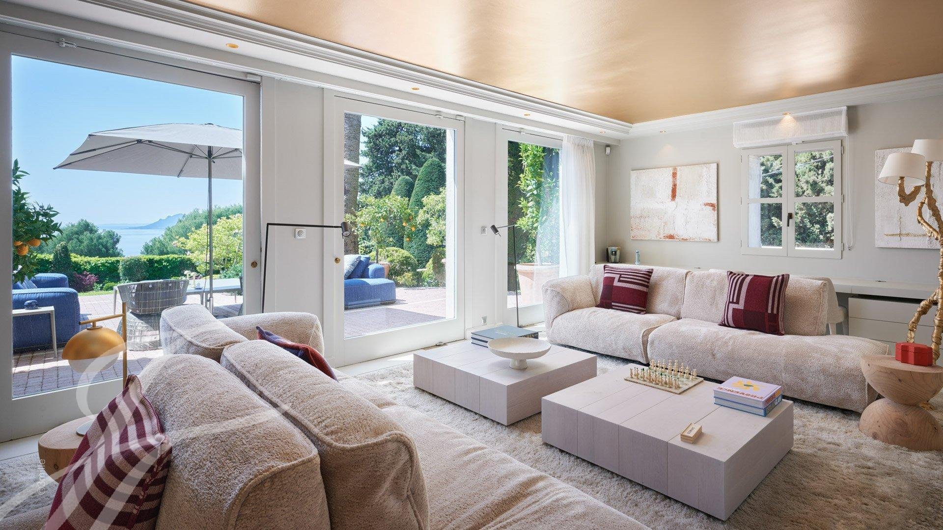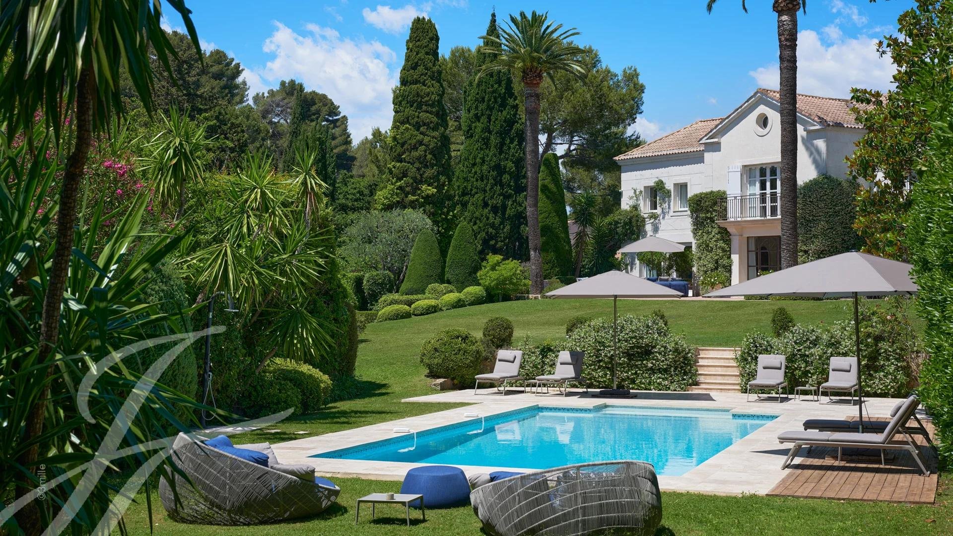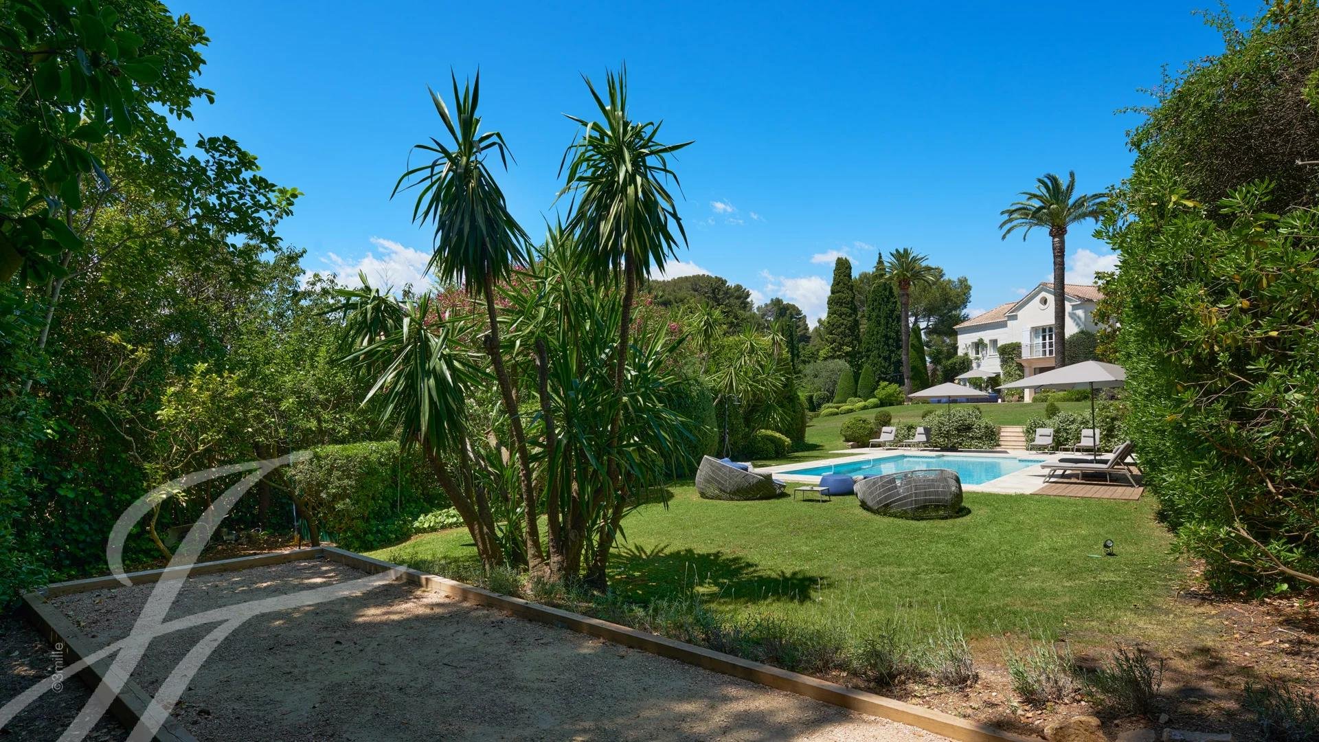 Immersa in 2.100 m2 di giardino, questa superba villa vanta 378 m2 di spazio abitabile, esposizione a sud-ovest e vista sul mare della baia di Cannes e sul Massiccio dell'Estérel.
