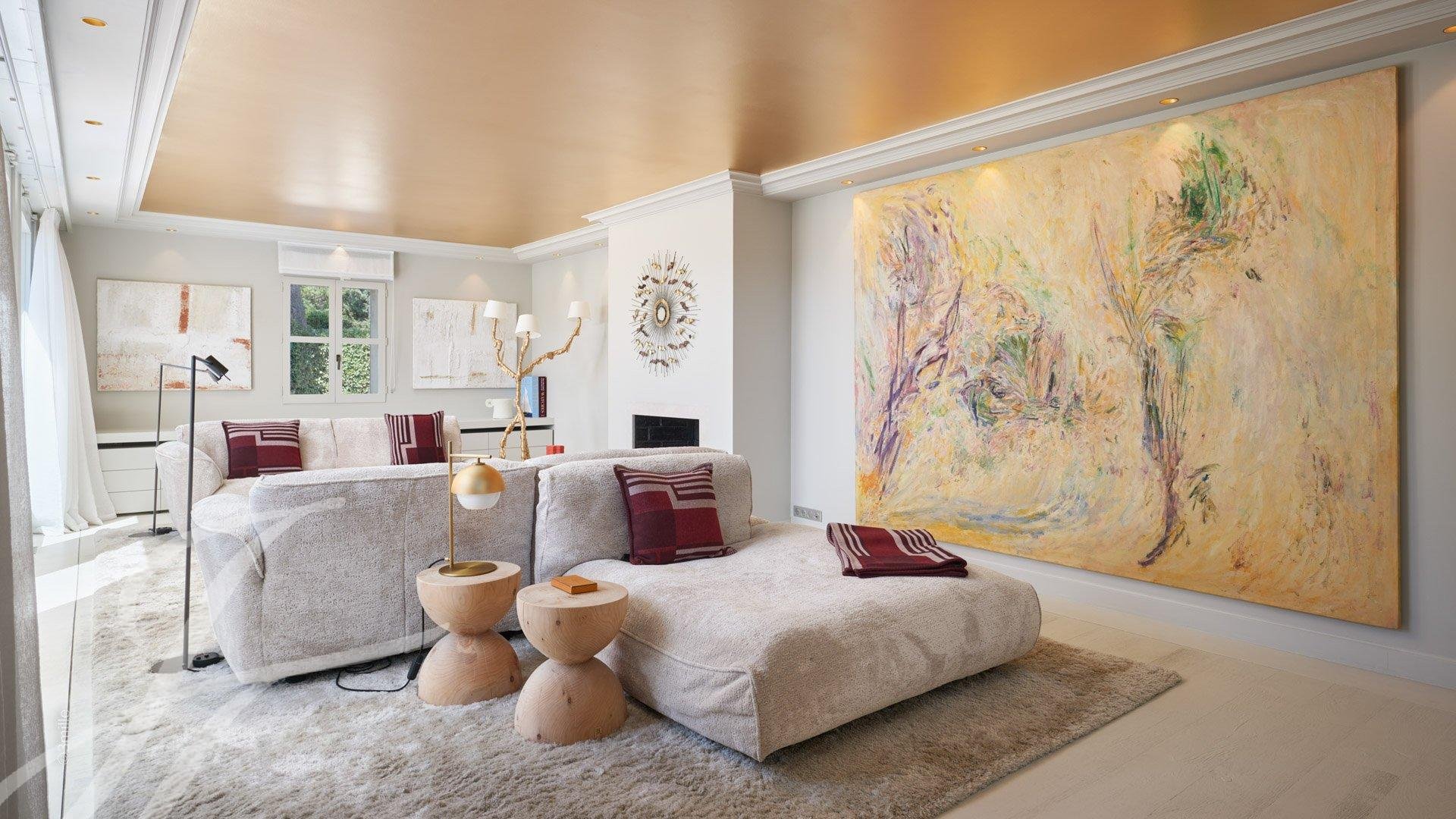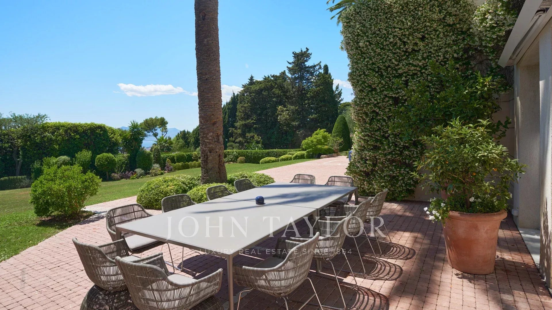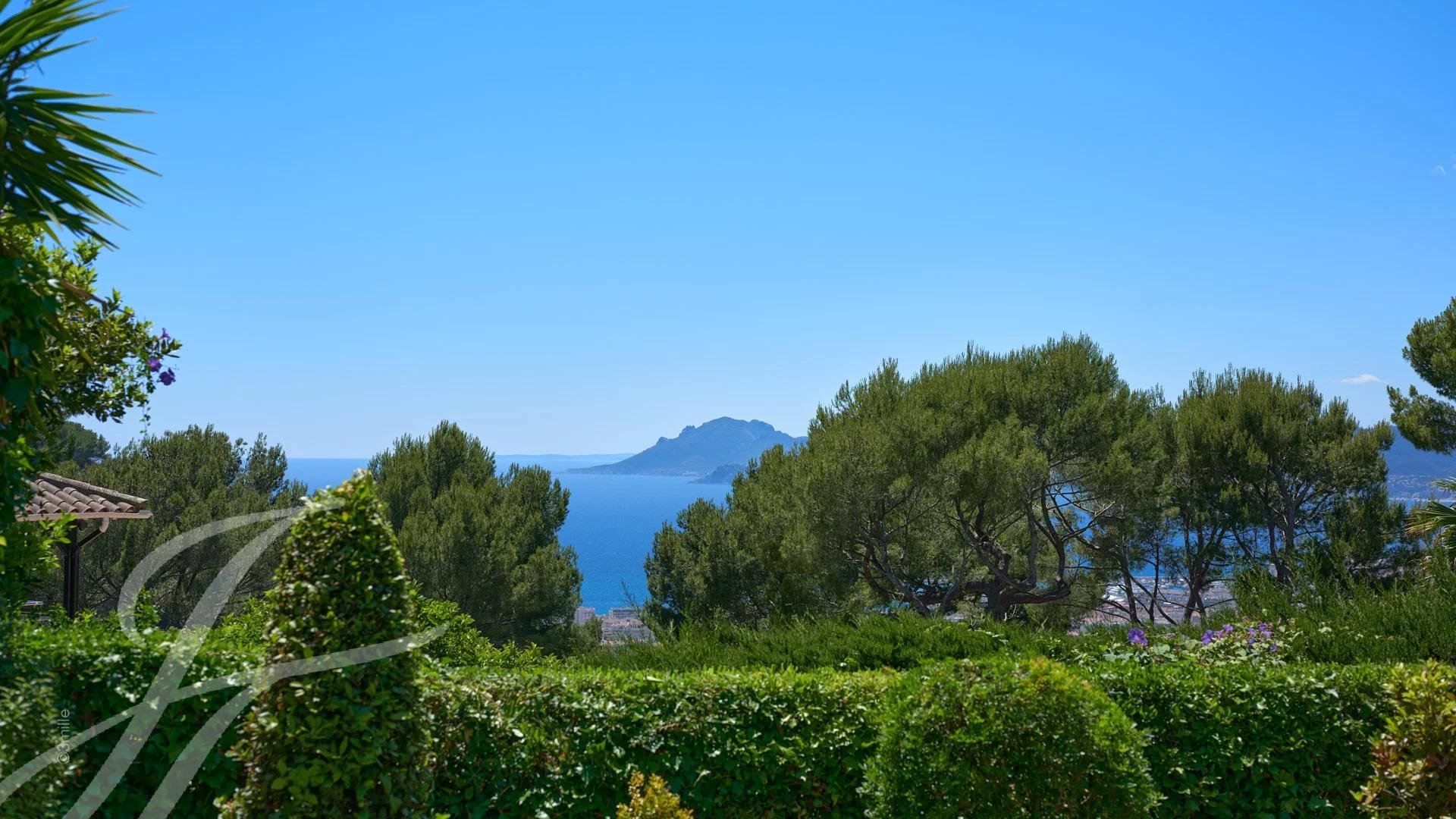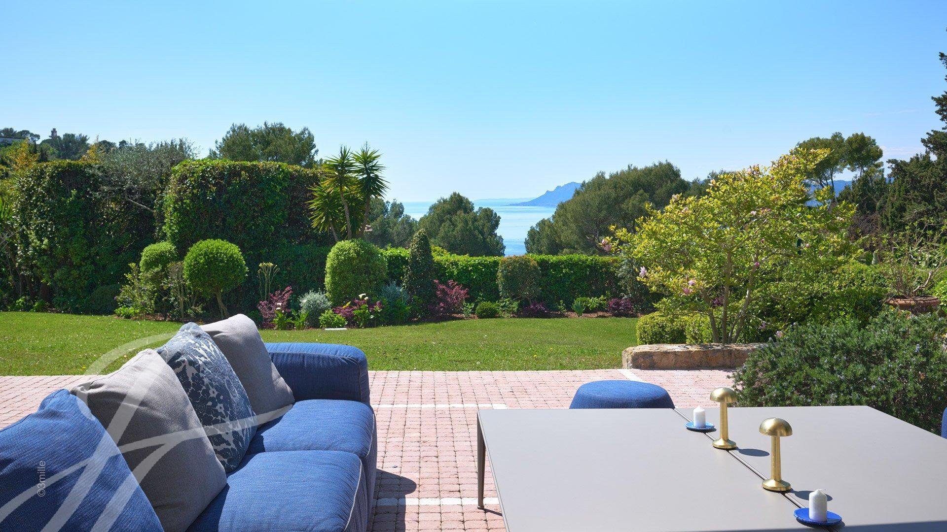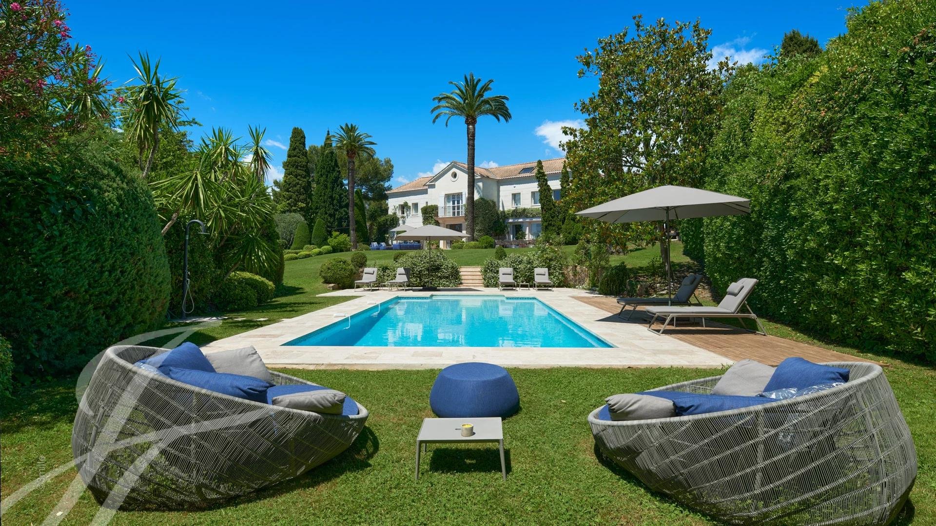 Immersa in 2.100 m2 di giardino, questa superba villa vanta 378 m2 di spazio abitabile, esposizione a sud-ovest e vista sul mare della baia di Cannes e sul Massiccio dell'Estérel.
