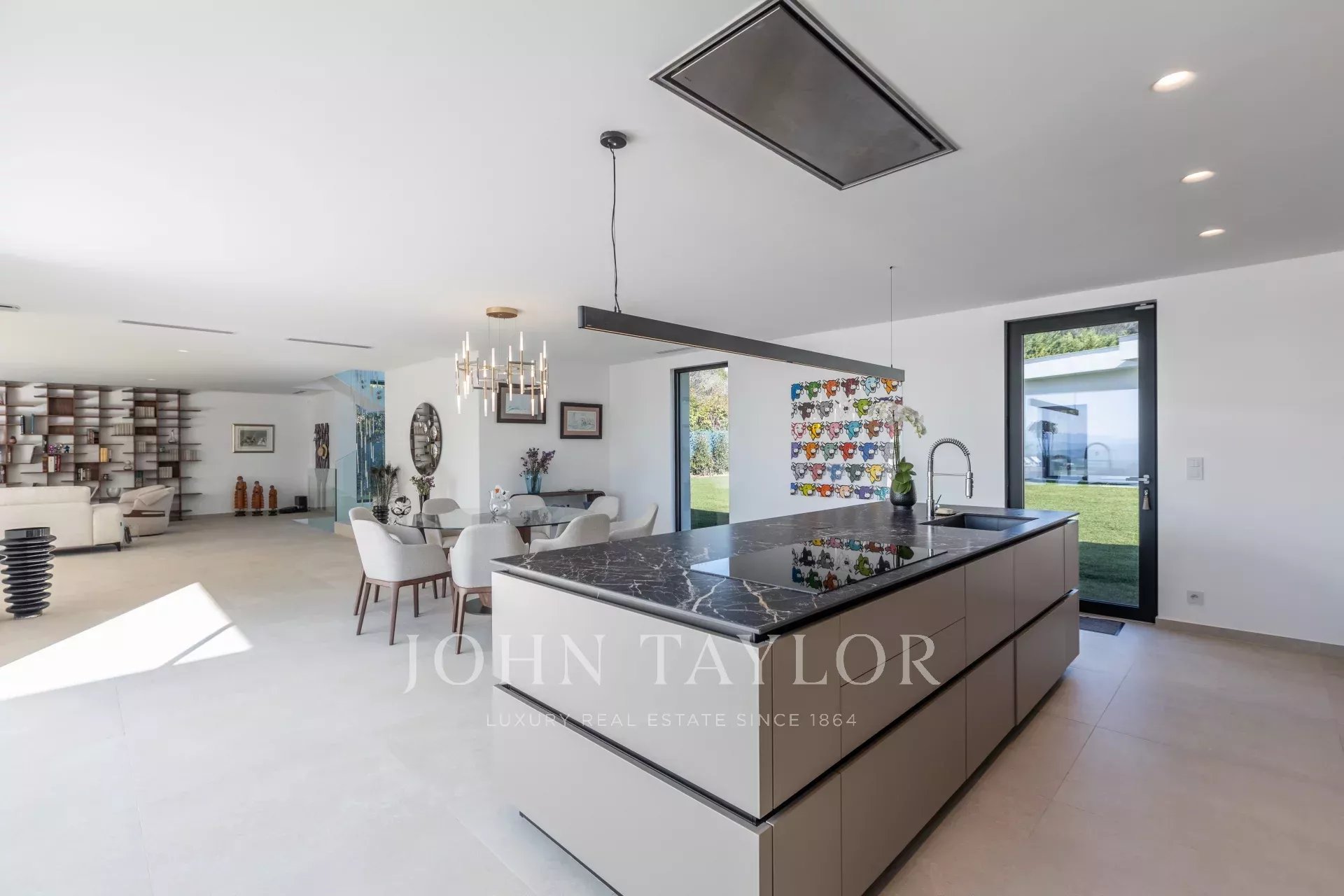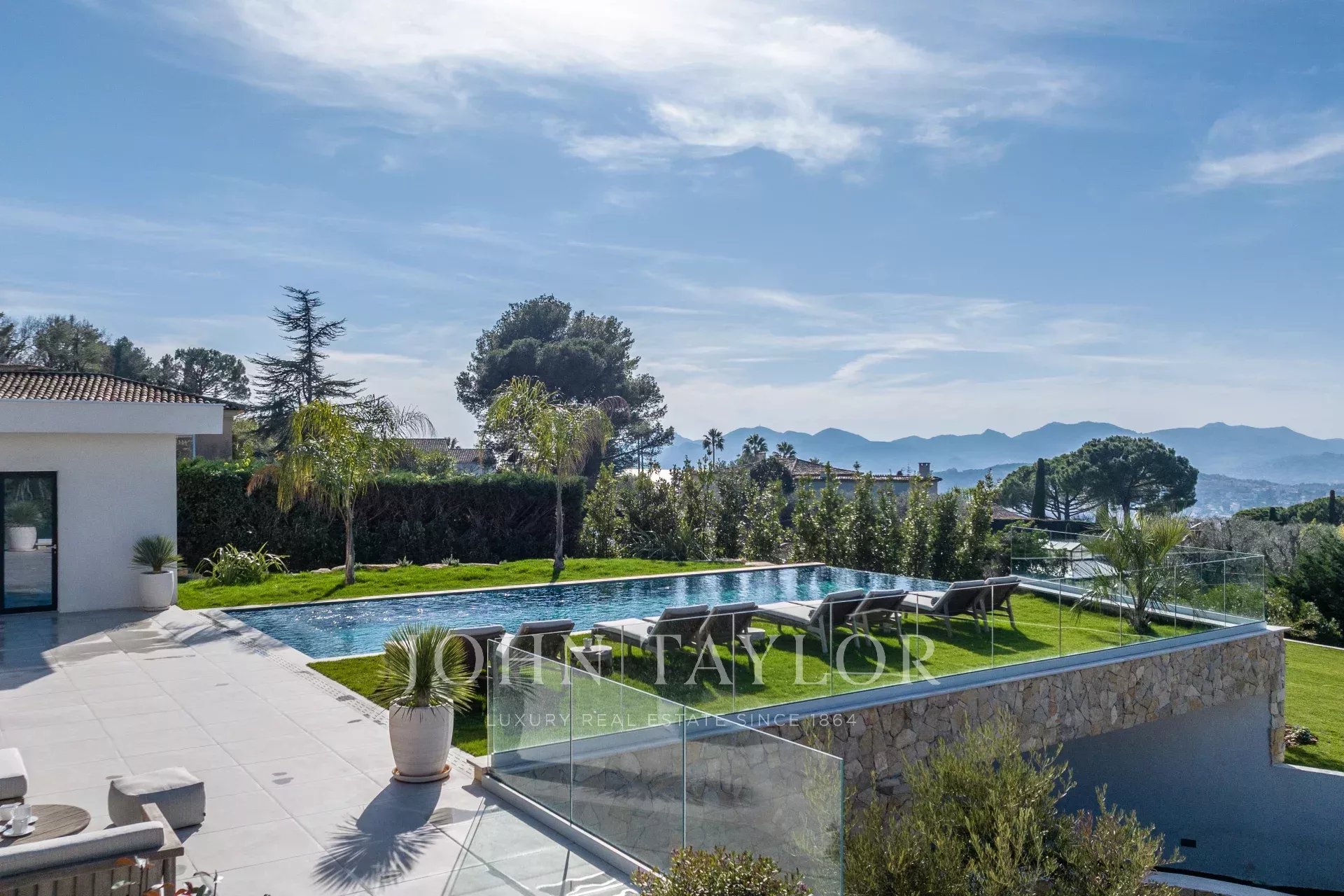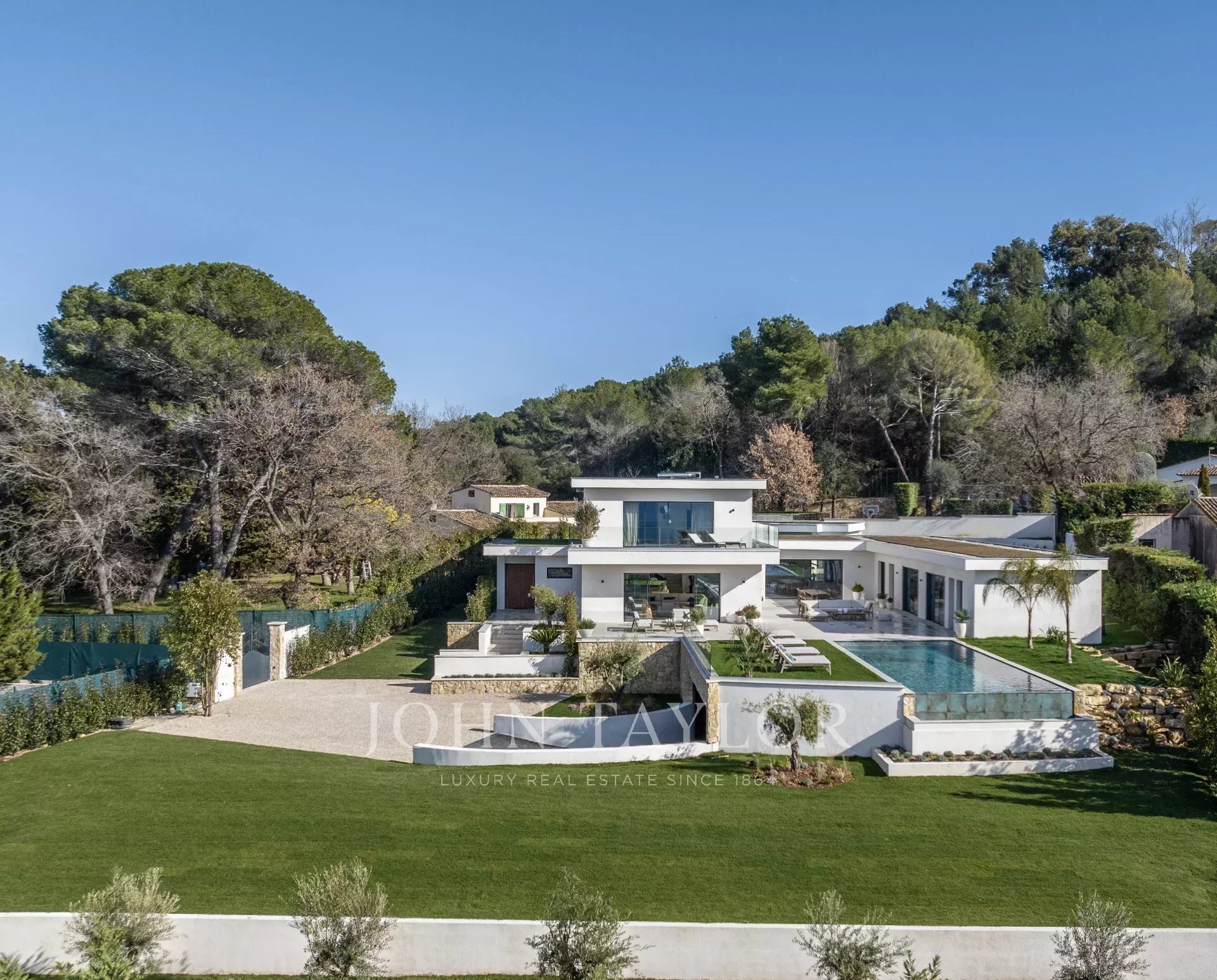 In una posizione tranquilla a soli 10 minuti da La Croisette, con incantevoli viste panoramiche sulle colline circostanti, questa spaziosa proprietà nuova in stile contemporaneo offre una superficie totale di 861 m² su 3.080 m² di terreno con piscina riscaldata.
