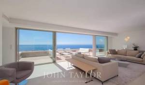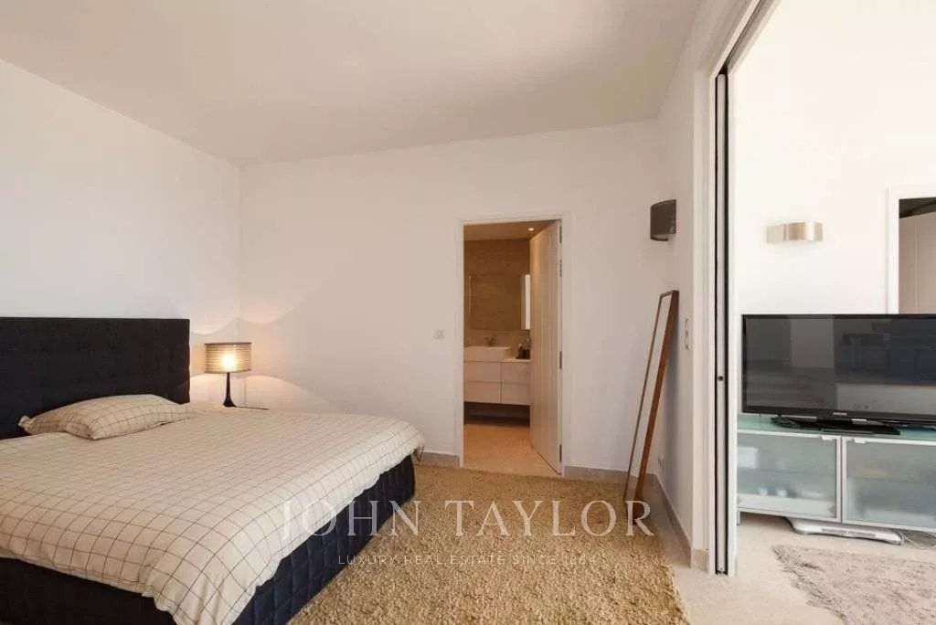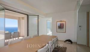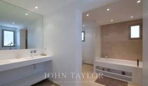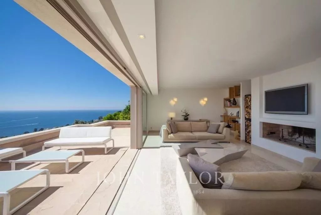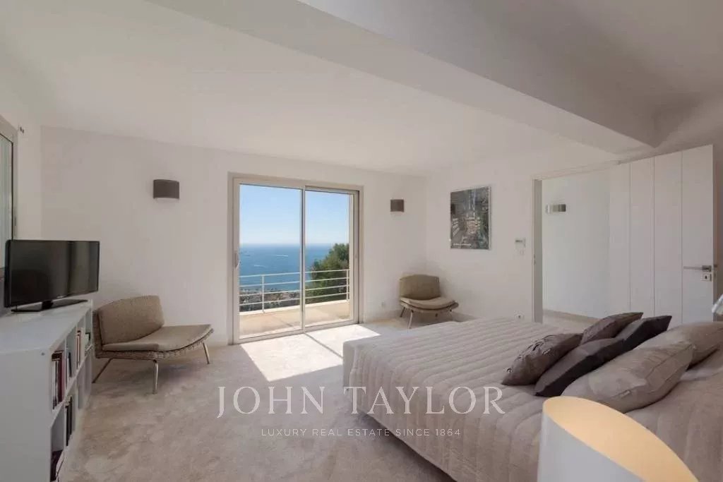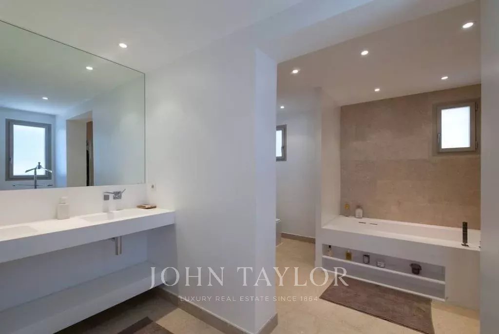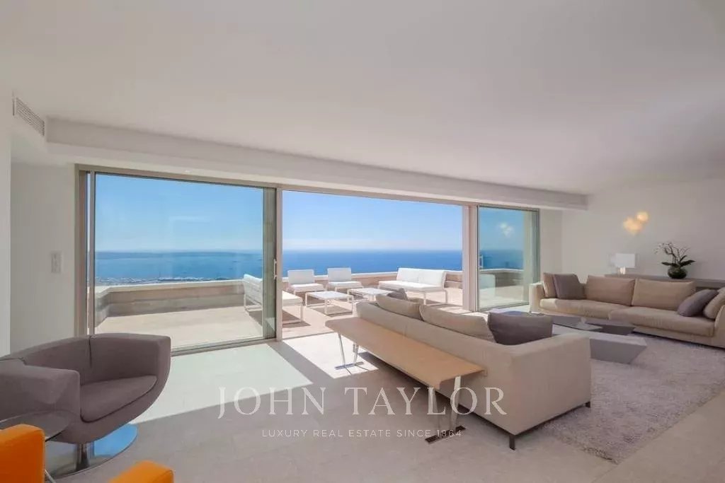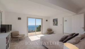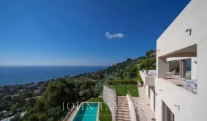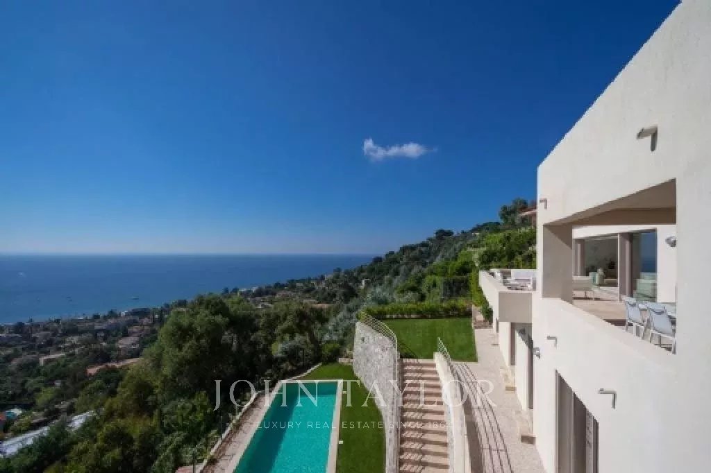 Sulle alture di Cannes, nel cuore di un giardino di 2.000 m2 esposto a sud-est, superba villa in stile contemporaneo, completamente ristrutturata e climatizzata, con magnifica vista sul mare fino a Cap d'Antibes.