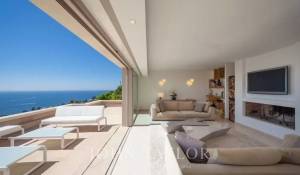 Ingresso che conduce alla grande sala di ricevimento con soggiorno e sala da pranzo, aperta sulla terrazza con vista sul mare.