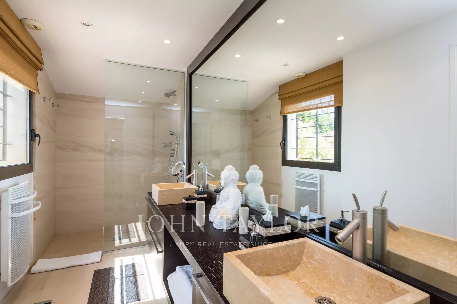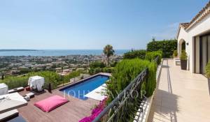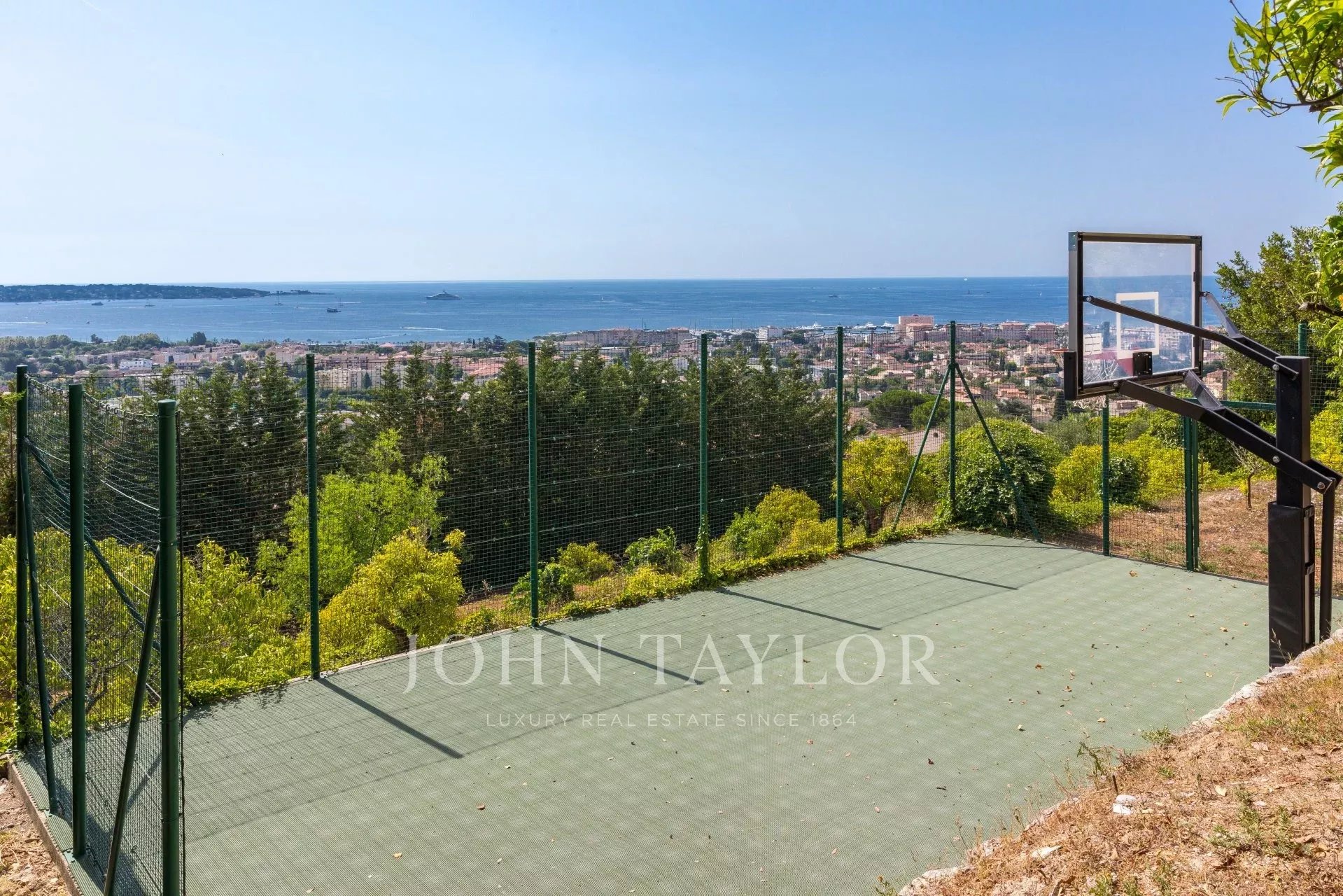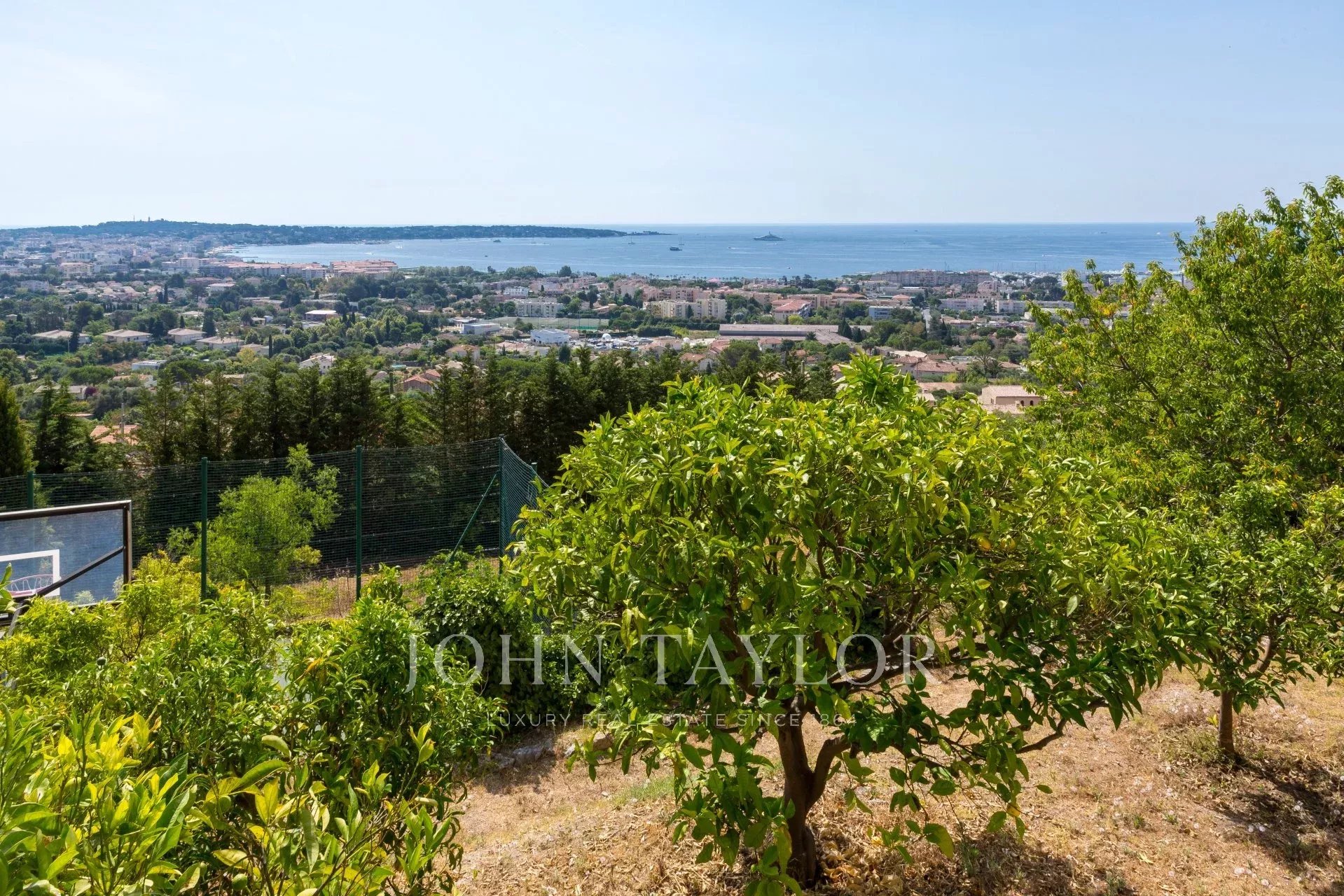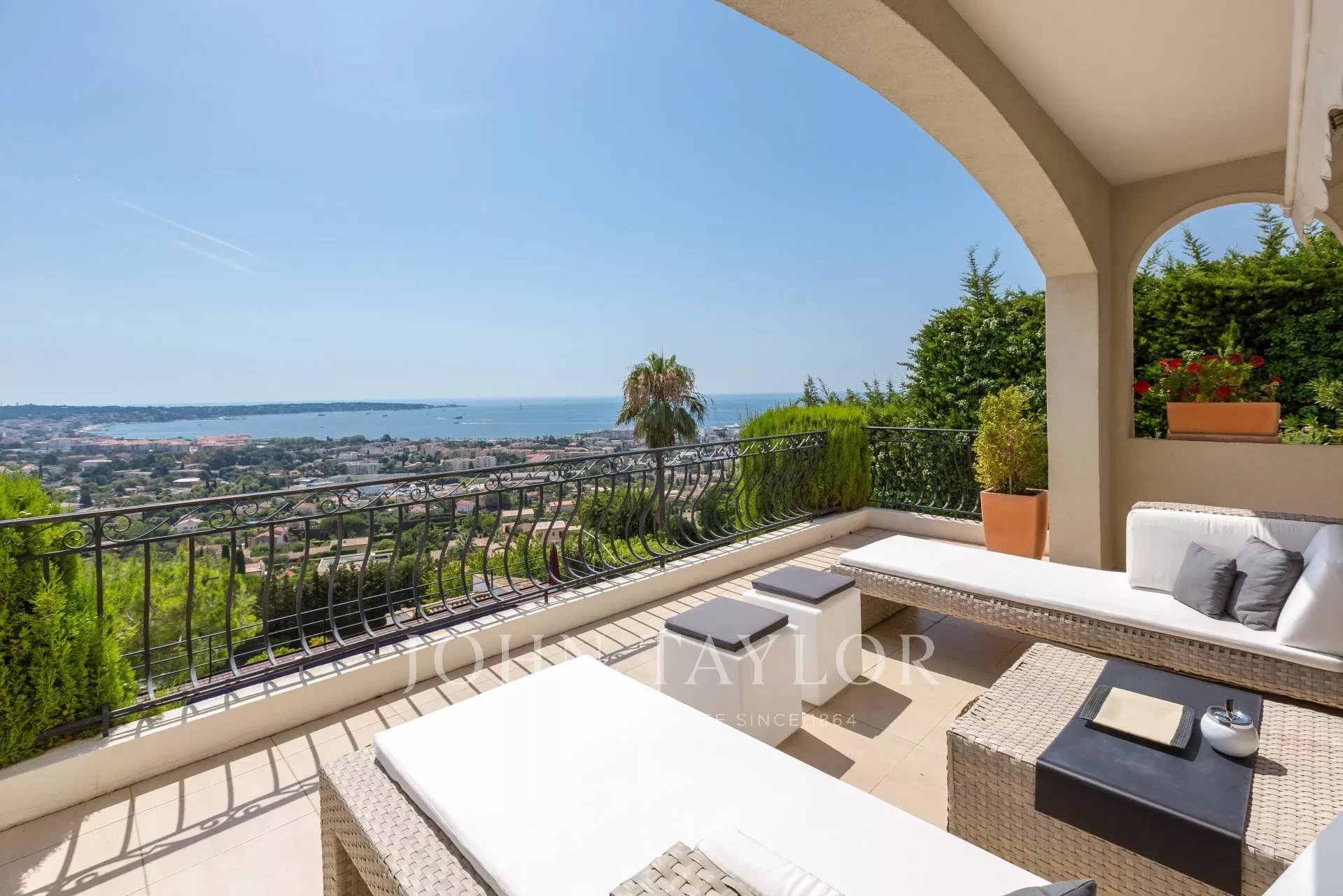 Sulle alture di Golfe-Juan, nel cuore di un giardino paesaggistico di circa 3.000 m², questa magnifica villa vanta caratteristiche contemporanee di alta qualità e un'eccezionale vista panoramica sul mare fino a Cap d'Antibes.