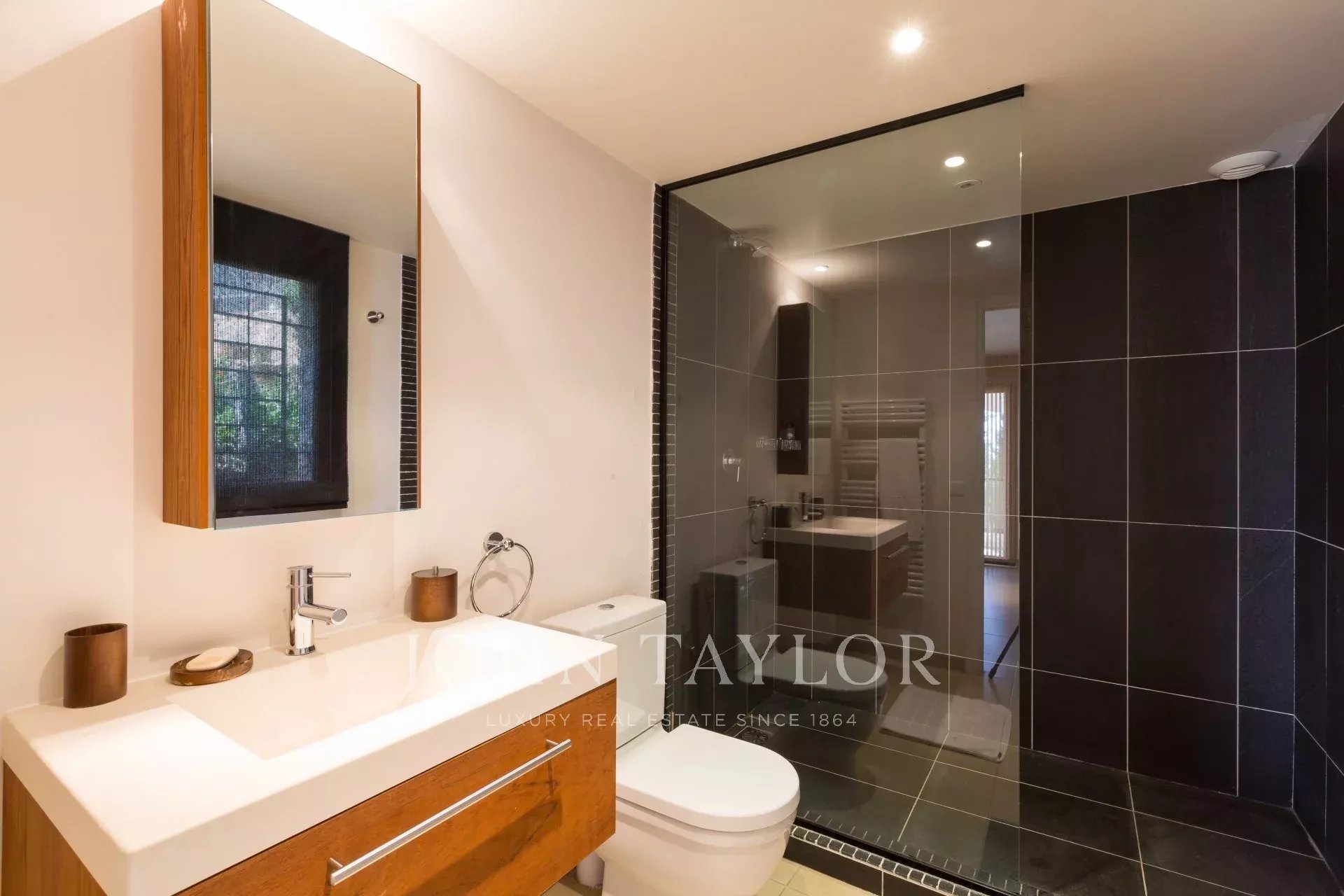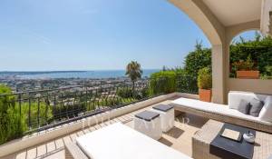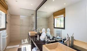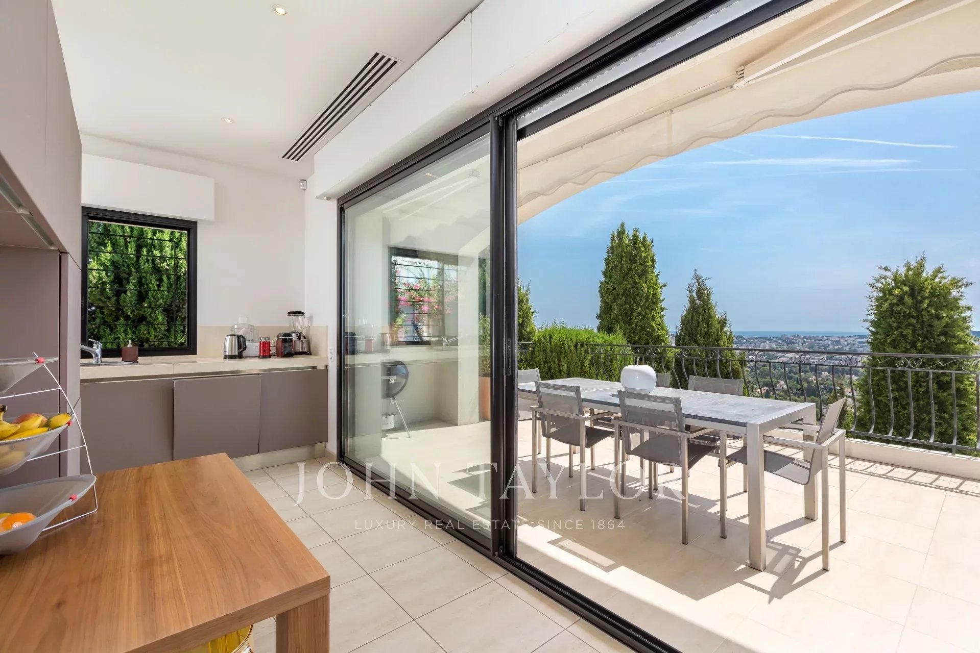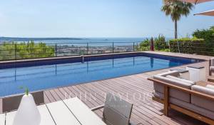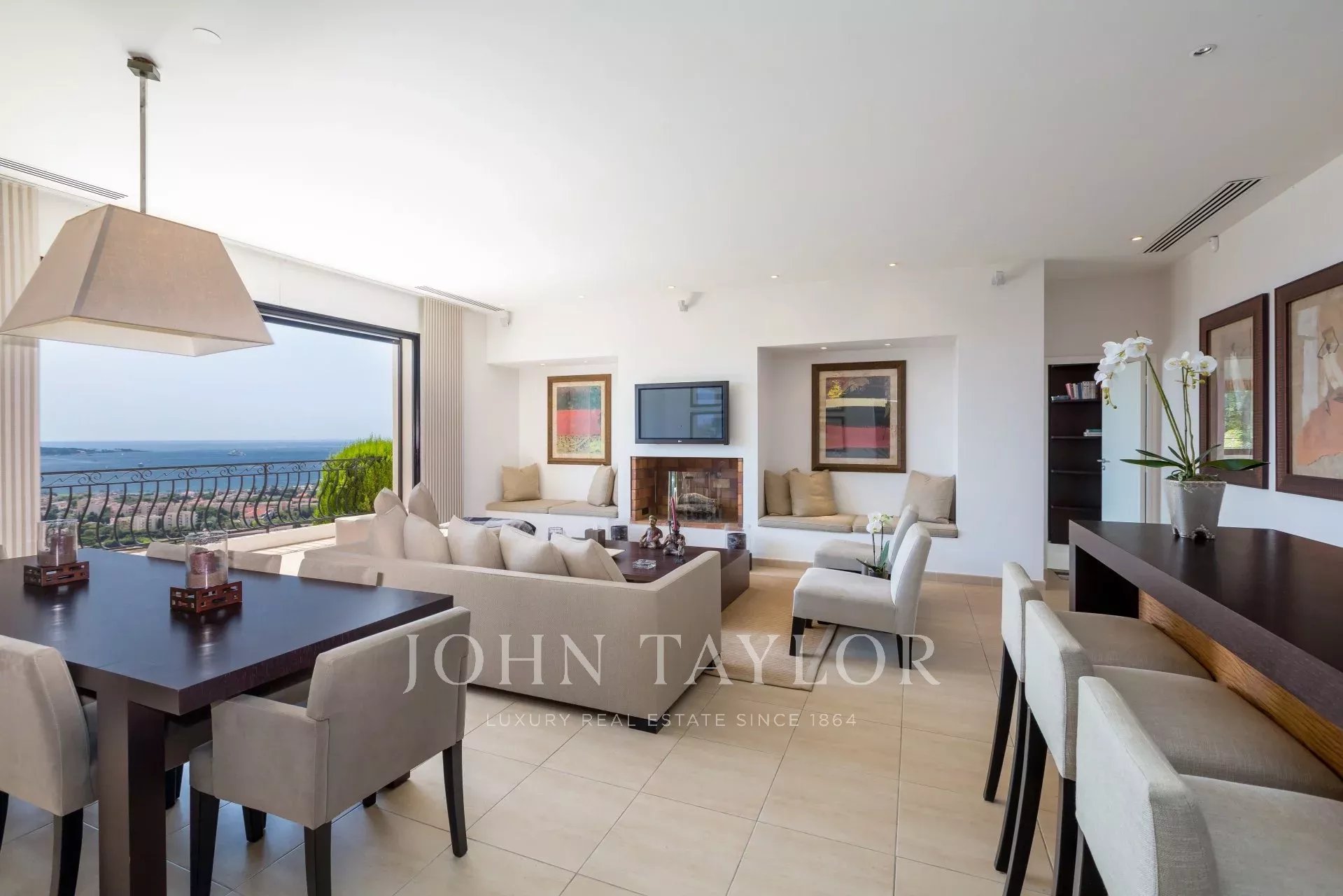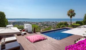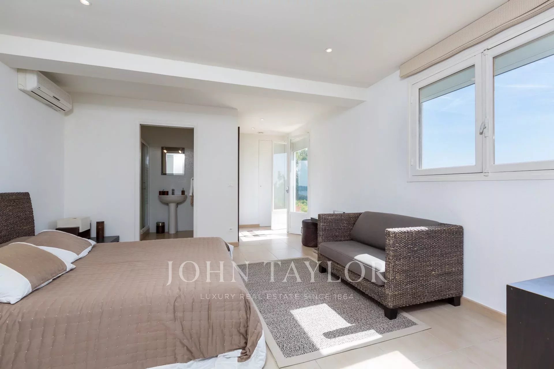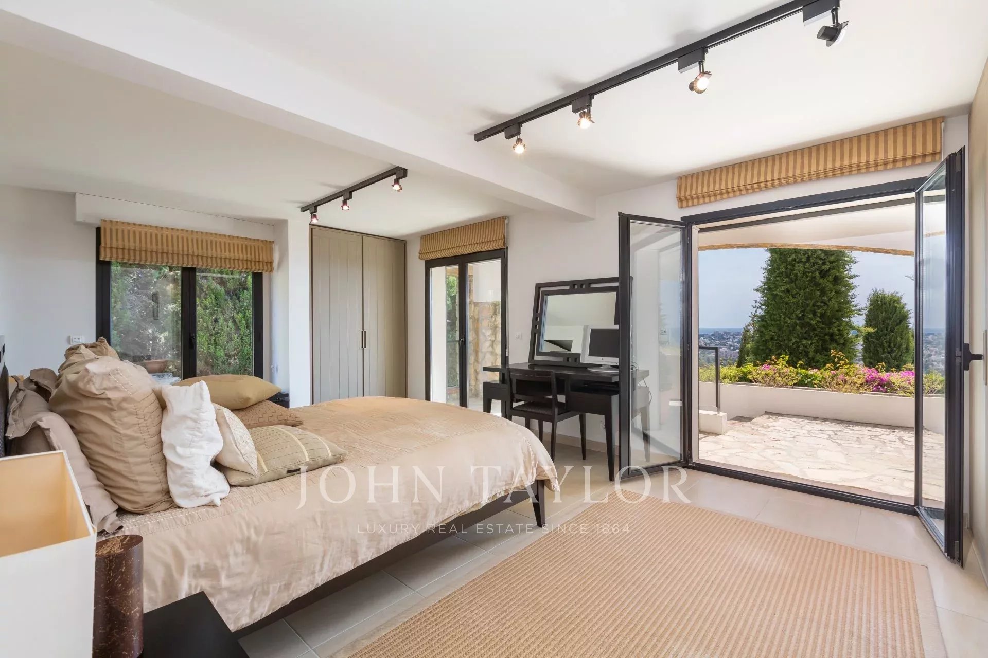 Sulle alture di Golfe-Juan, nel cuore di un giardino paesaggistico di circa 3.000 m², questa magnifica villa vanta caratteristiche contemporanee di alta qualità e un'eccezionale vista panoramica sul mare fino a Cap d'Antibes.