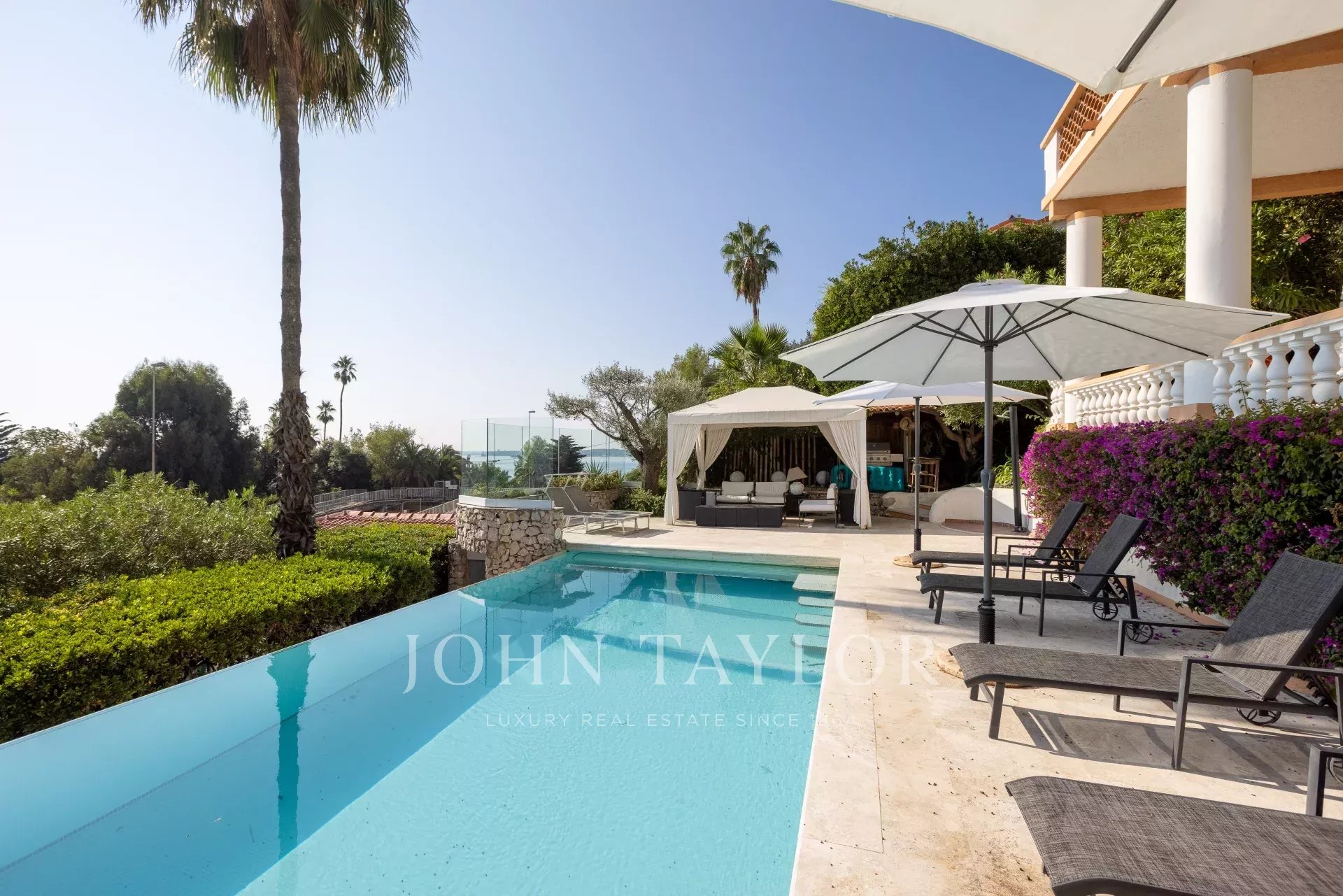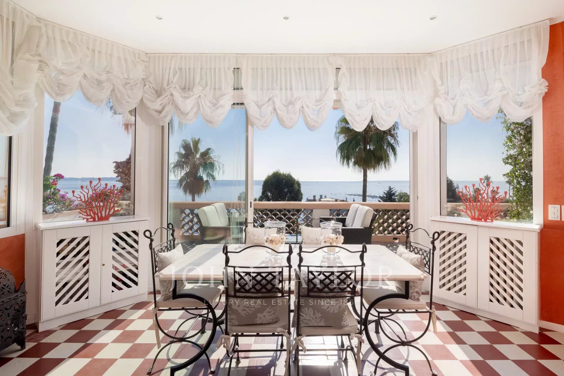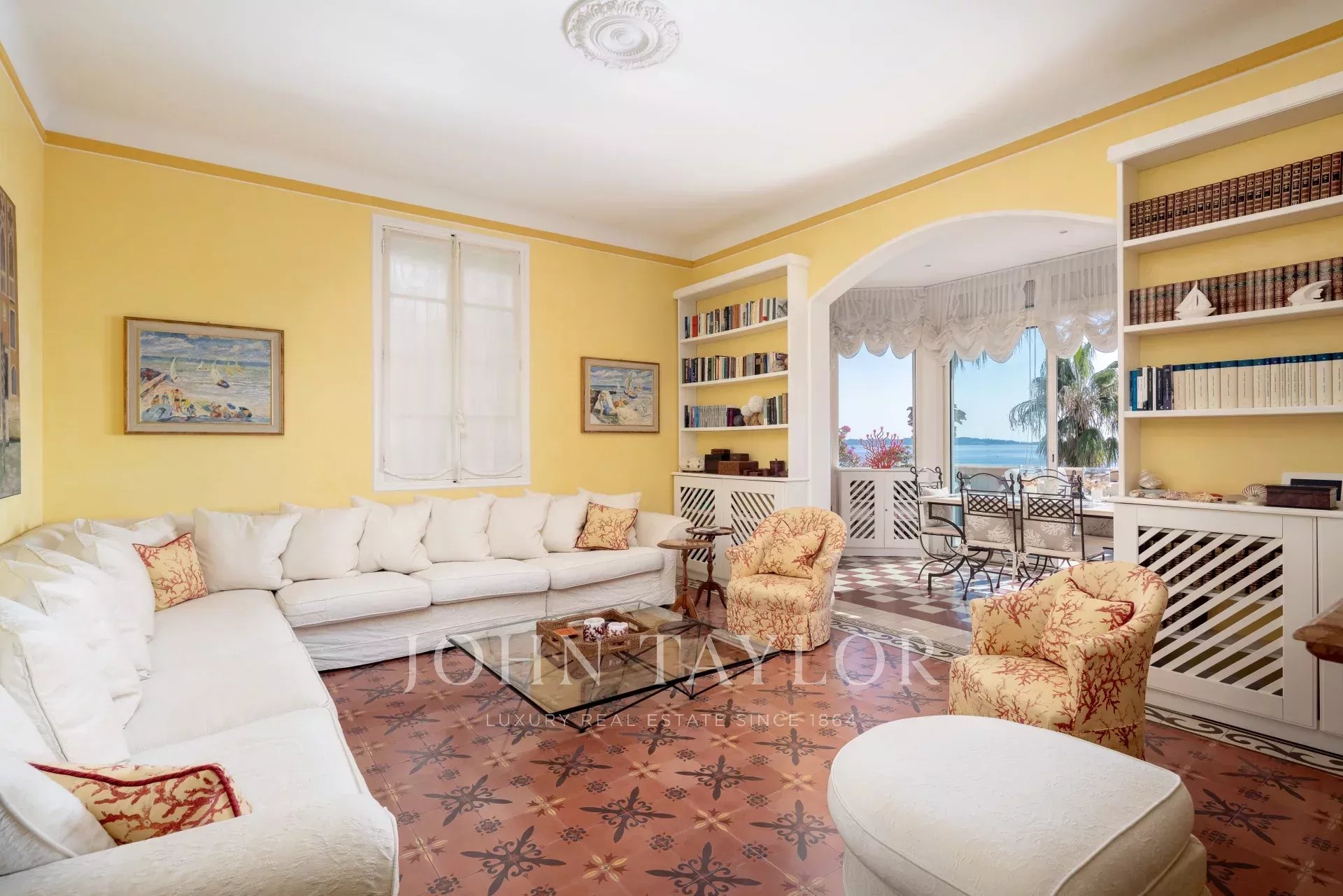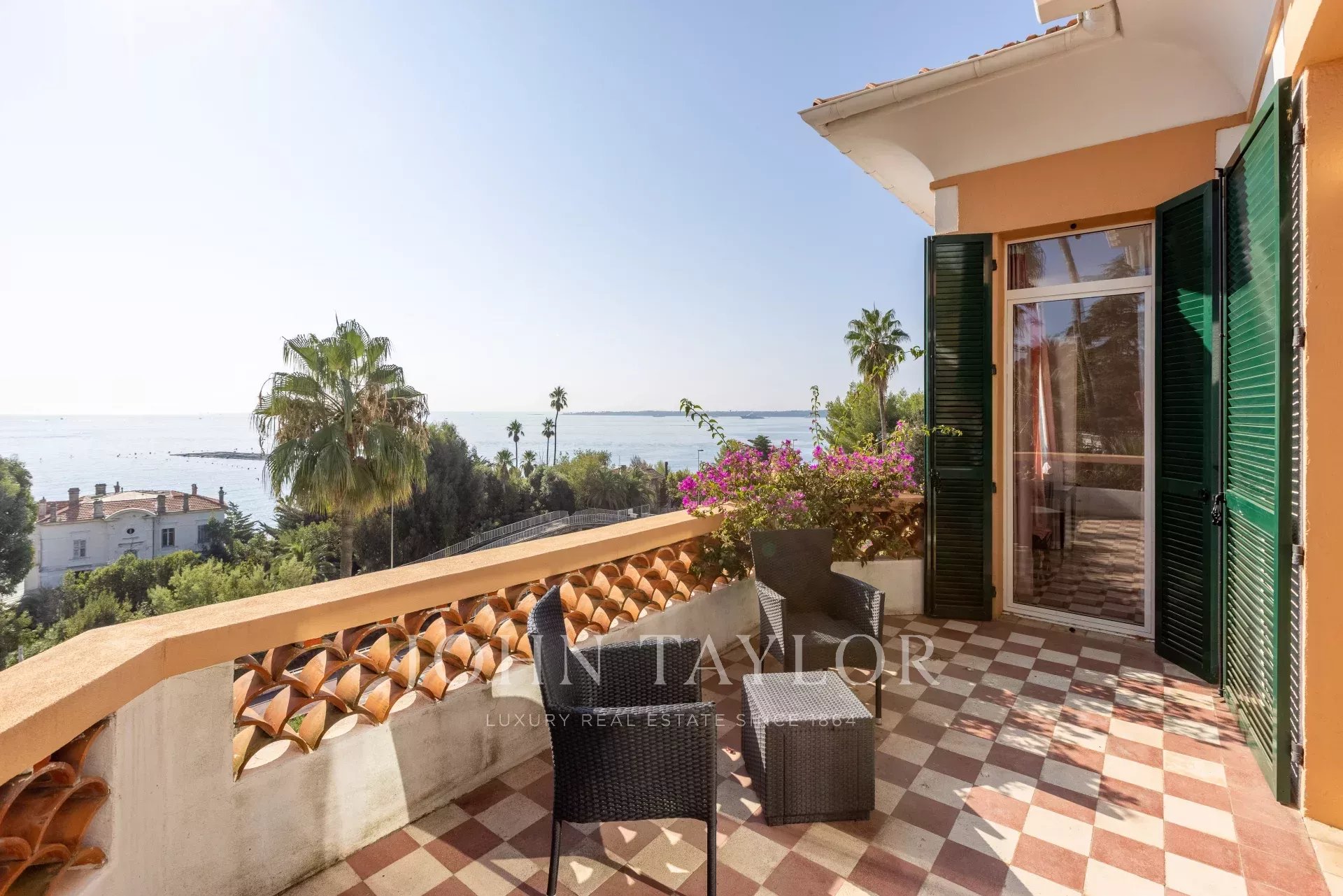 Vicino a Cannes e in posizione ideale sul lungomare, villa Belle Epoque immersa in un terreno paesaggistico di circa 1.000 m². Splendida vista sul mare e su Cap d'Antibes.