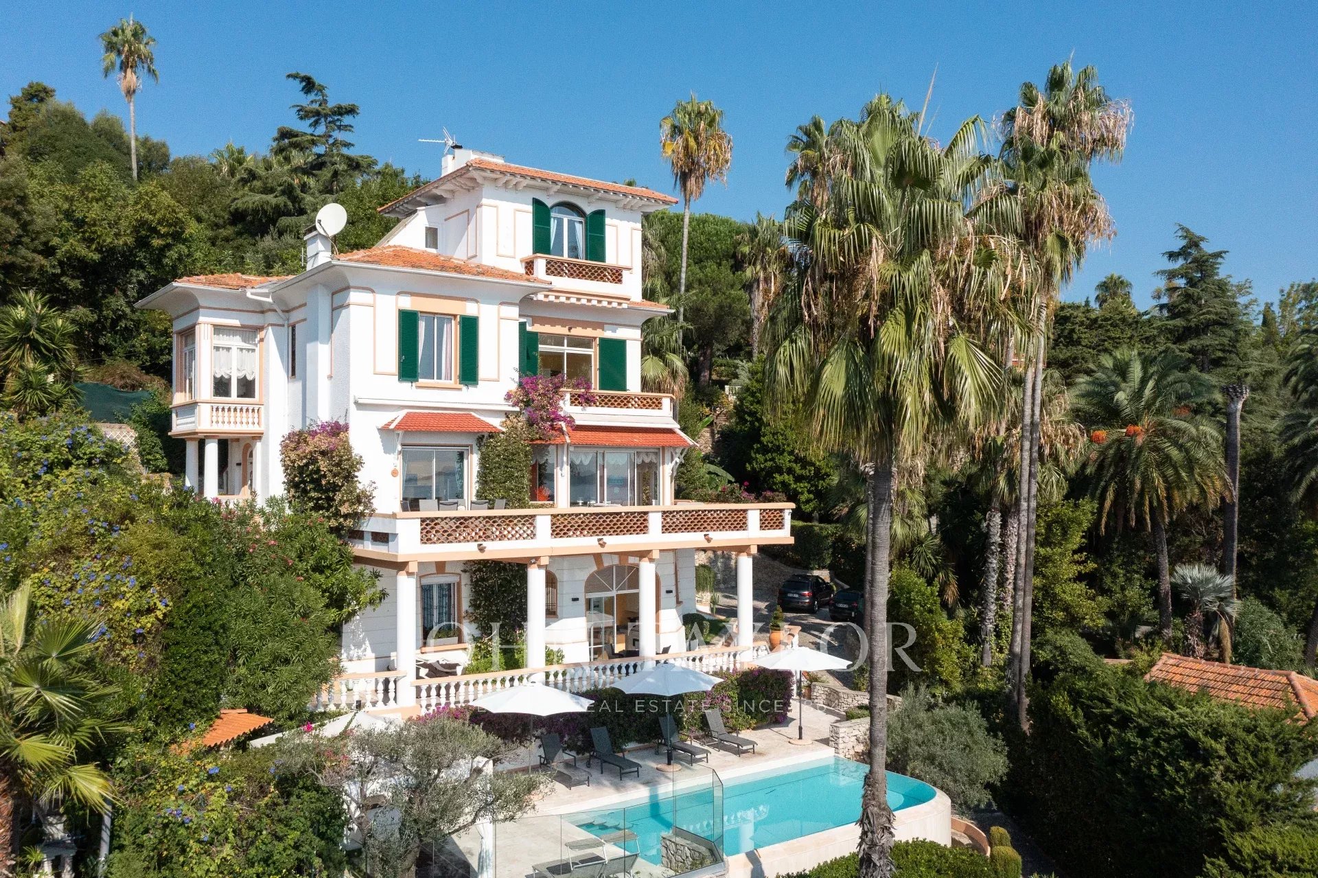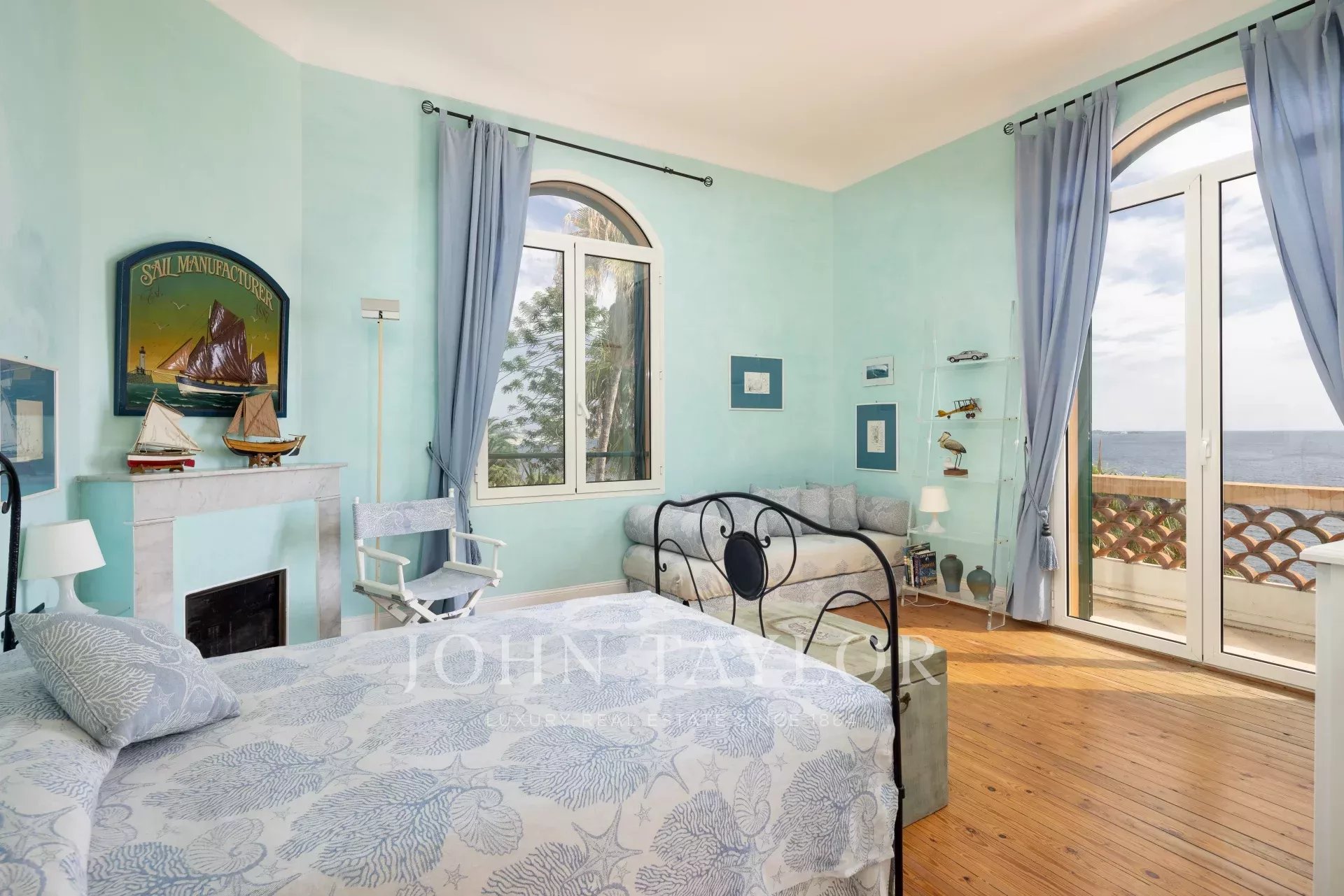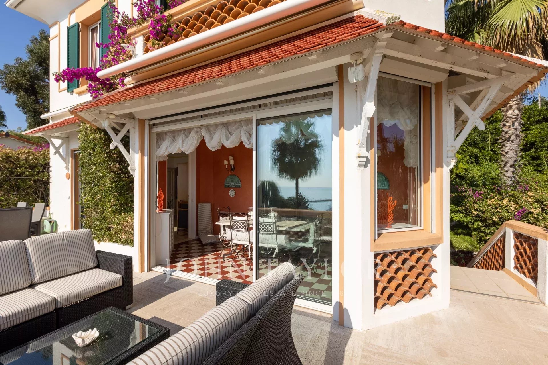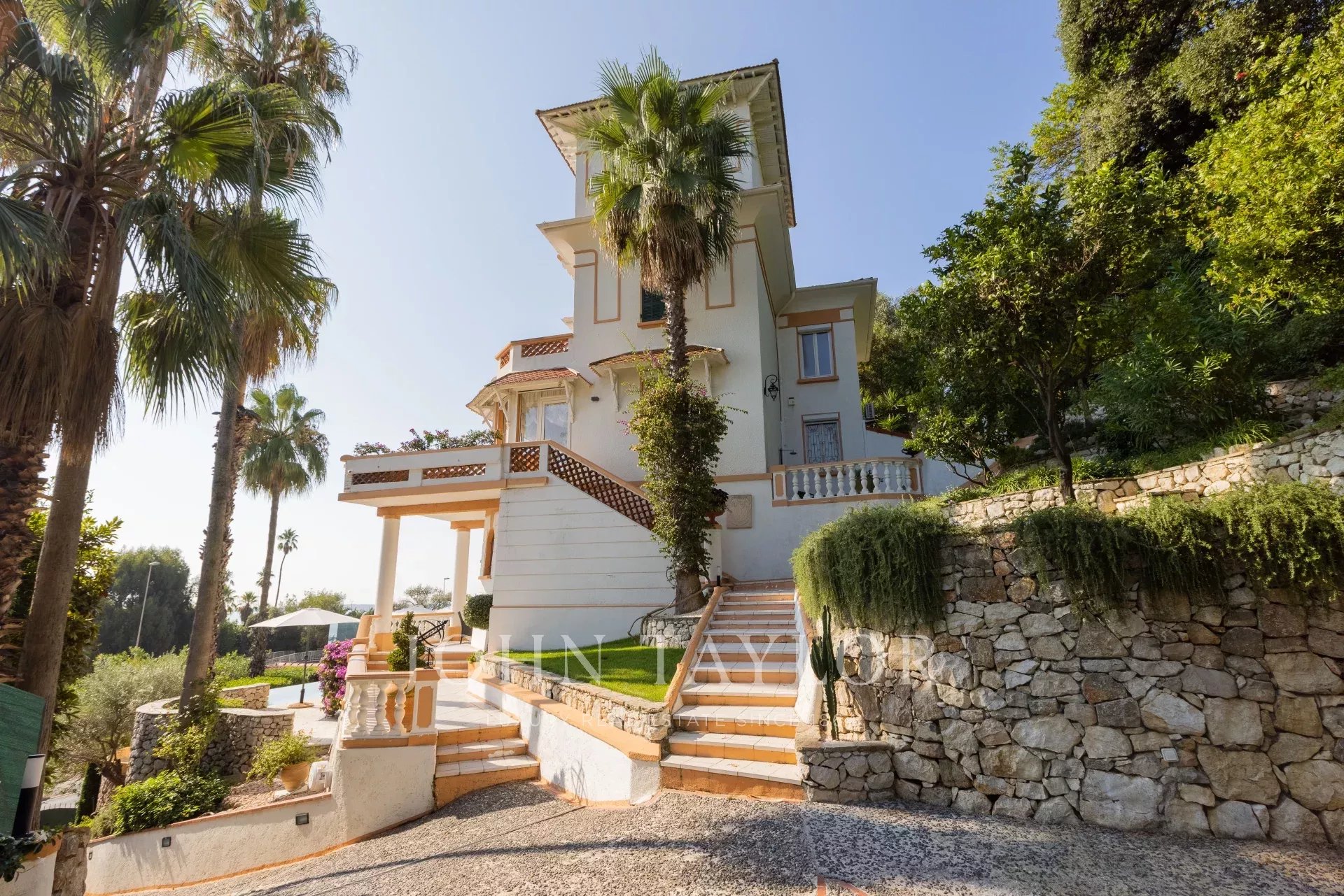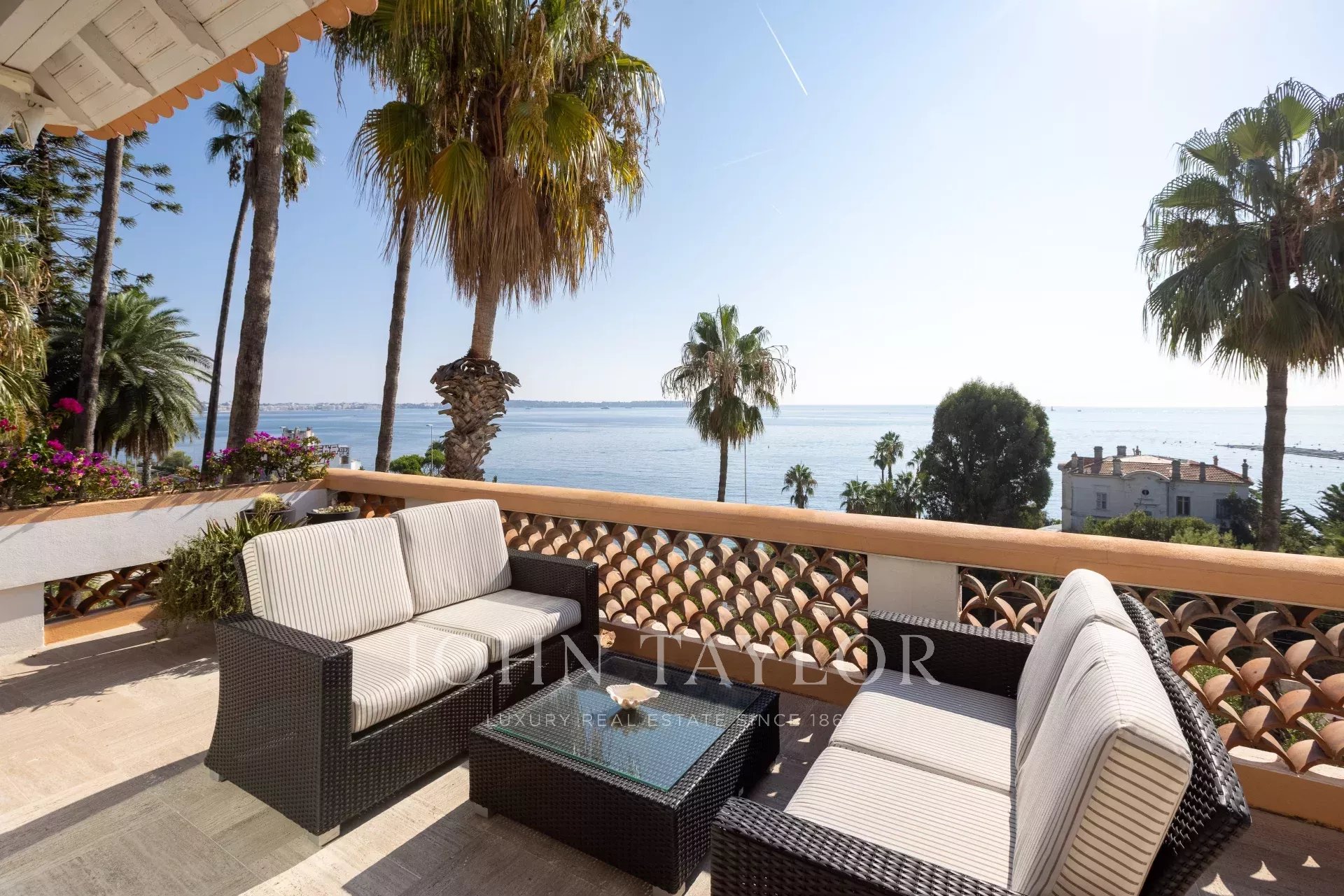 Vicino a Cannes e in posizione ideale sul lungomare, villa Belle Epoque immersa in un terreno paesaggistico di circa 1.000 m². Splendida vista sul mare e su Cap d'Antibes.