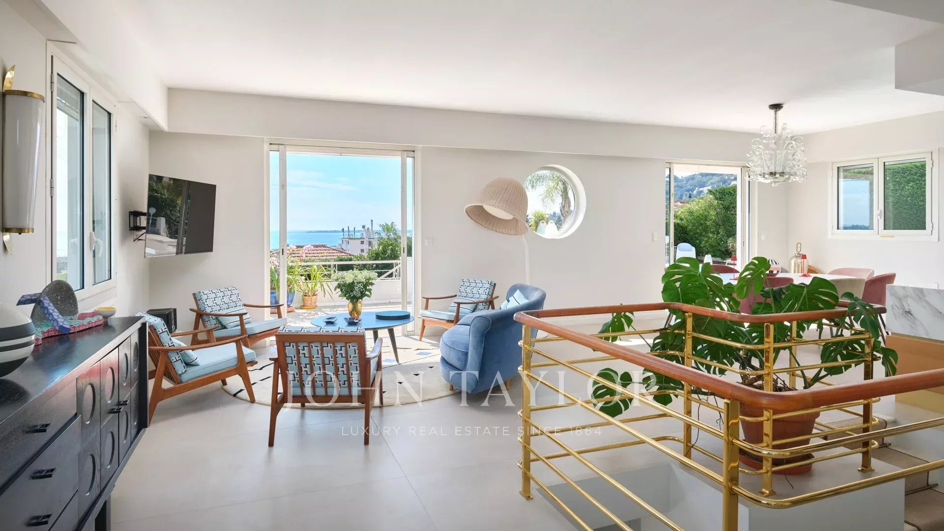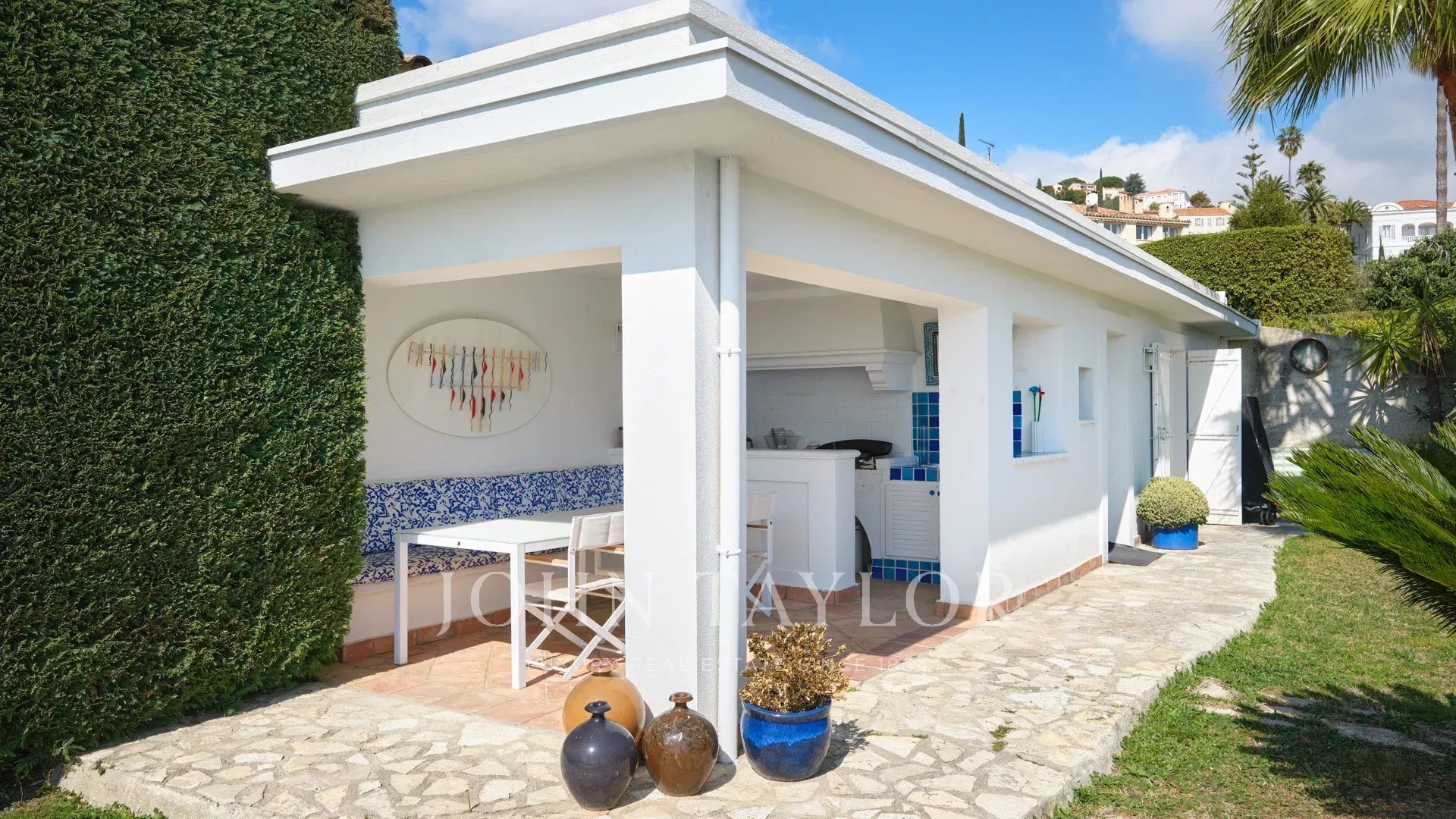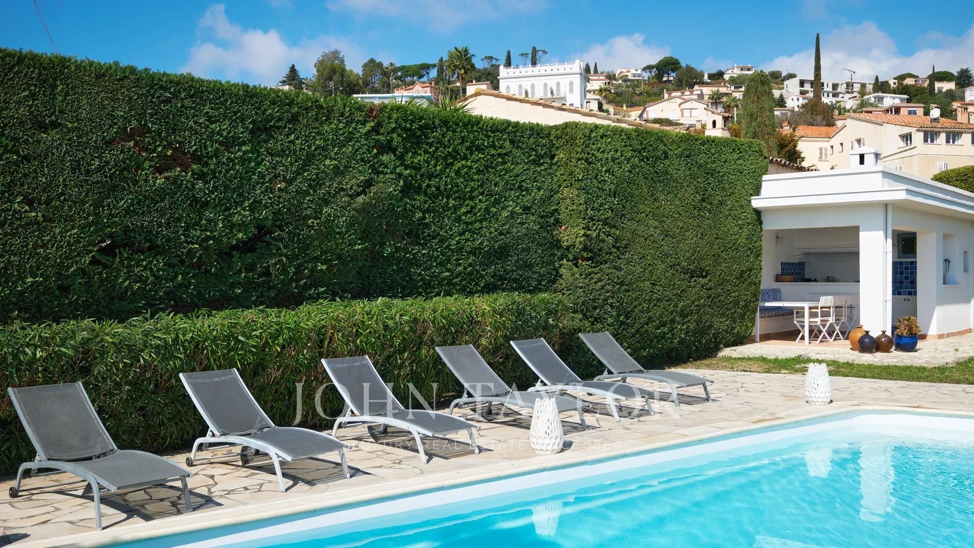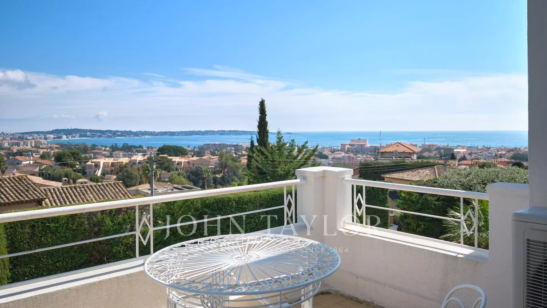 Sulle alture di Golfe-Juan e a 800 m dalle spiagge, nel cuore di un giardino di 1.000 m2, villa moderna con circa 180 m2 di superficie abitabile e una bella vista sul mare.