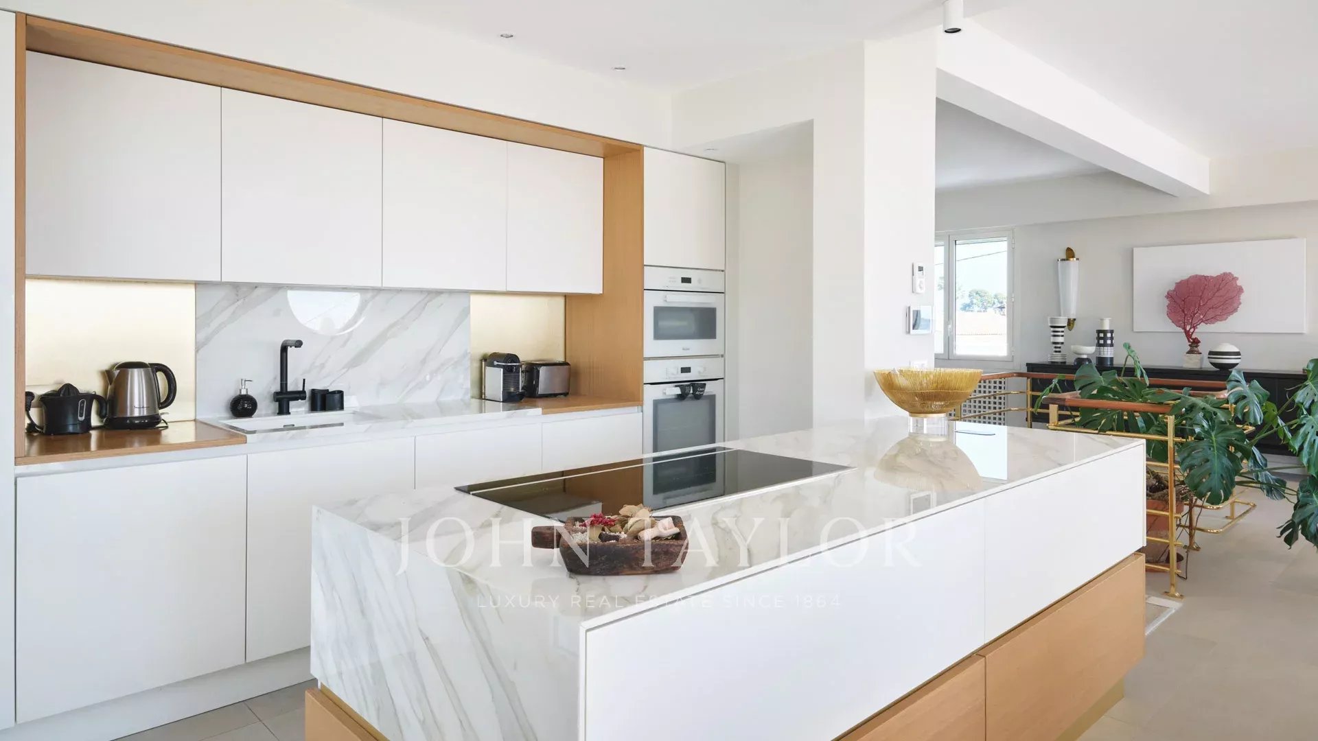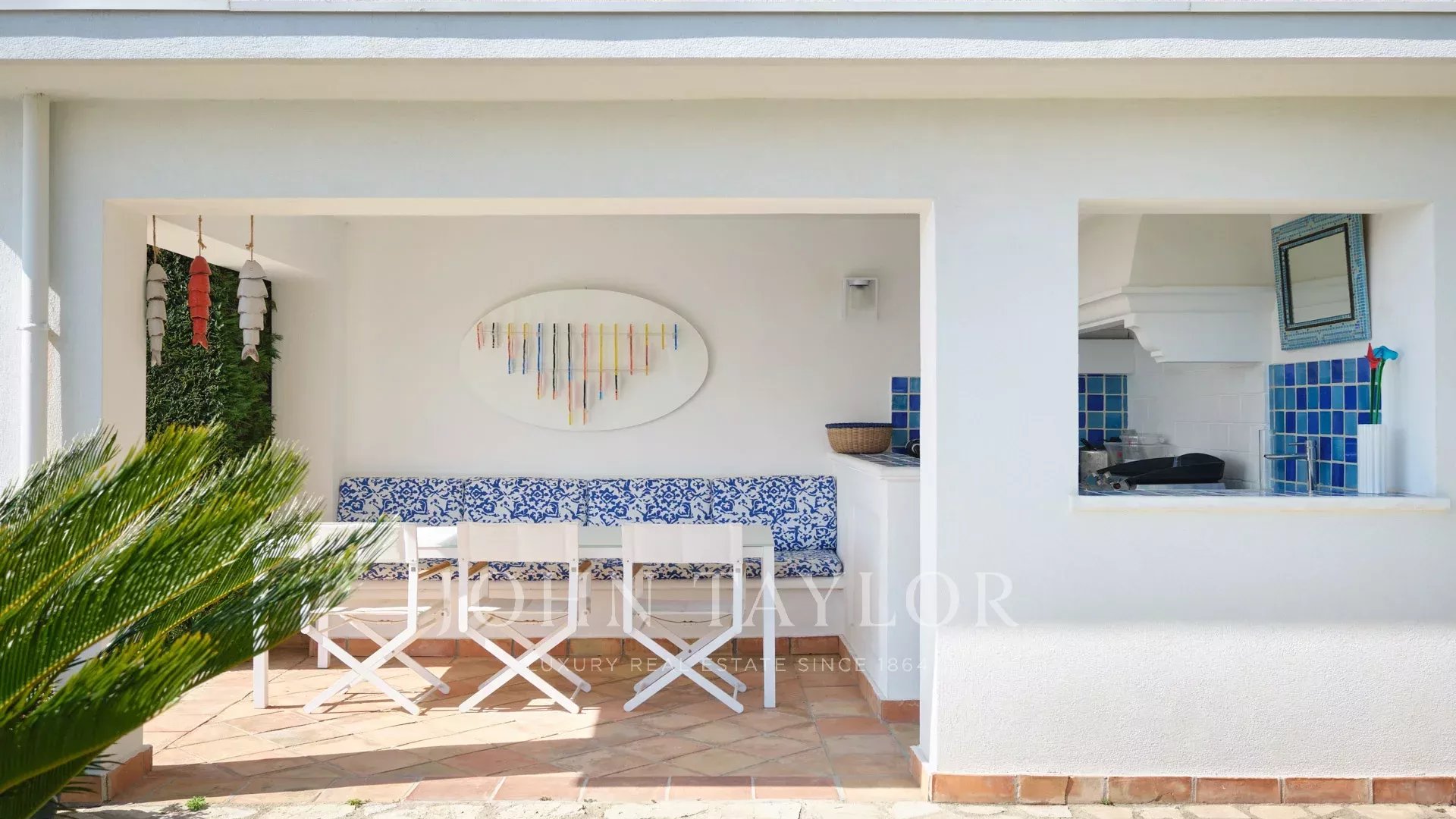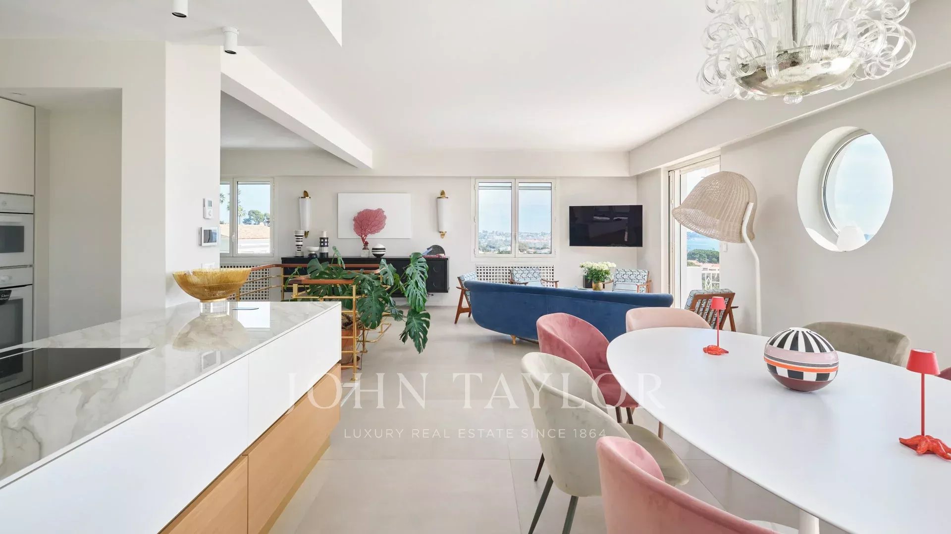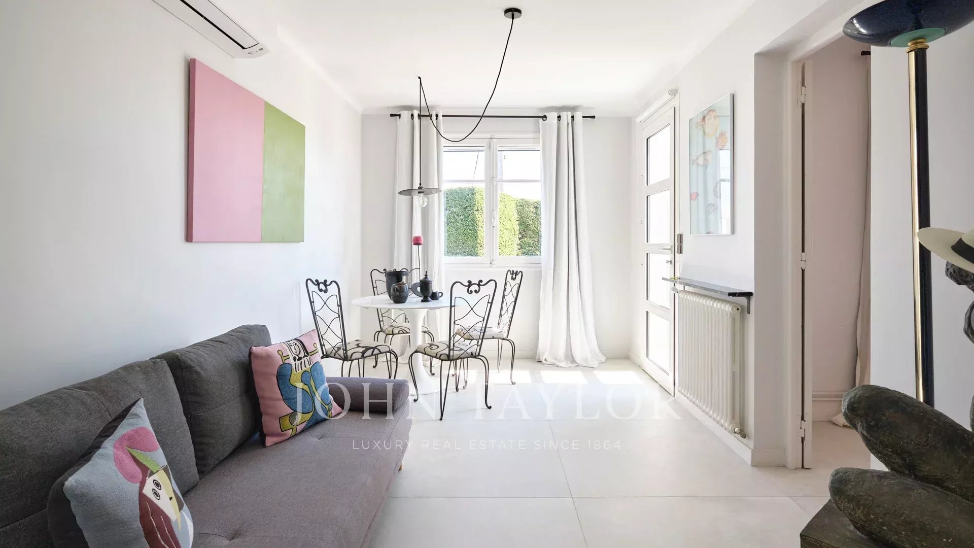 Sulle alture di Golfe-Juan e a 800 m dalle spiagge, nel cuore di un giardino di 1.000 m2, villa moderna con circa 180 m2 di superficie abitabile e una bella vista sul mare.