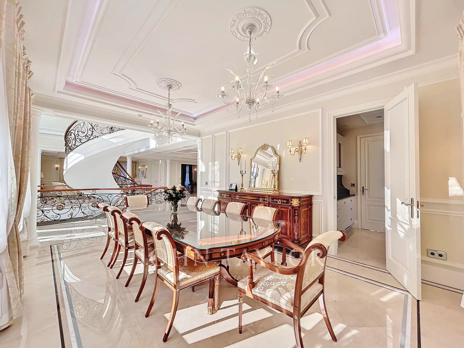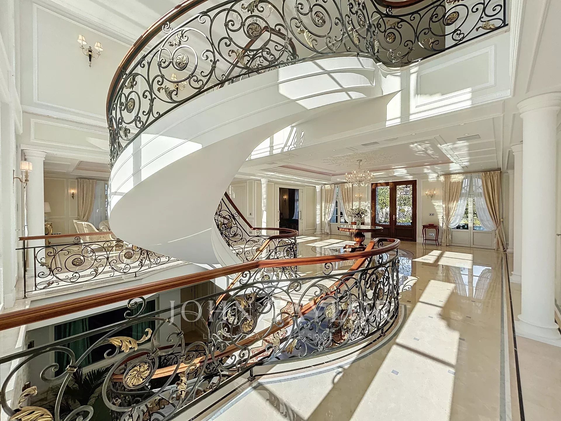 Una maestosa scala centrale conduce al piano superiore: