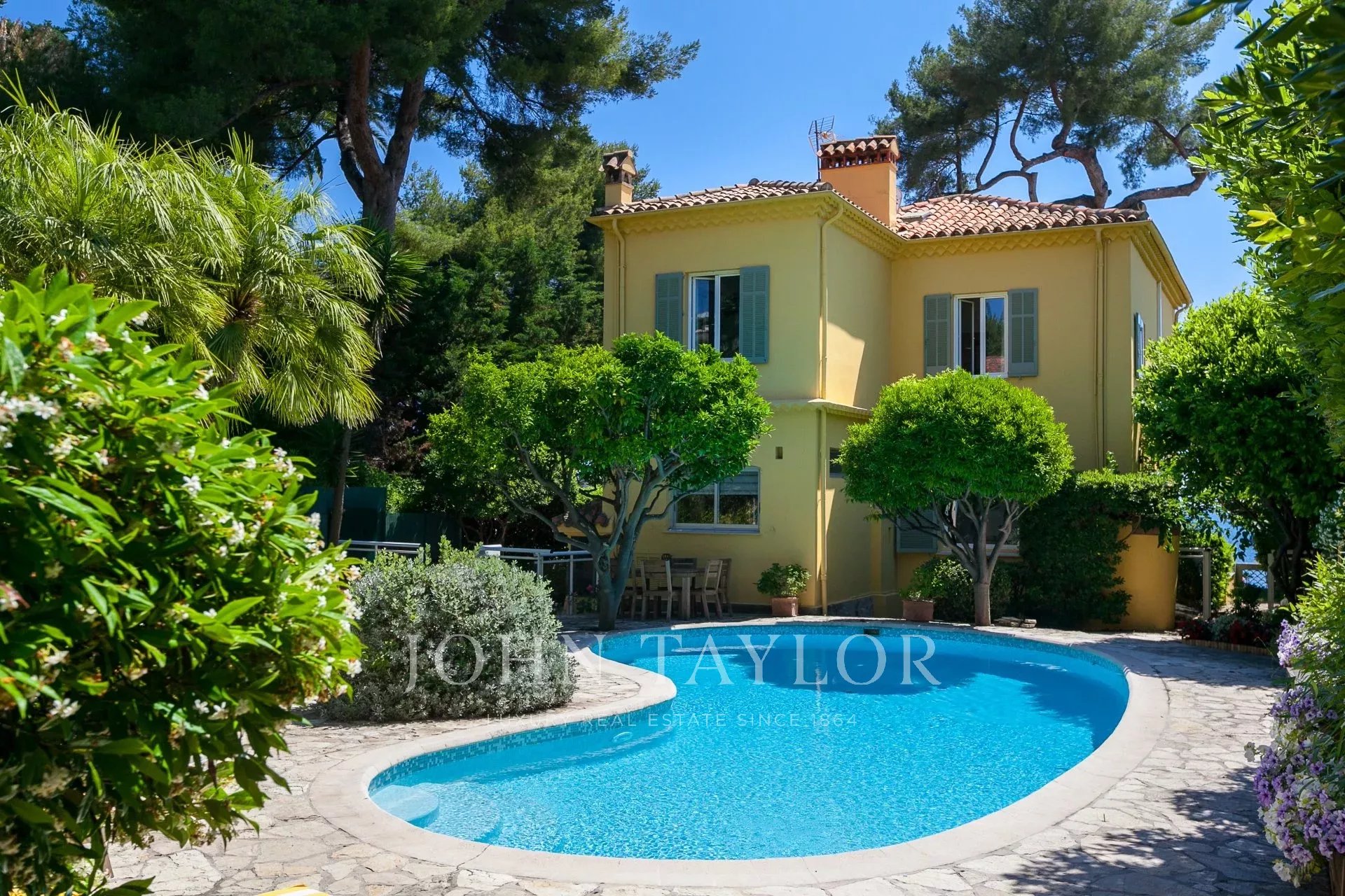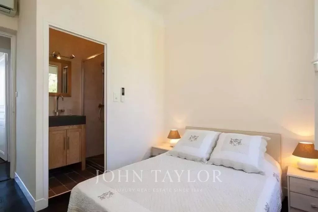 Confortevole casa in stile provenzale su due livelli, situata non lontano da Juan-Les-Pins, di fronte a Port Gallice e alle sue spiagge. Superba vista sul mare.