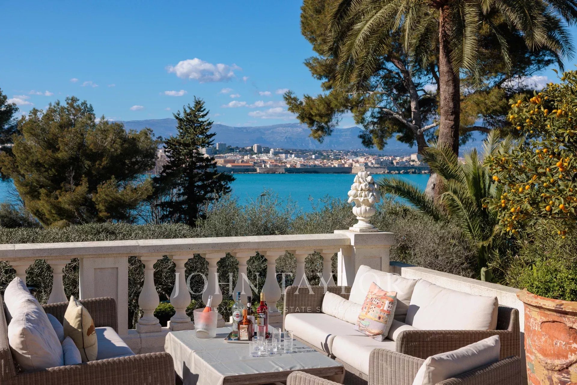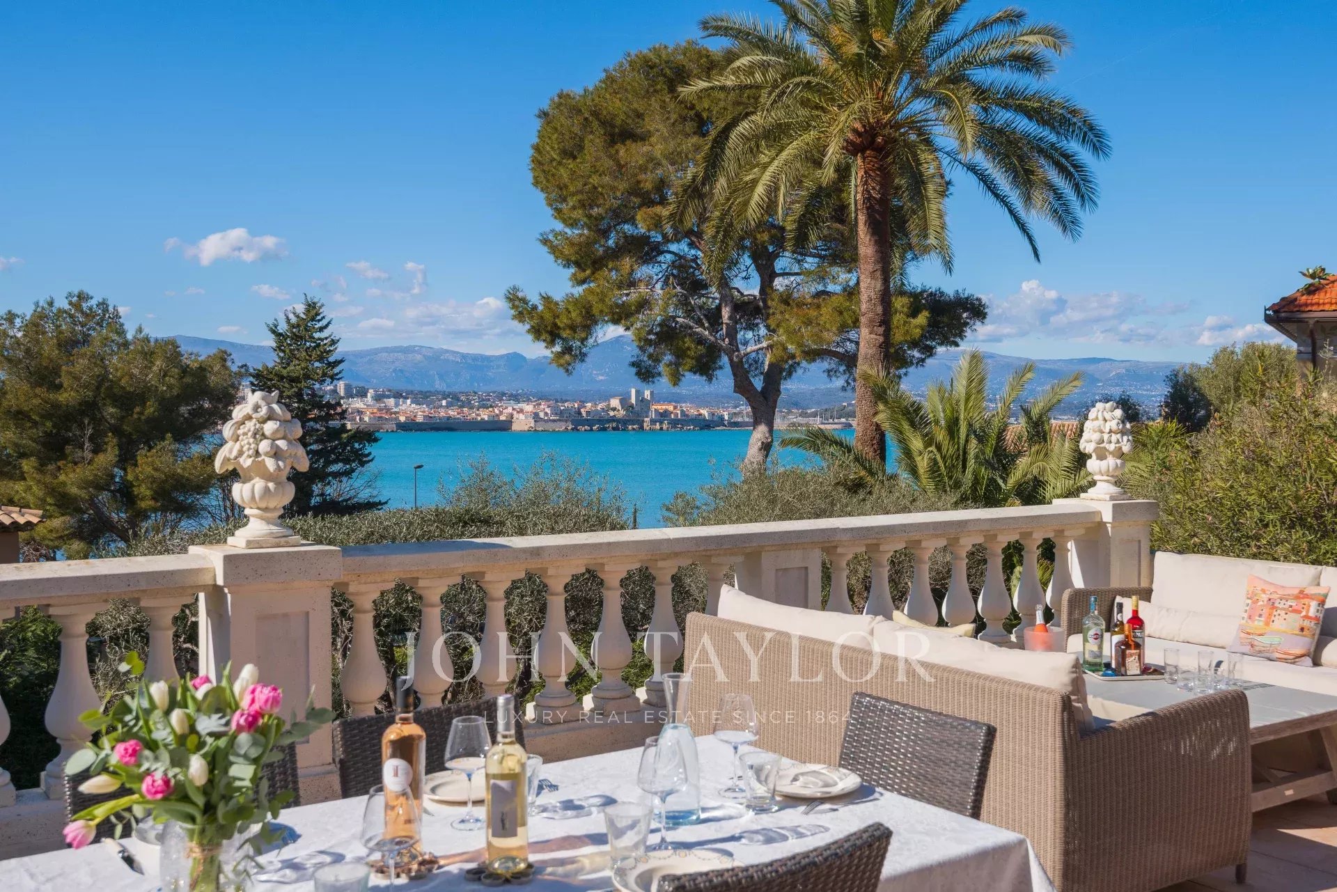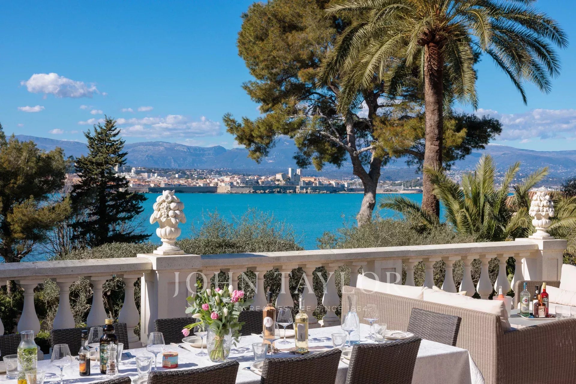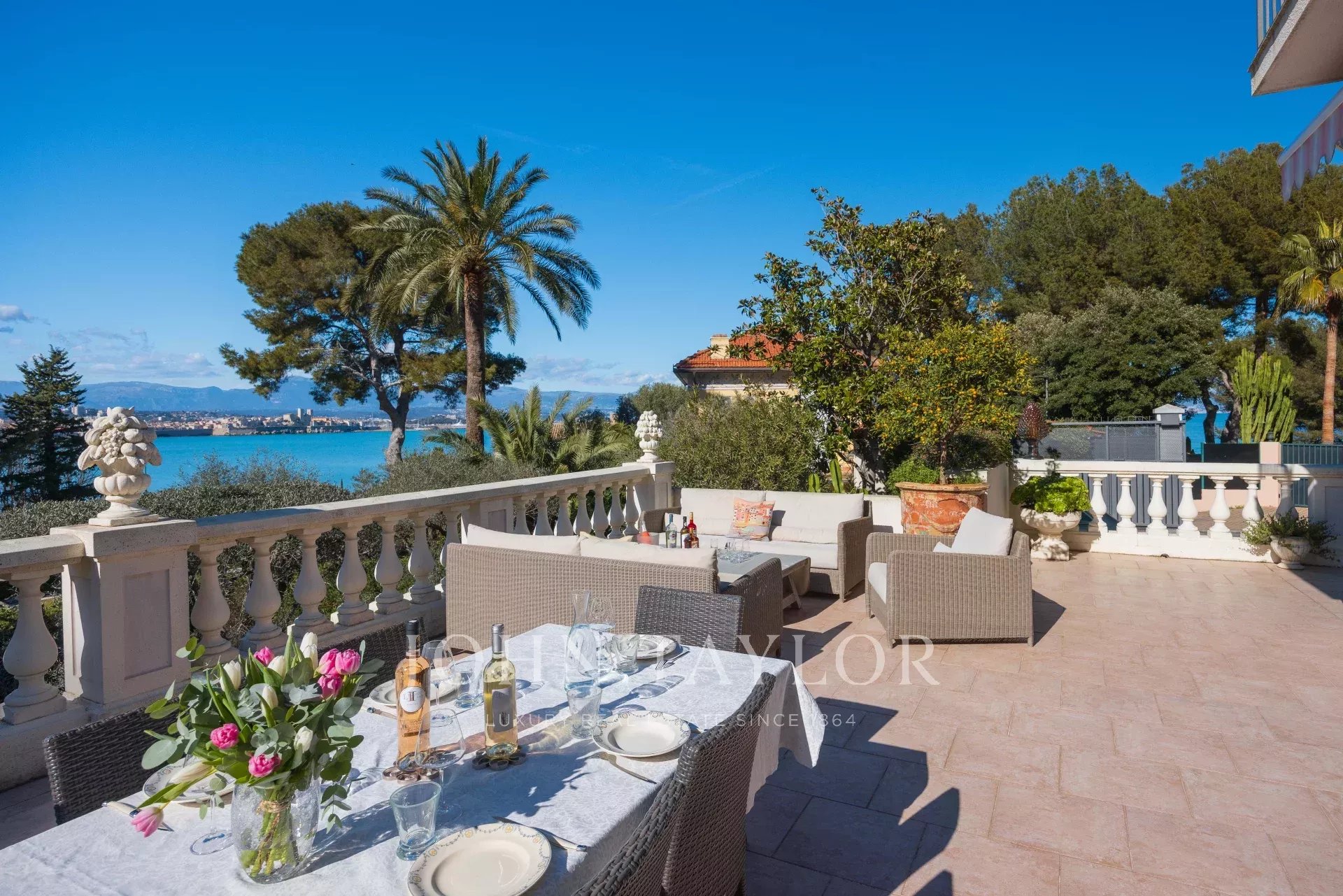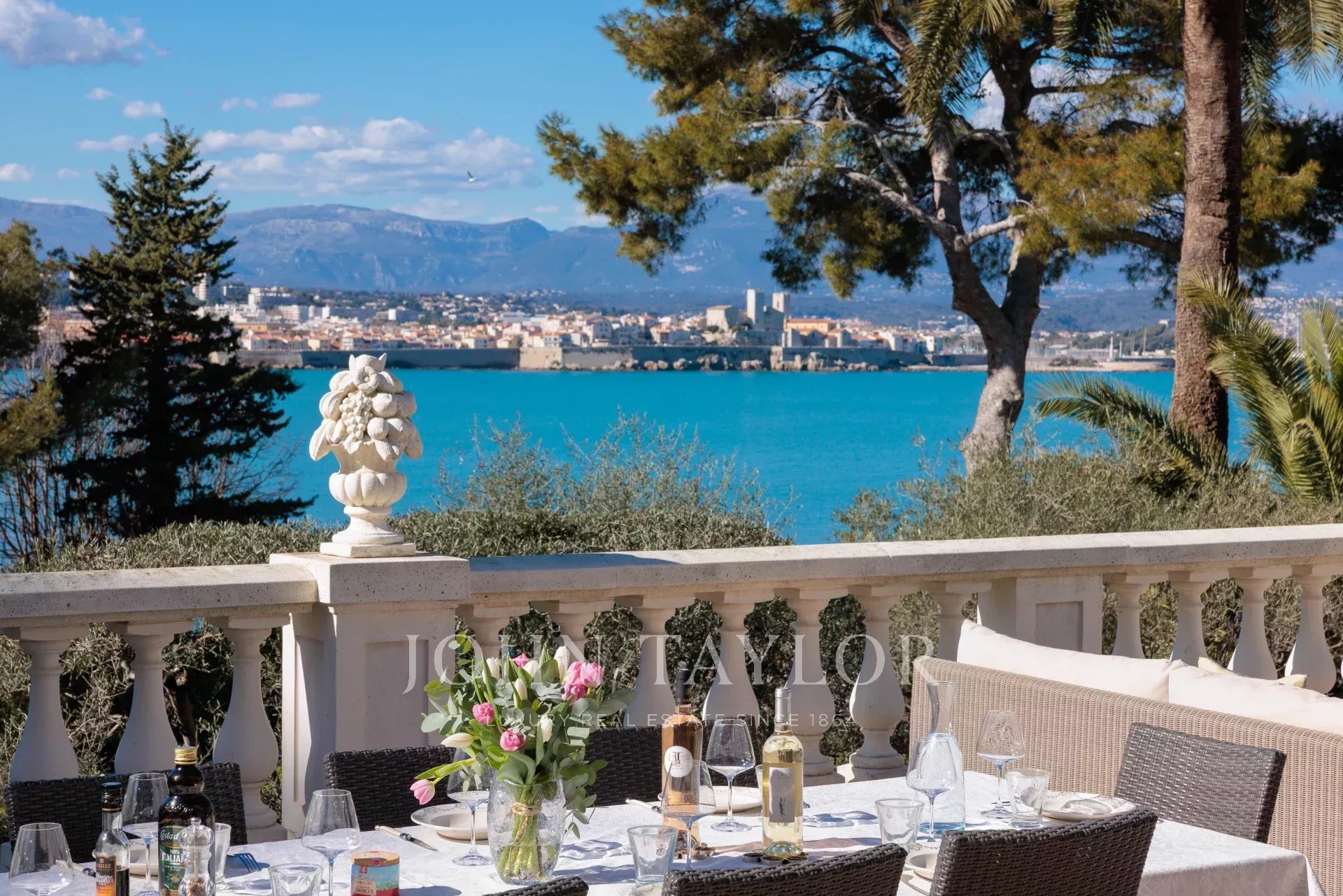 Immersa nel cuore di un giardino caratterizzato da specie della Costa Azzurra come agrumi, ulivi, fichi, mirto e gelsomino, oltre a cactus e grandi euforbie, la villa gode di una superba vista sulla Vecchia Antibes e sulla Baie des Anges, sovrastata dalle Alpi.