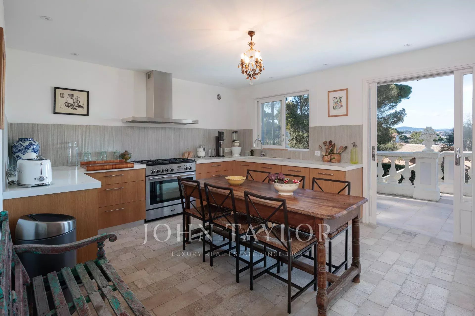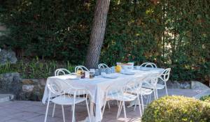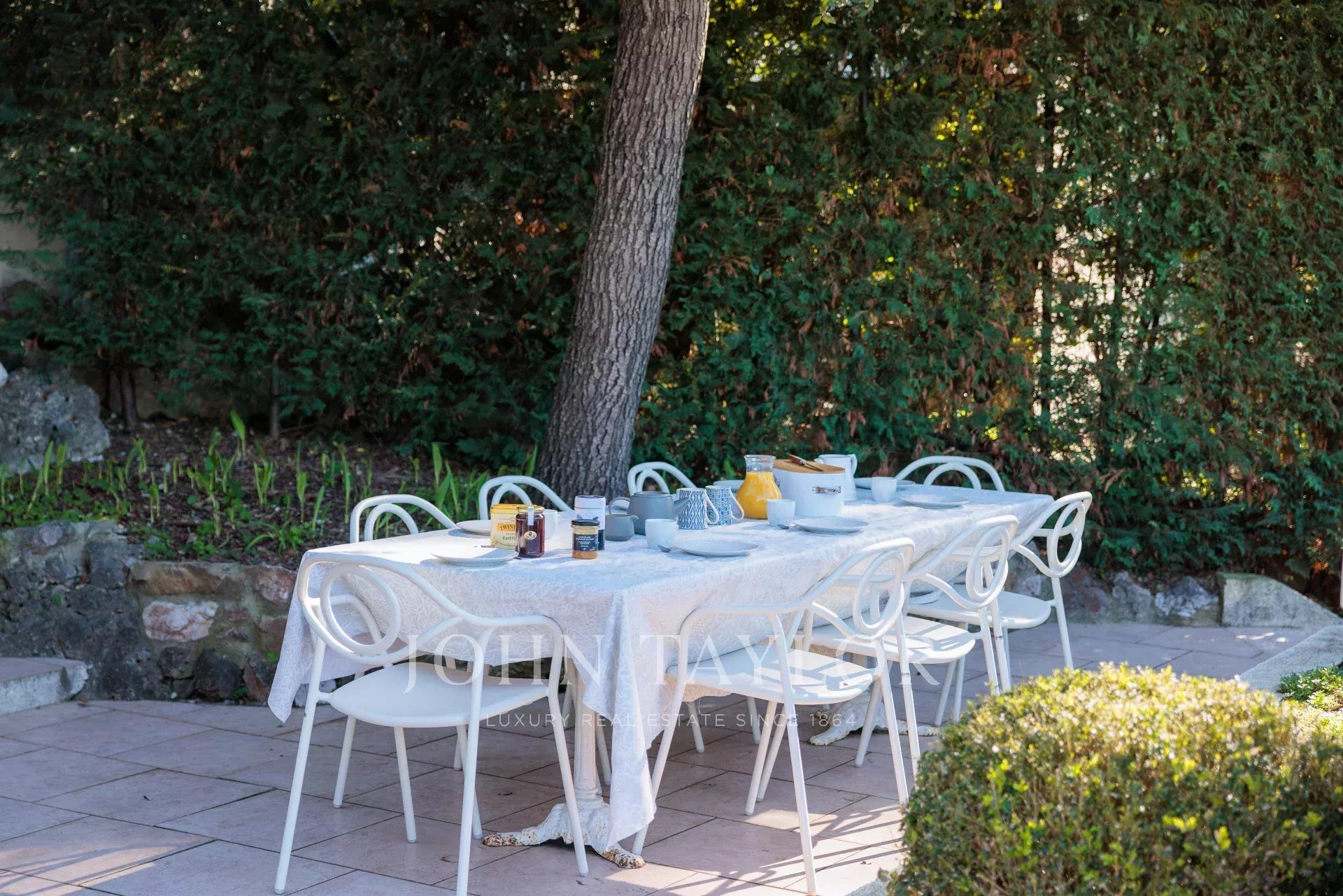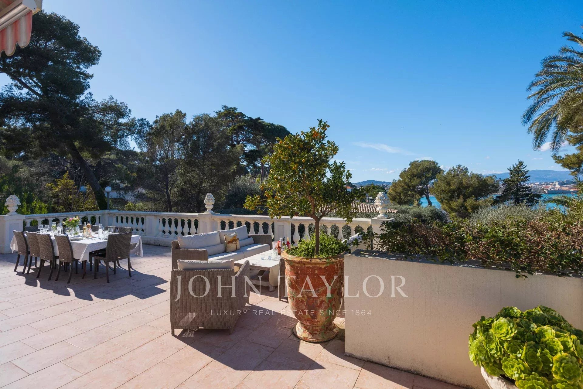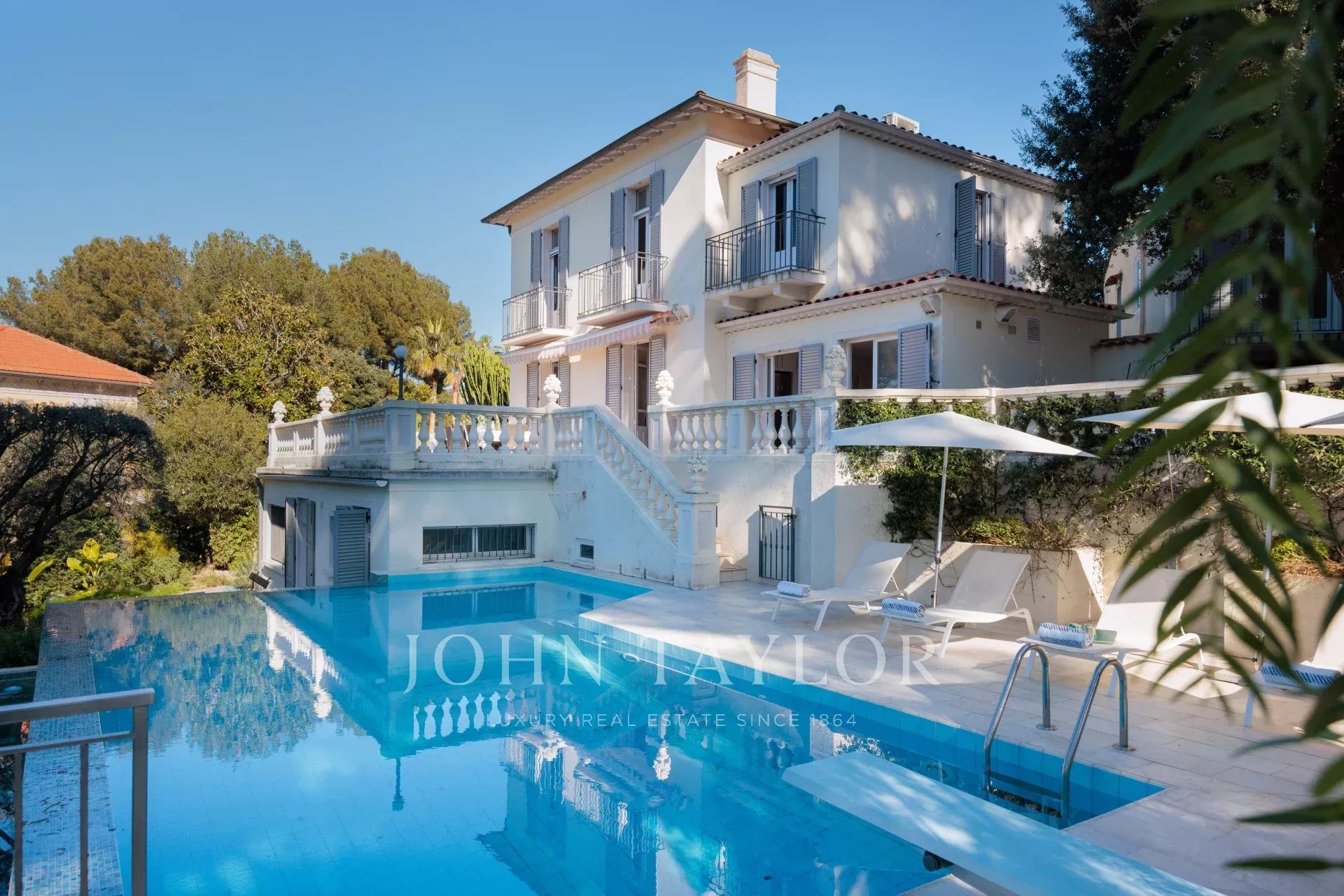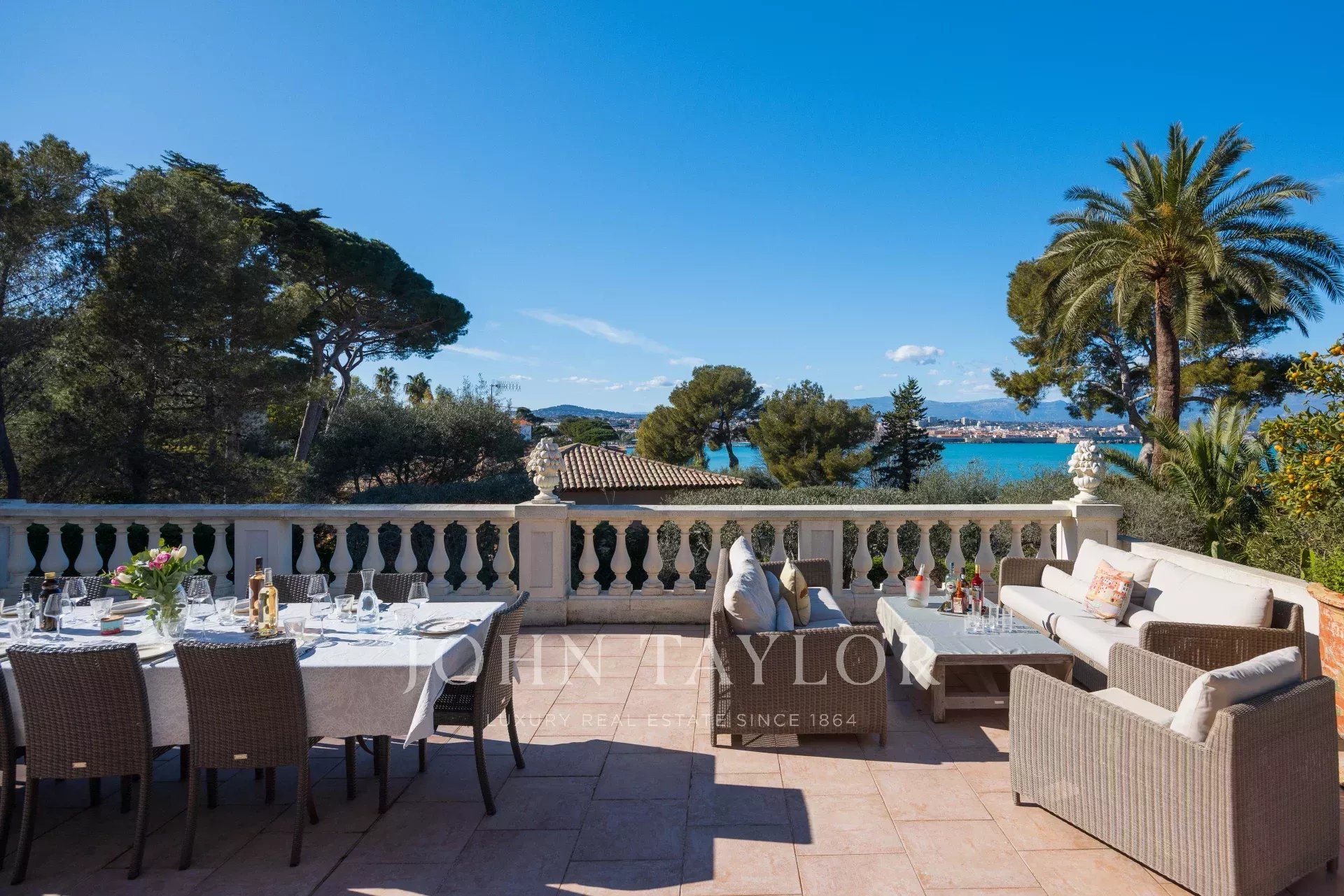 Immersa nel cuore di un giardino caratterizzato da specie della Costa Azzurra come agrumi, ulivi, fichi, mirto e gelsomino, oltre a cactus e grandi euforbie, la villa gode di una superba vista sulla Vecchia Antibes e sulla Baie des Anges, sovrastata dalle Alpi.